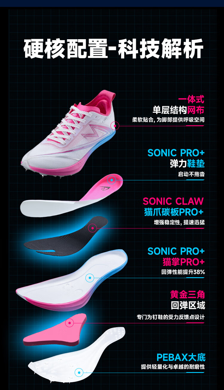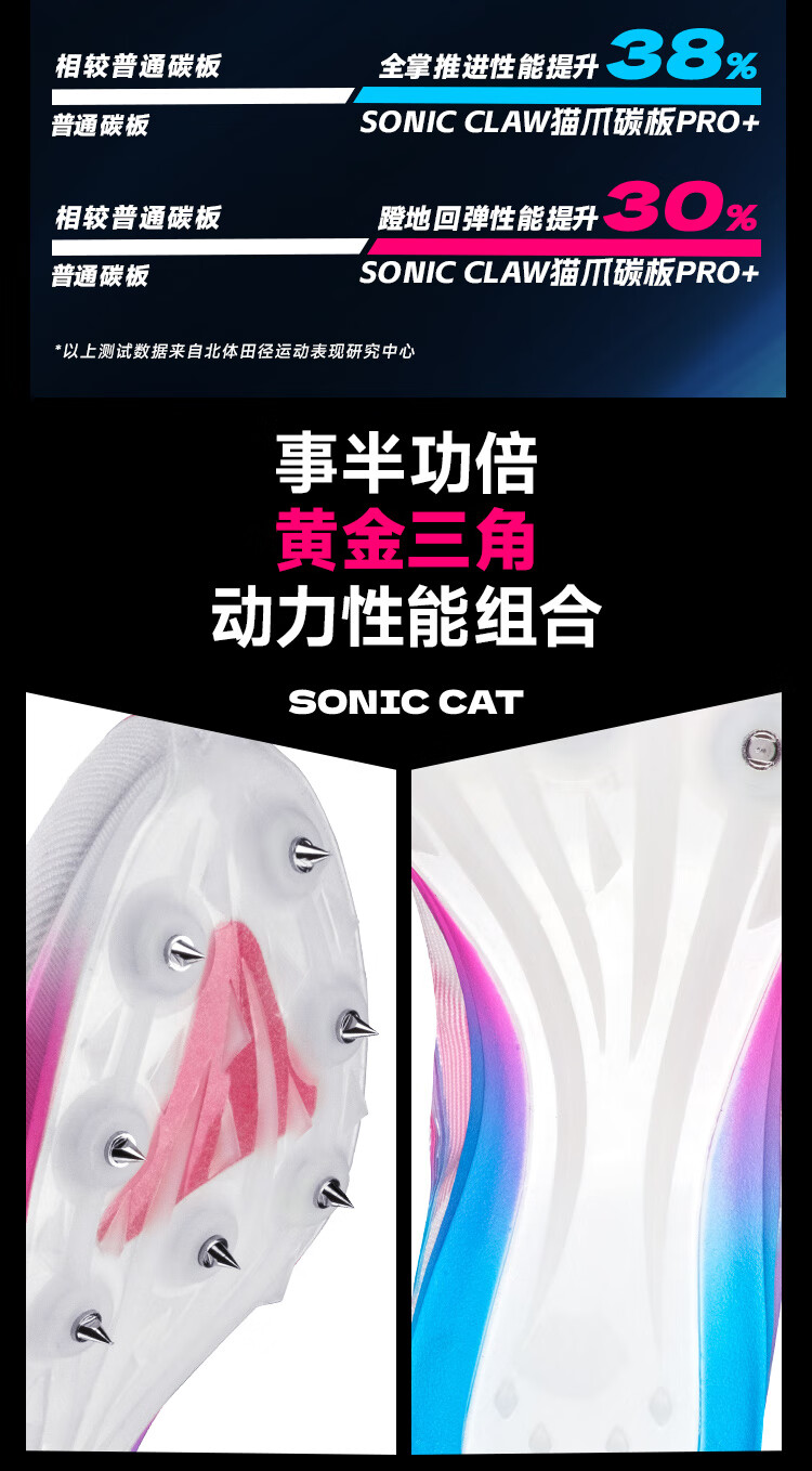 音速猫 x 北京体育大学丨逆天钉鞋田径中短跑鞋全掌碳板学生体考体测鞋 回到过去【尺码偏小拍大一码】 34