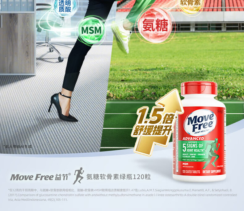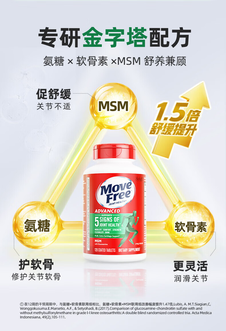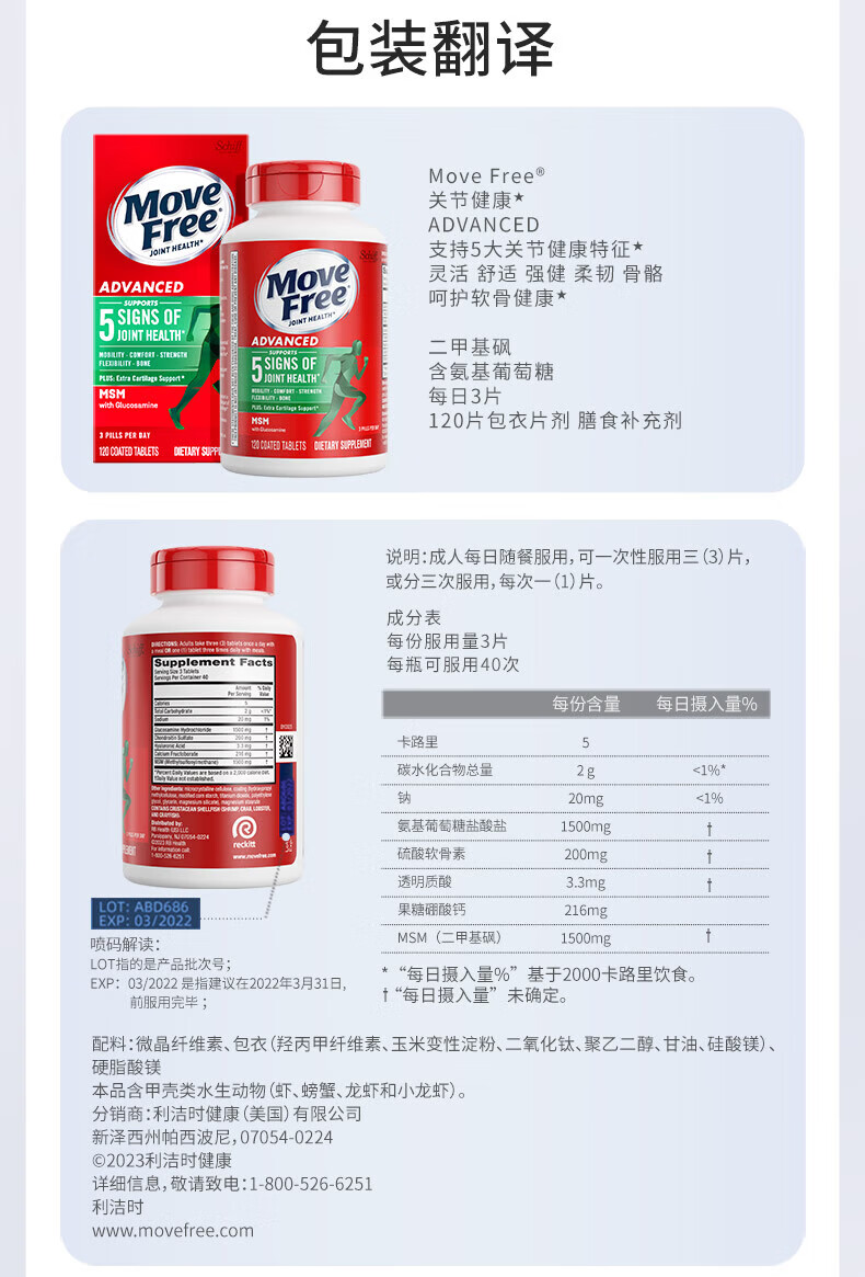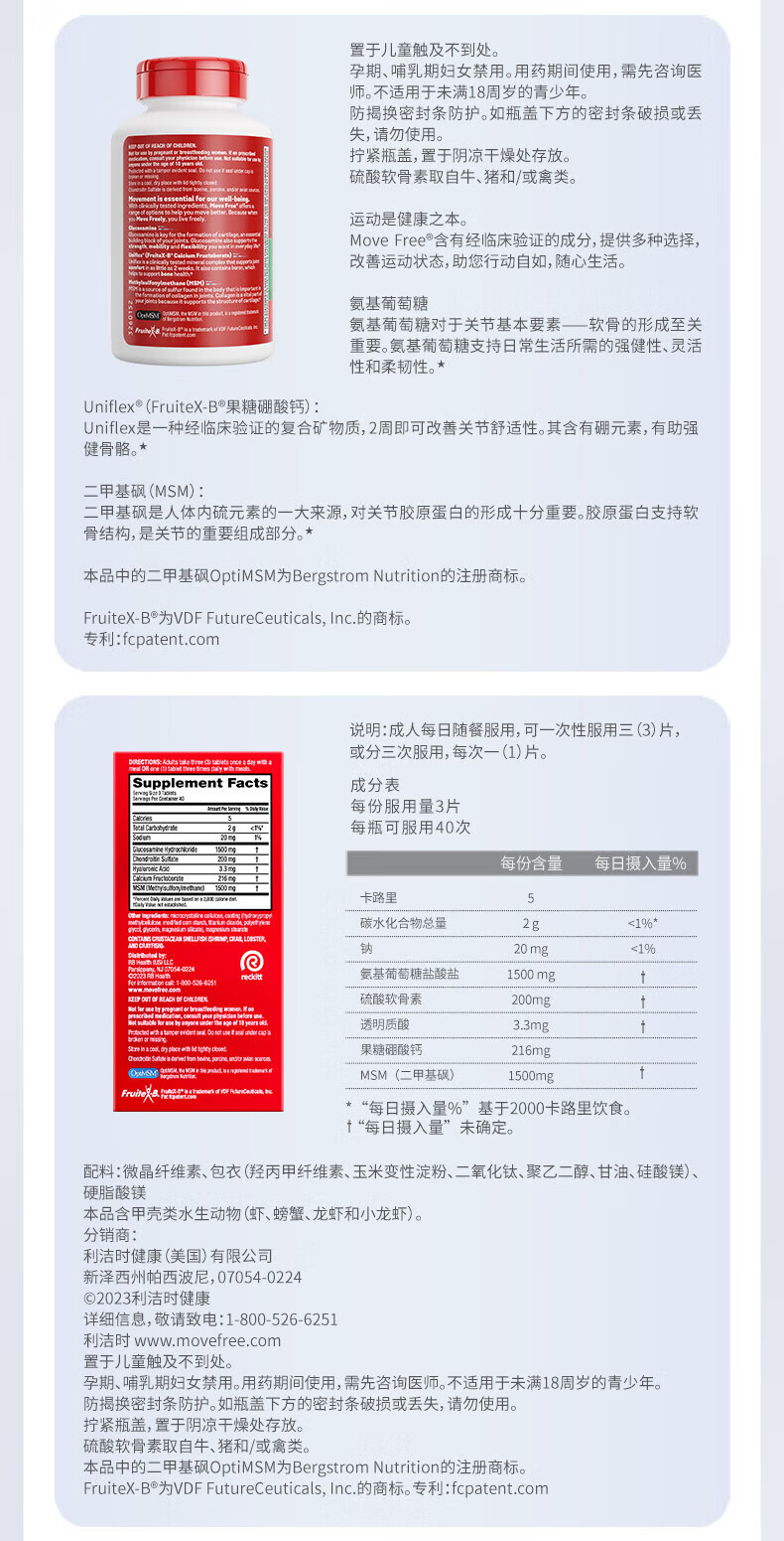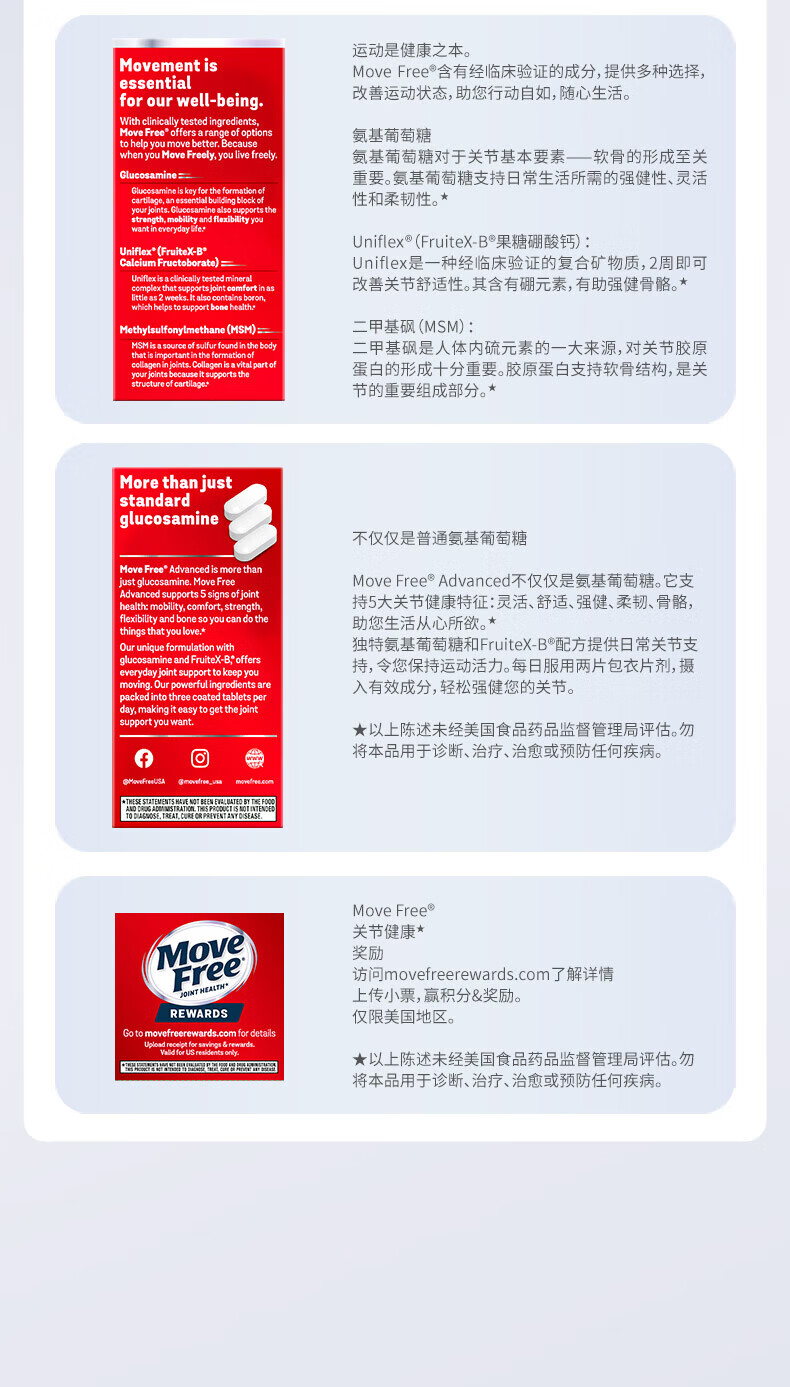 益节健康Move Free进口氨糖维骨力中老年人骨质疏松腰腿疼护关节 【红瓶】日常关节养护 呵护润滑软骨 120粒*1瓶