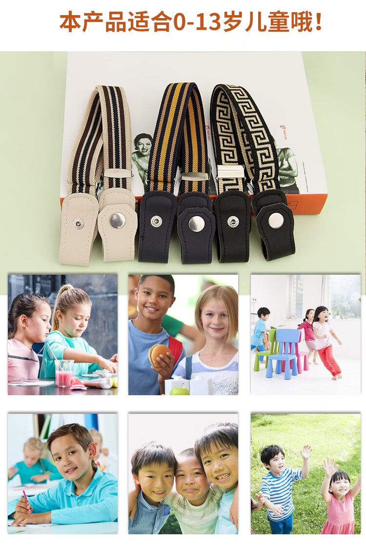 缇彩娜0-13岁儿童腰带男童收紧懒人女童裤带宝宝幼儿小孩弹力皮带小学生 黑色00