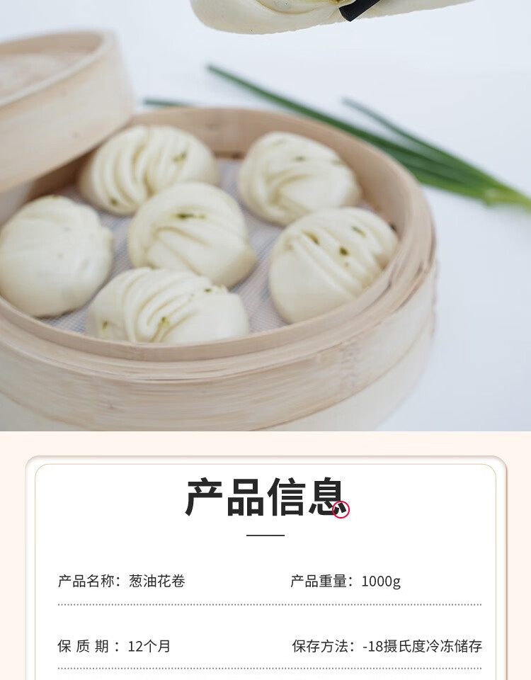 朱老三手工加热即食儿童营养速食早餐1000g速冻面食半成品葱香花卷馒头 葱油花卷 1000g*2袋装
