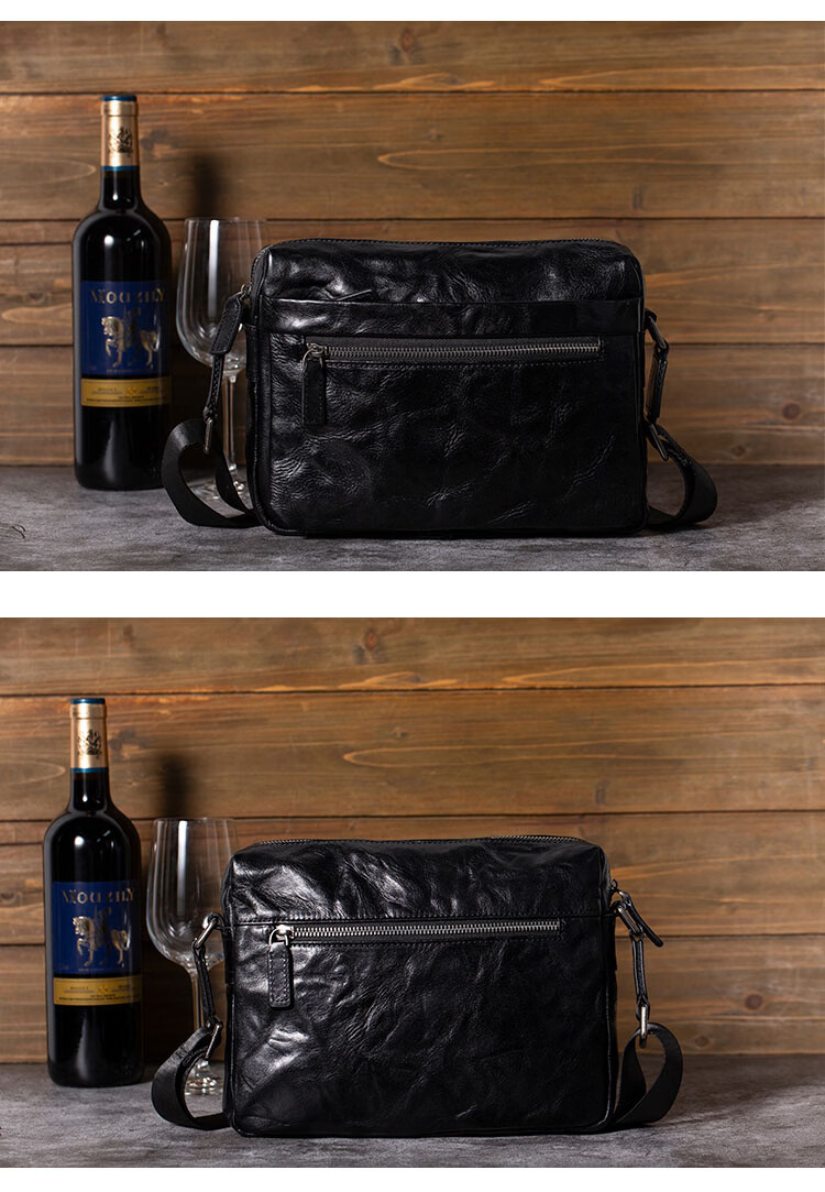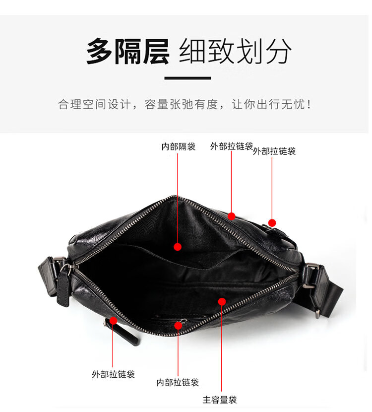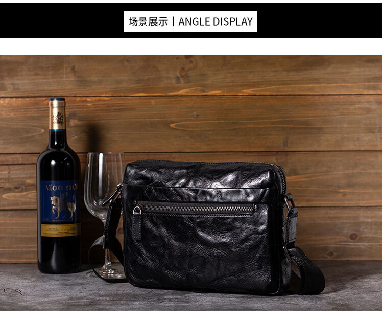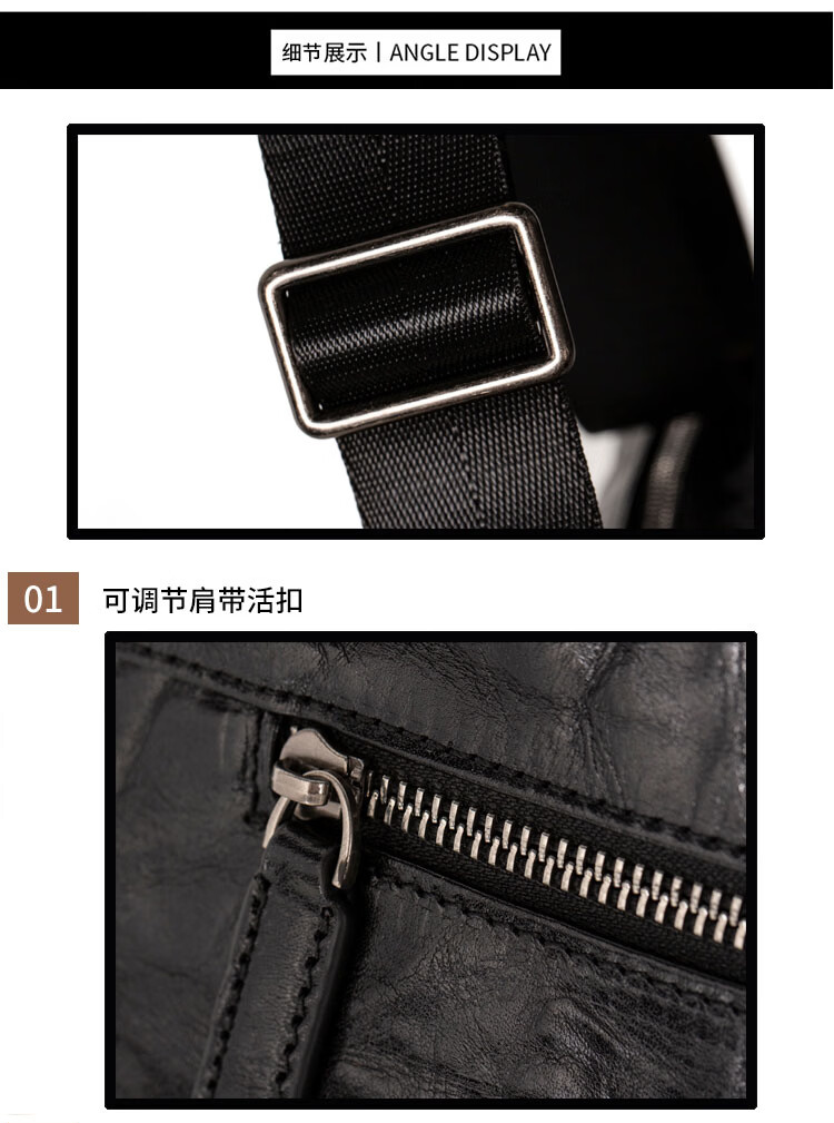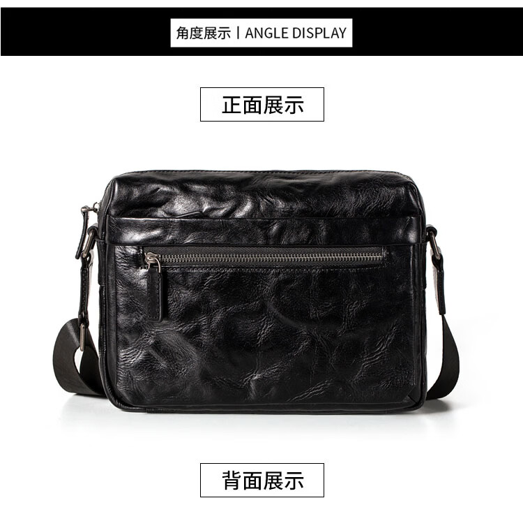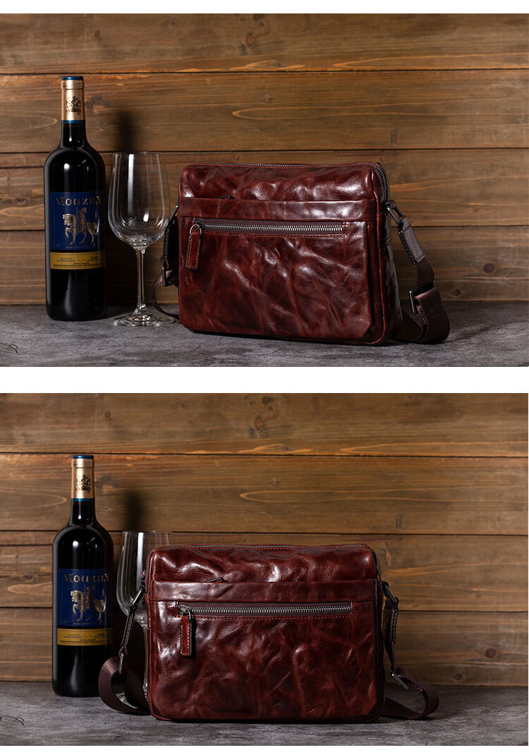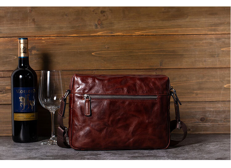 巴利迪亚男士真皮单肩包新款植鞣头层牛皮斜挎包横款高端时尚大容量男包 咖啡色
