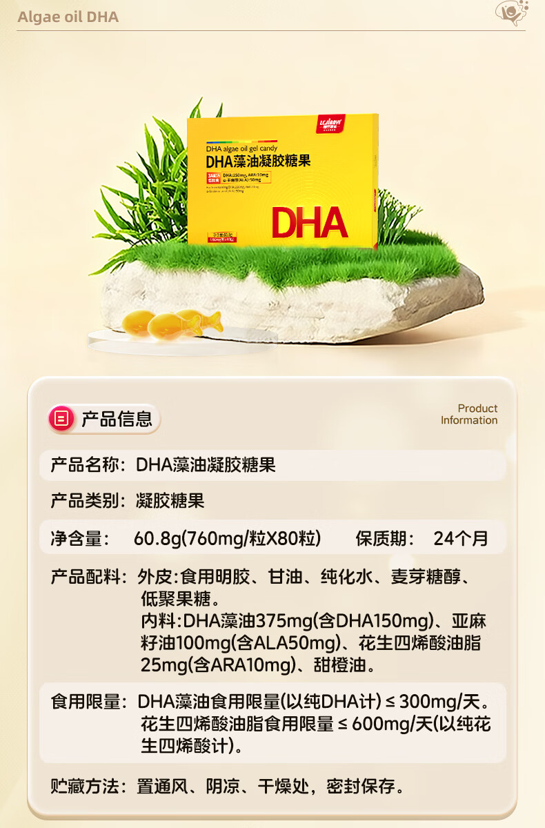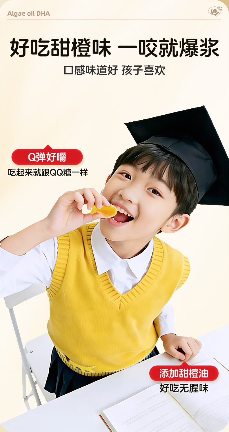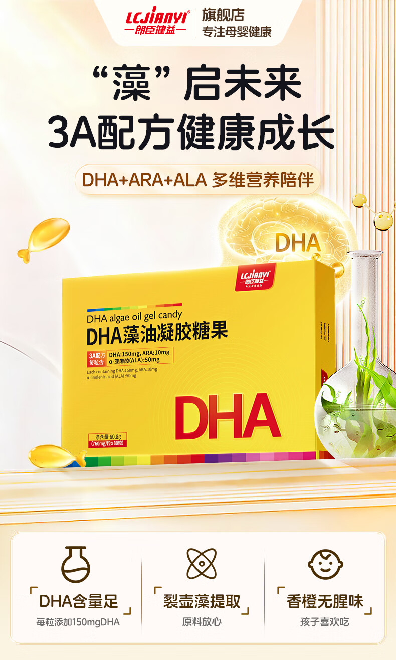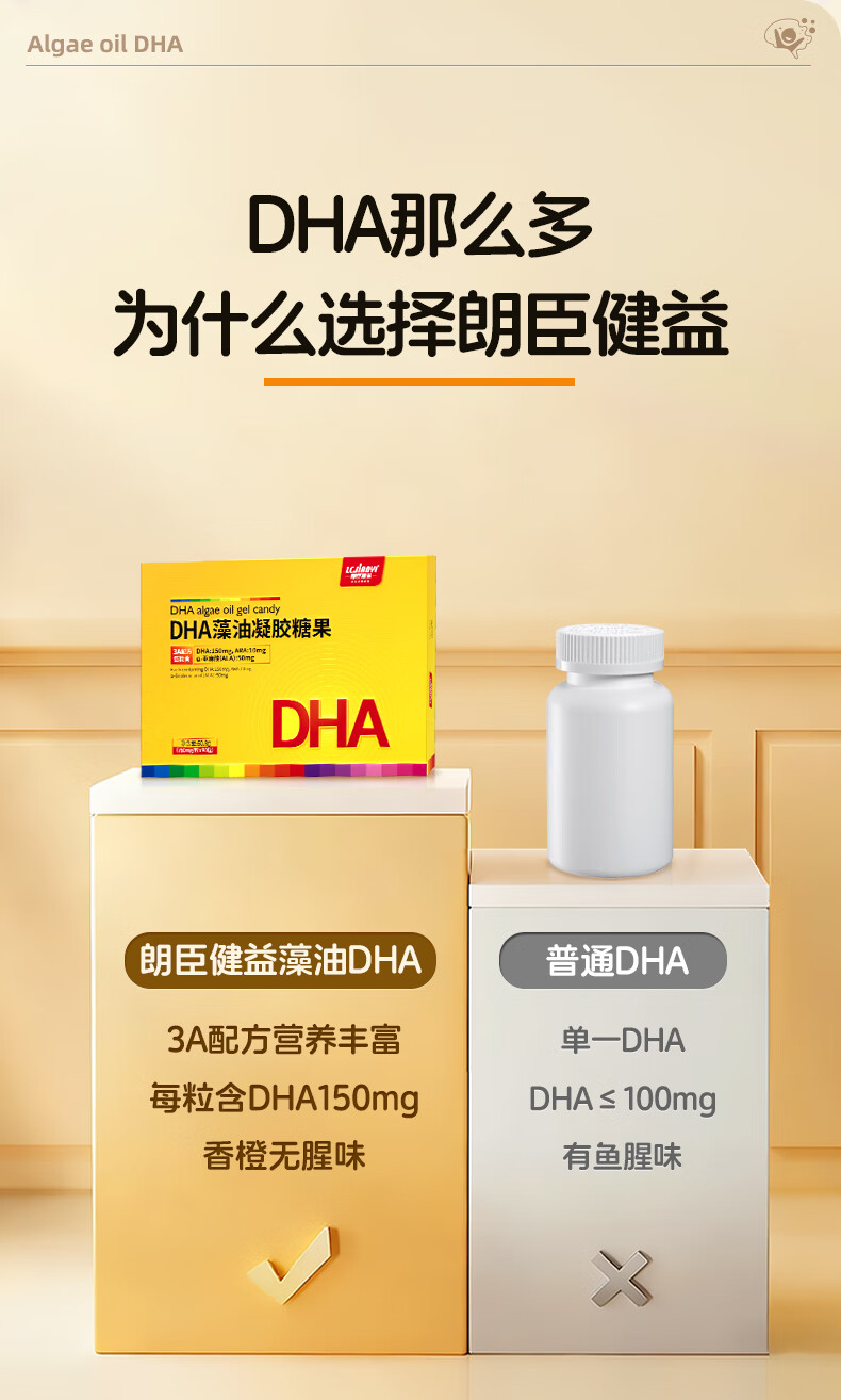 朗臣健益藻油DHA150mg凝胶糖果dha海藻油软胶囊学生非鱼肝油