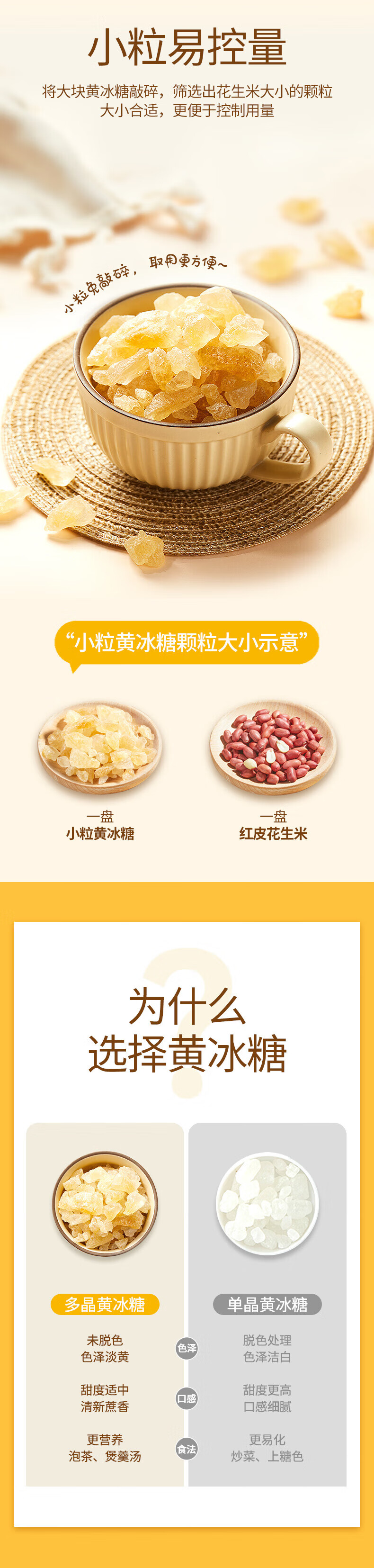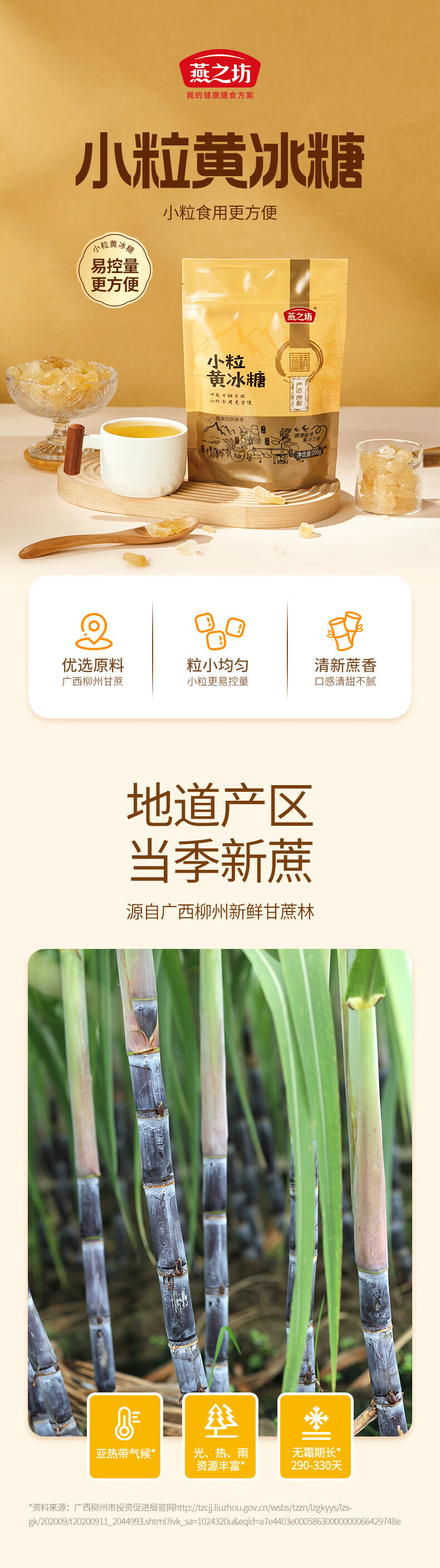 燕之坊小粒黄冰糖200g 煮粥煲汤甜品食材袋装广西甘蔗多晶冲饮调味冰糖 小粒黄冰糖200g*3袋