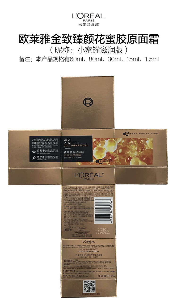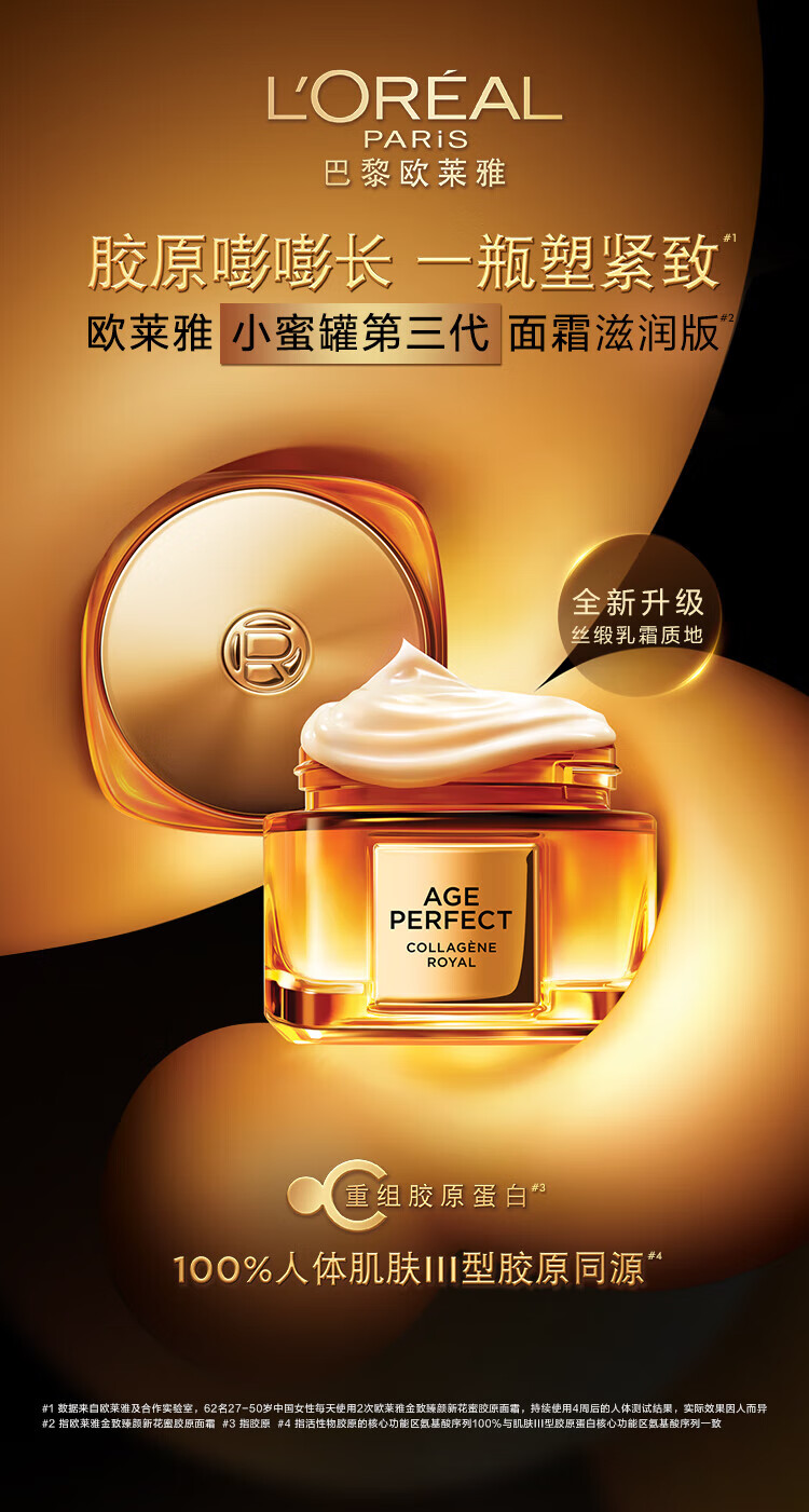 欧莱雅(LOREAL)金致臻颜花蜜胶原面霜60ml滋润版 小蜜罐面霜 修护滋润补水护肤