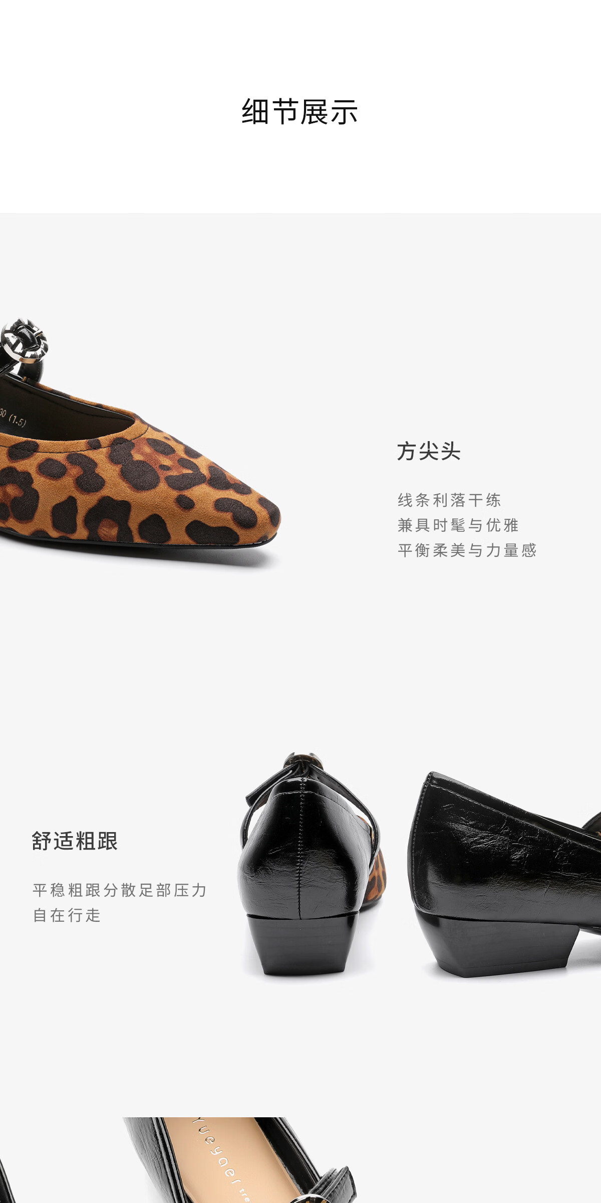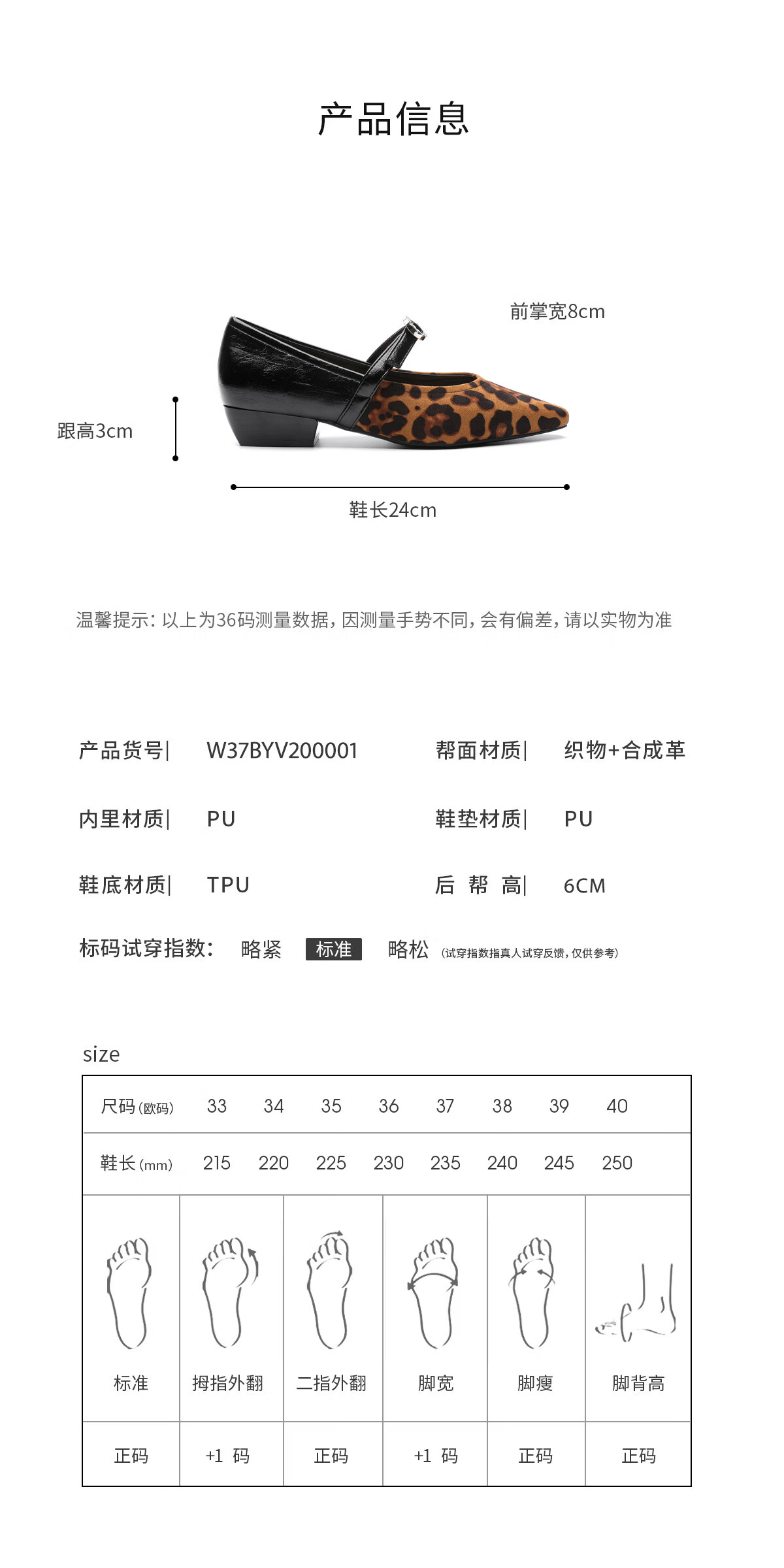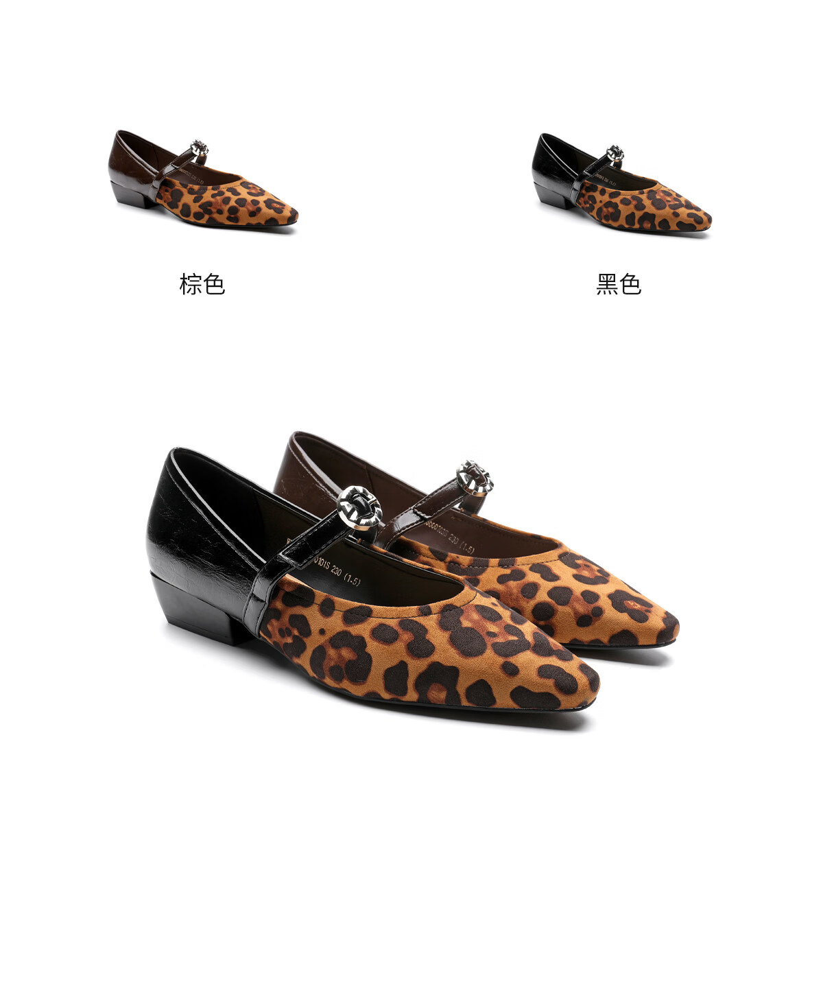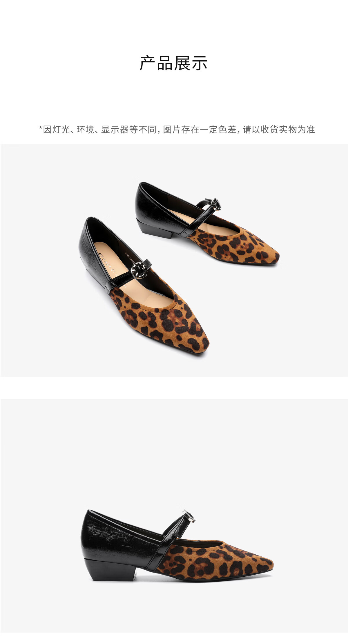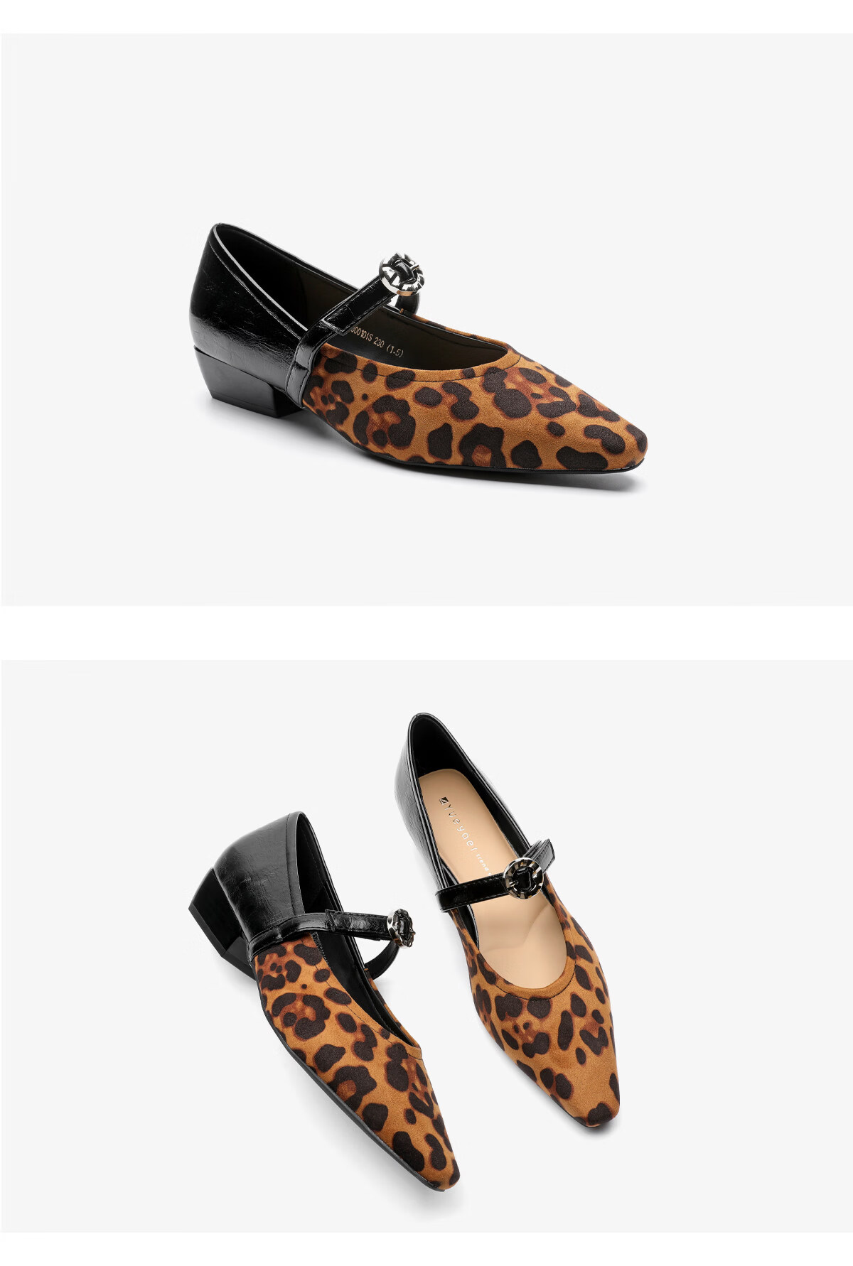 月芽儿法式豹纹拼接玛丽珍鞋女2025年冬季季新款方头浅口百搭单鞋 黑色01S 34