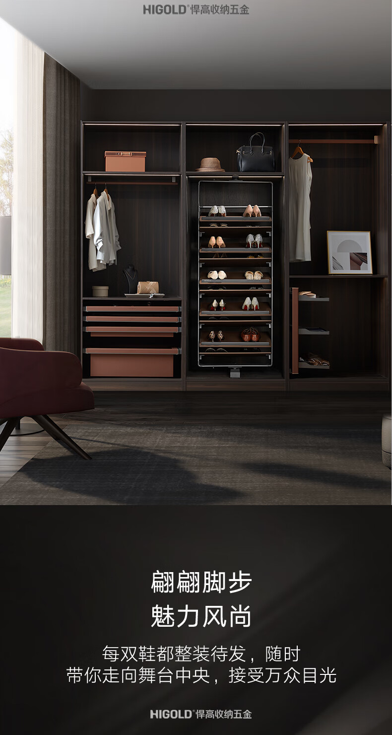 悍高(HIGOLD)家用旋转鞋架高度可调多功能多层鞋架子入户门旋转折叠鞋柜 A系列【高级灰+深咖色】12层铝合金豪华|阻尼导轨