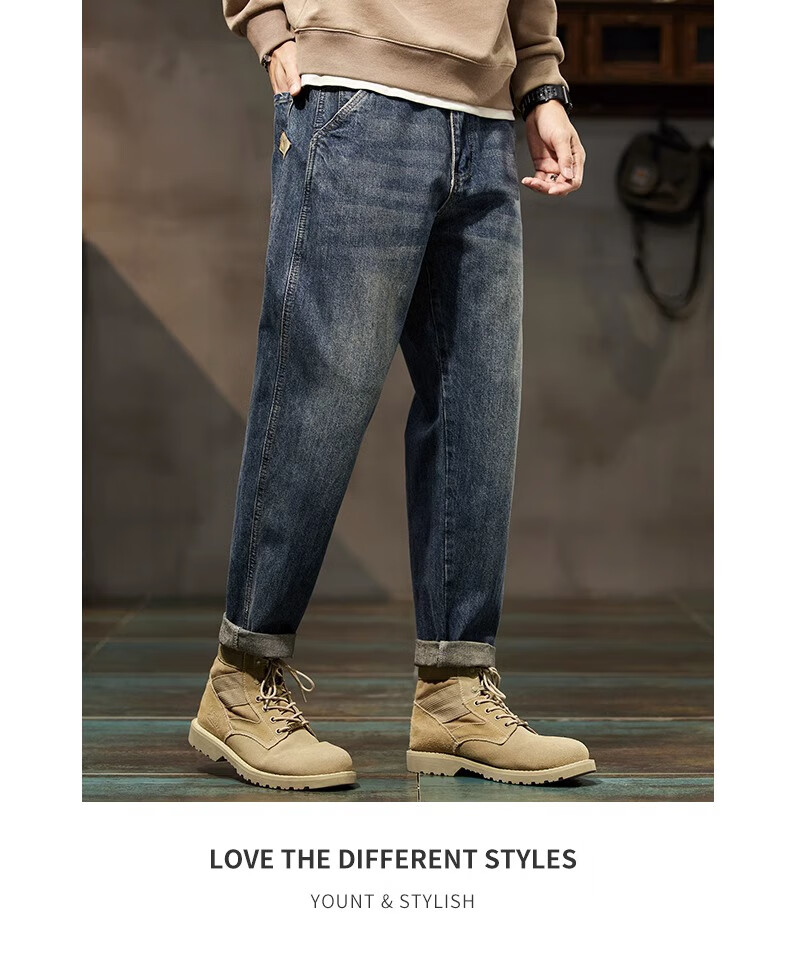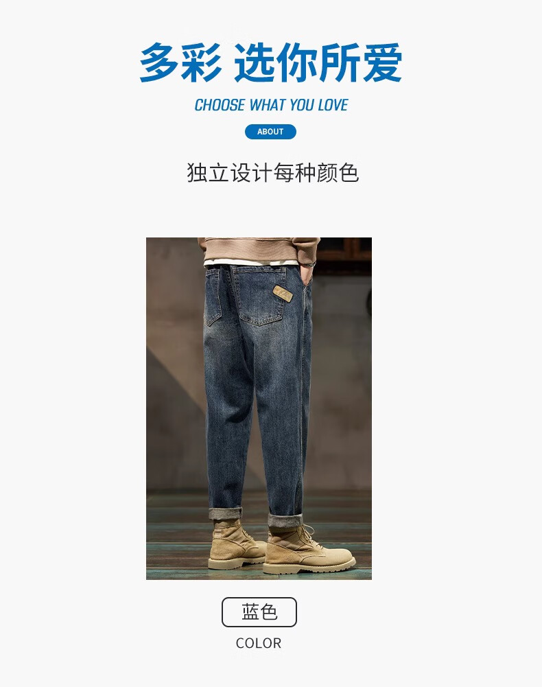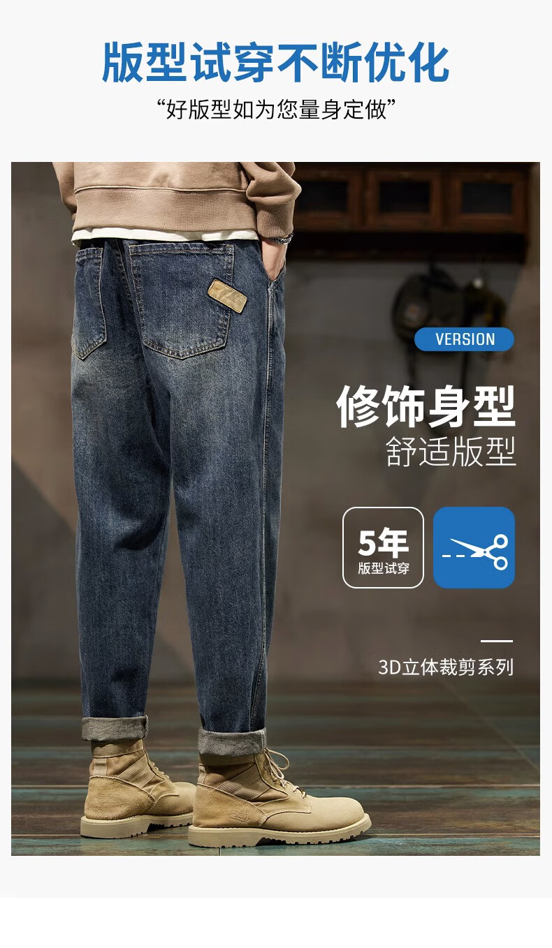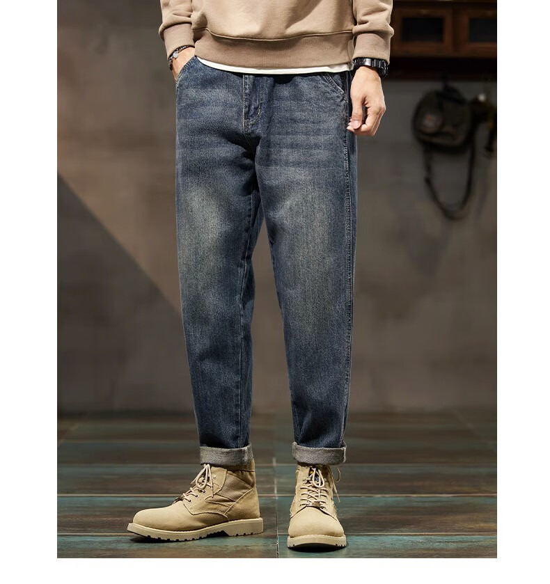真维斯(Jeanswest)美式复古牛仔裤男秋冬款潮牌宽松直筒男士裤子潮流痞帅休闲哈伦裤 怀旧蓝 【秋冬厚款】 28 建议体重100-110斤