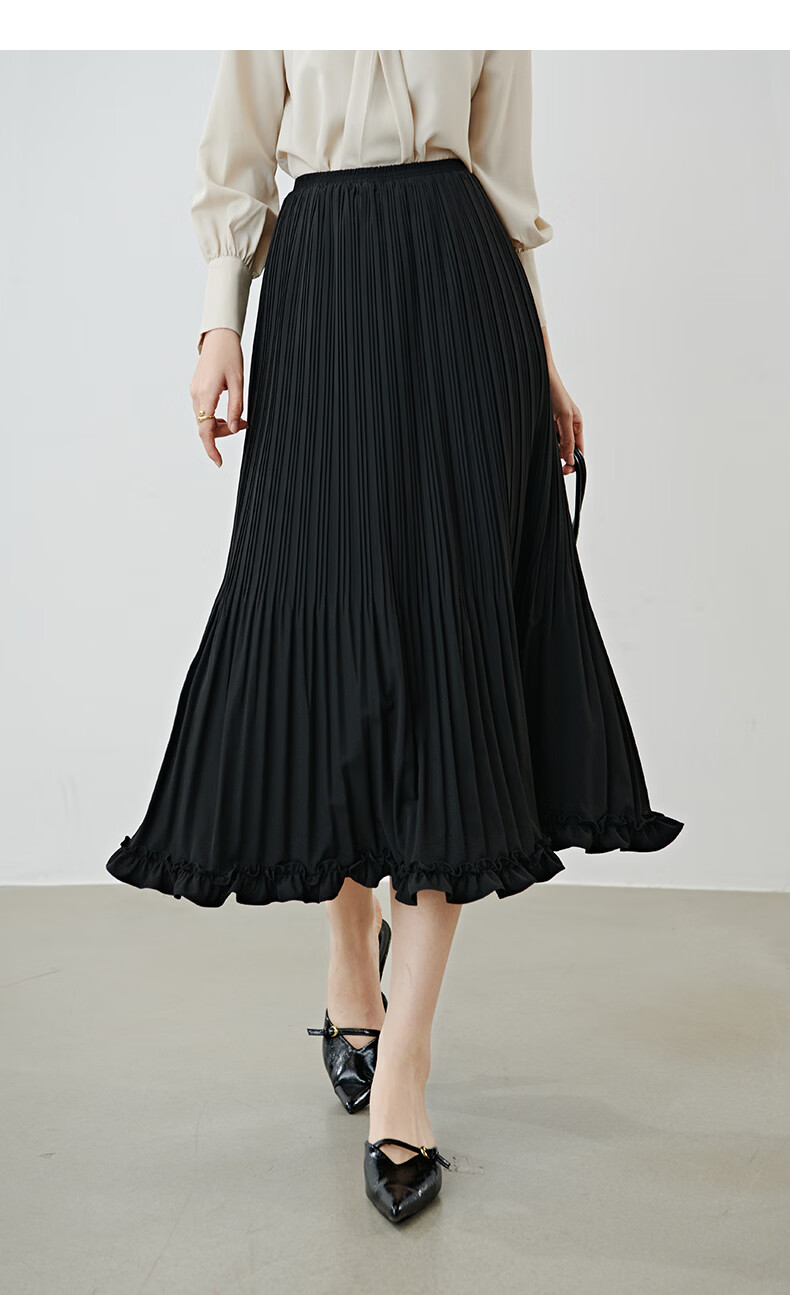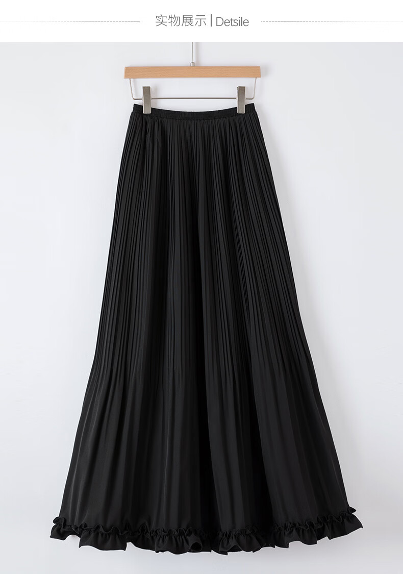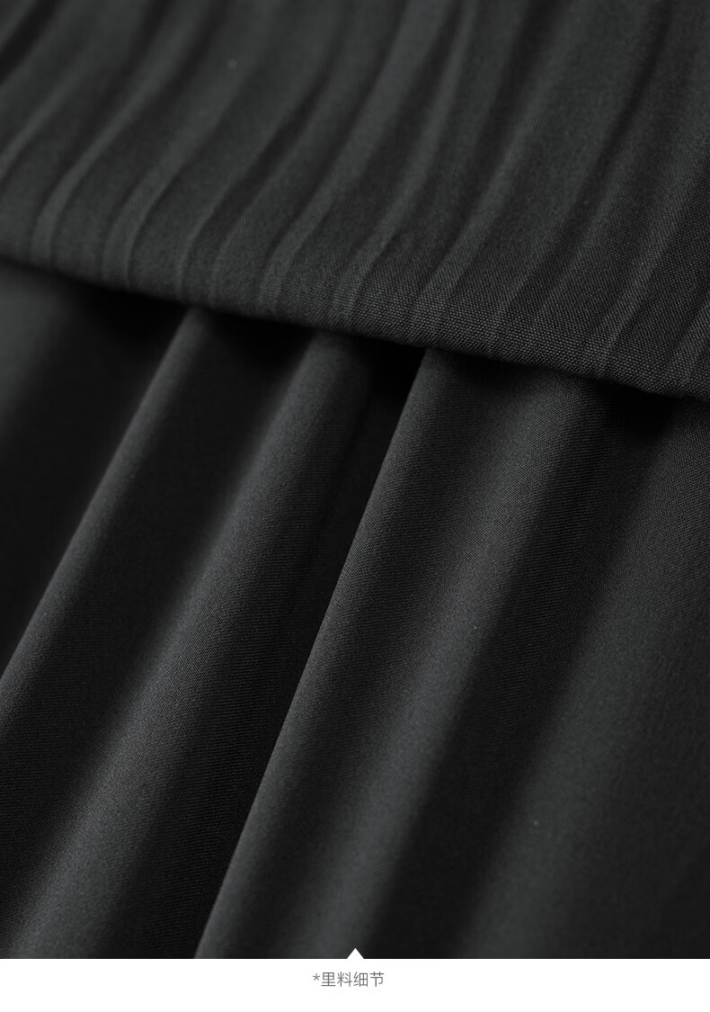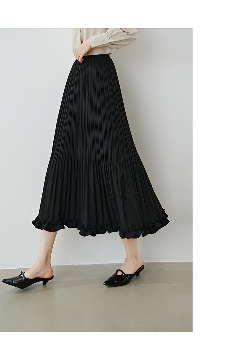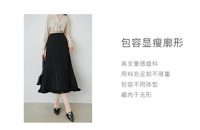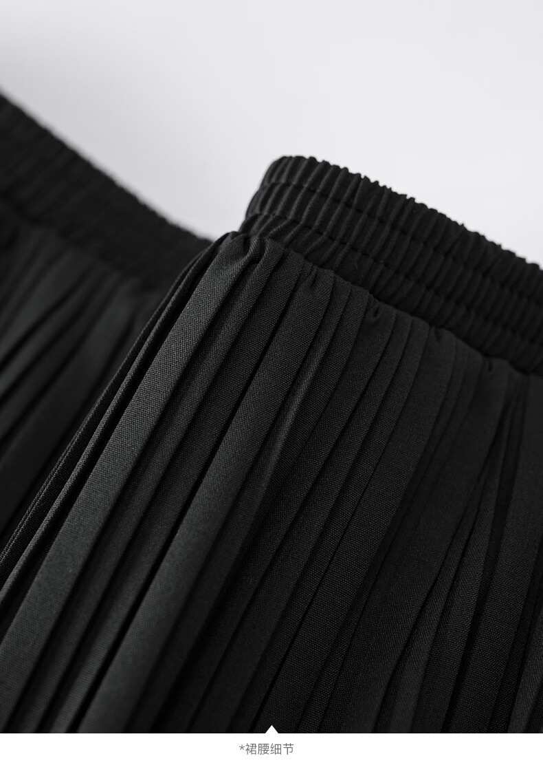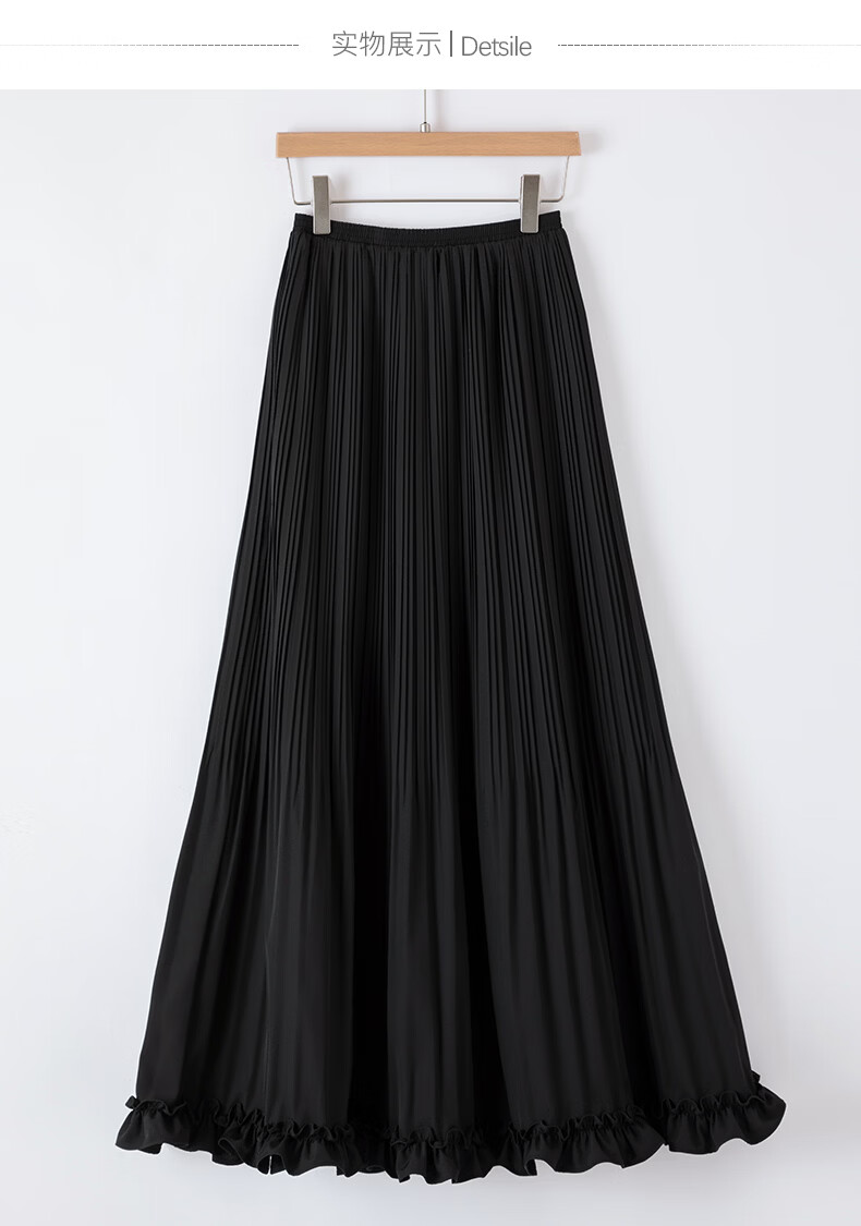 晚白【新品】2026年春款弹力松紧腰半裙显瘦垂顺重工花瓣木耳边百褶裙 黑色 XL