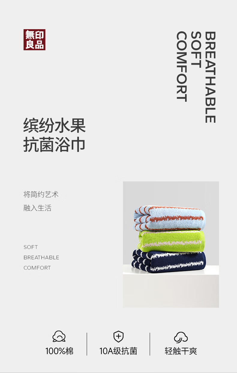 无印良品浴巾7A级抗菌亲肤柔软吸水不易掉毛A类男士女生洗澡情侣大浴巾