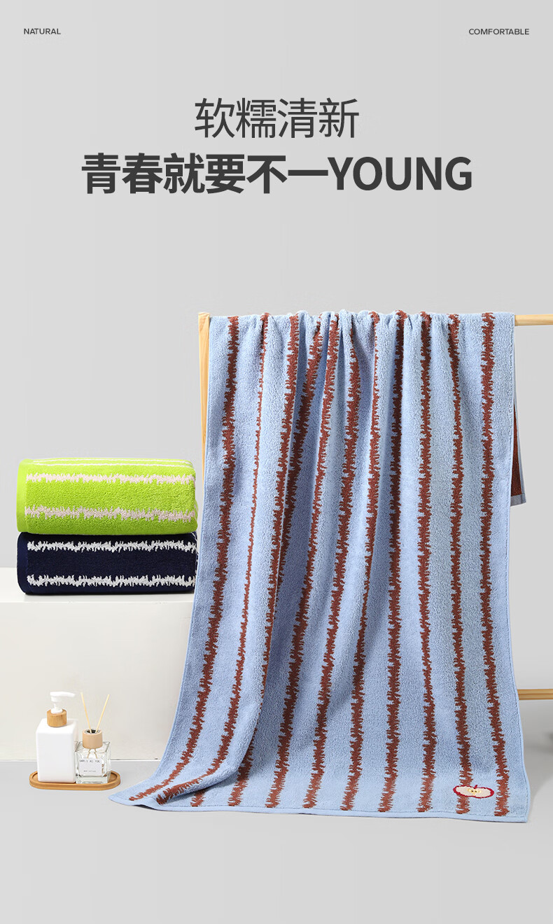 洁丽雅日式云朵格浴巾男女士7A级抗菌300克超强吸水柔软亲肤洗澡速干厚