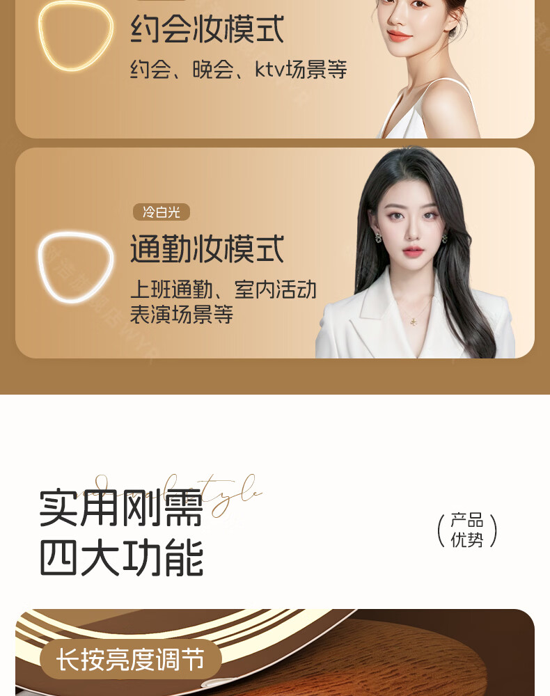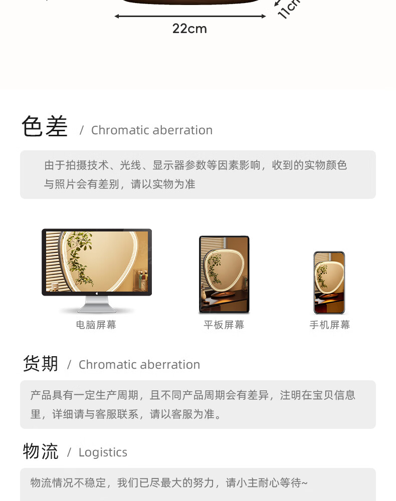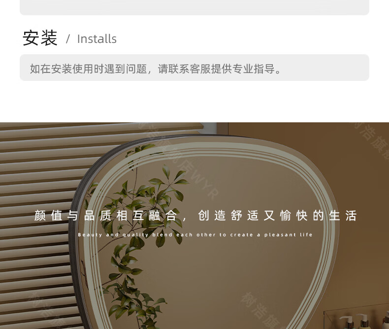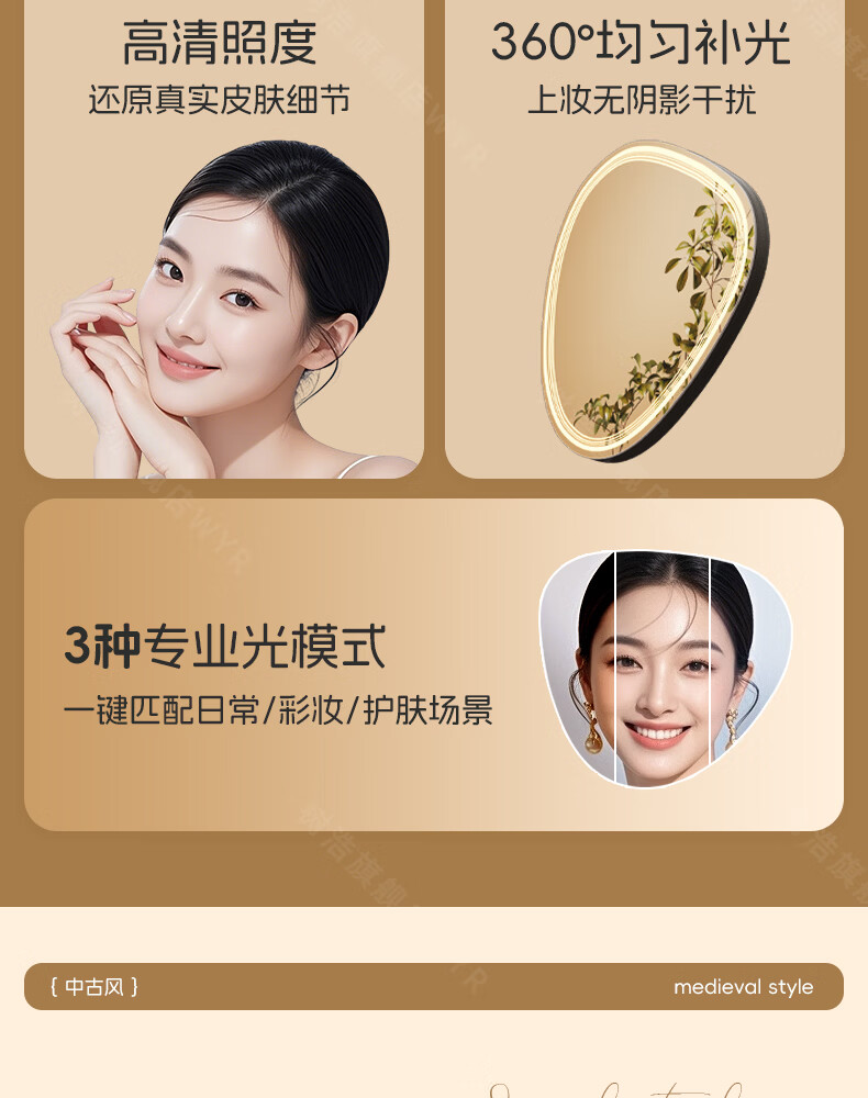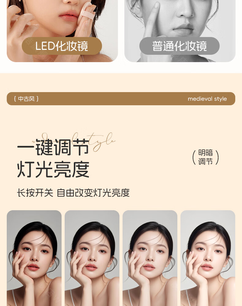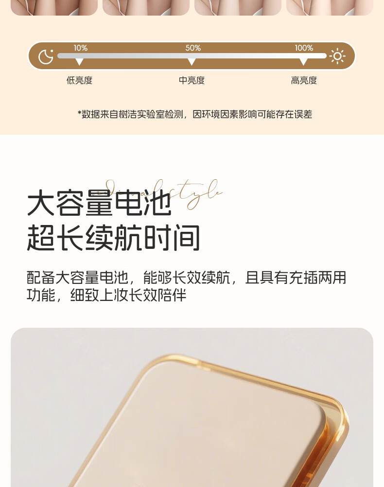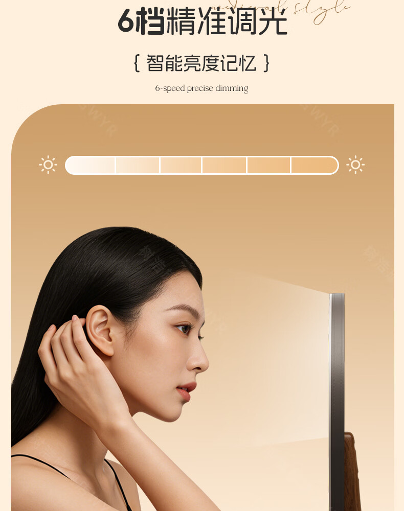树浩智能化妆镜台式桌面美妆镜卧室led带灯梳妆镜家用高清调光小镜子 【嘉树庭】胡桃底座 皮革包边48*50cm-智能三色调节