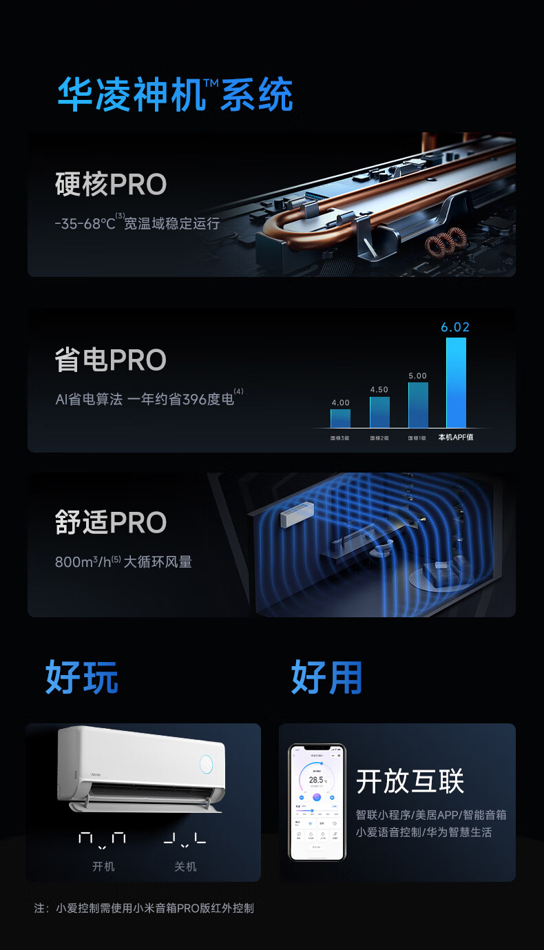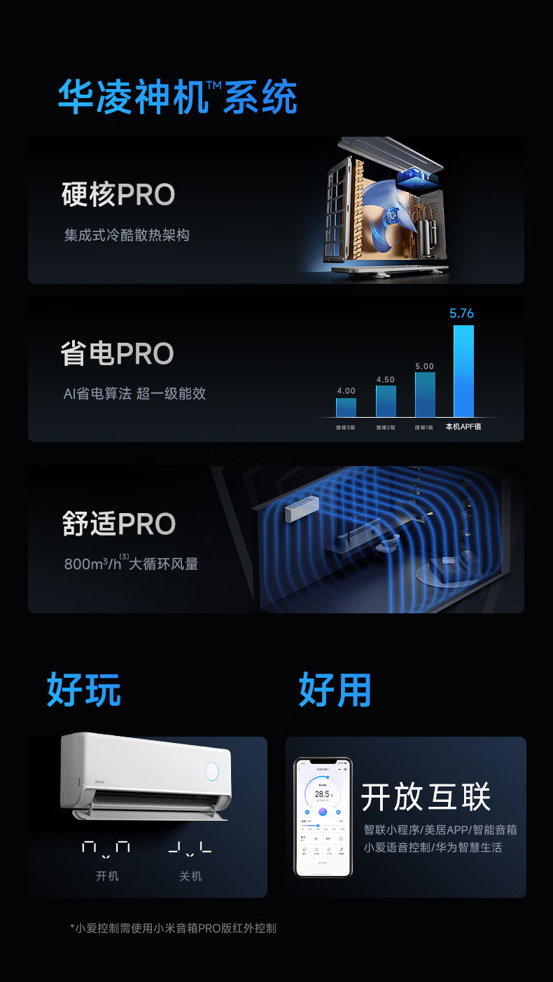 华凌空调 神机二代 大1.5匹空调双排铜管 超一级能效 家用冷暖智能变频空调挂机 家电国家补贴以旧换新 35HE1Ⅱpro【旗舰款】 大1.5匹 液冷散热系统