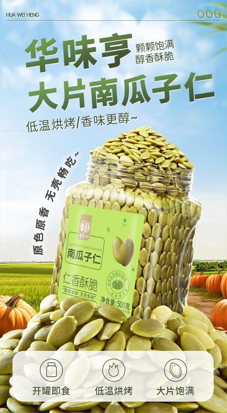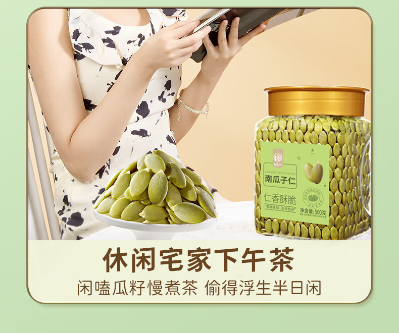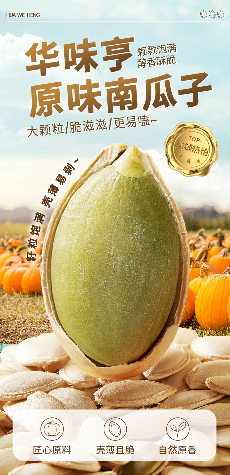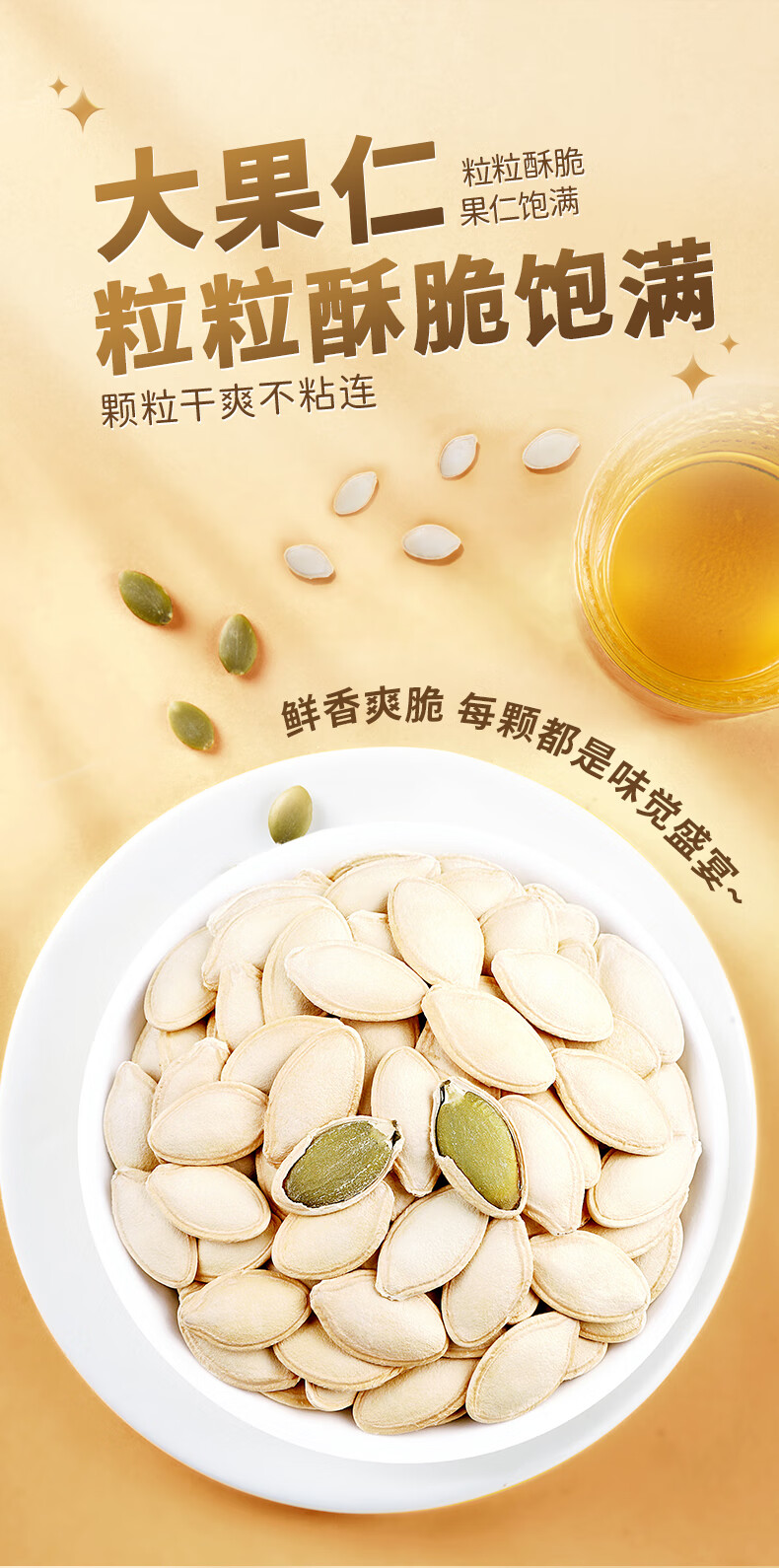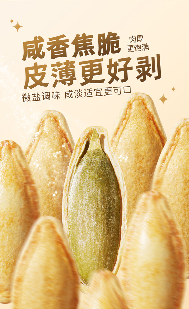 华味亨 500g盐焗南瓜子 美人甲瓜子仁农家炒熟传统零食独立小包装大颗粒 500g原味南瓜子仁*1罐