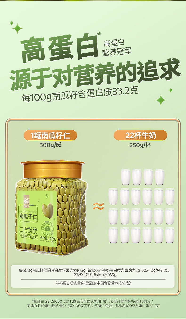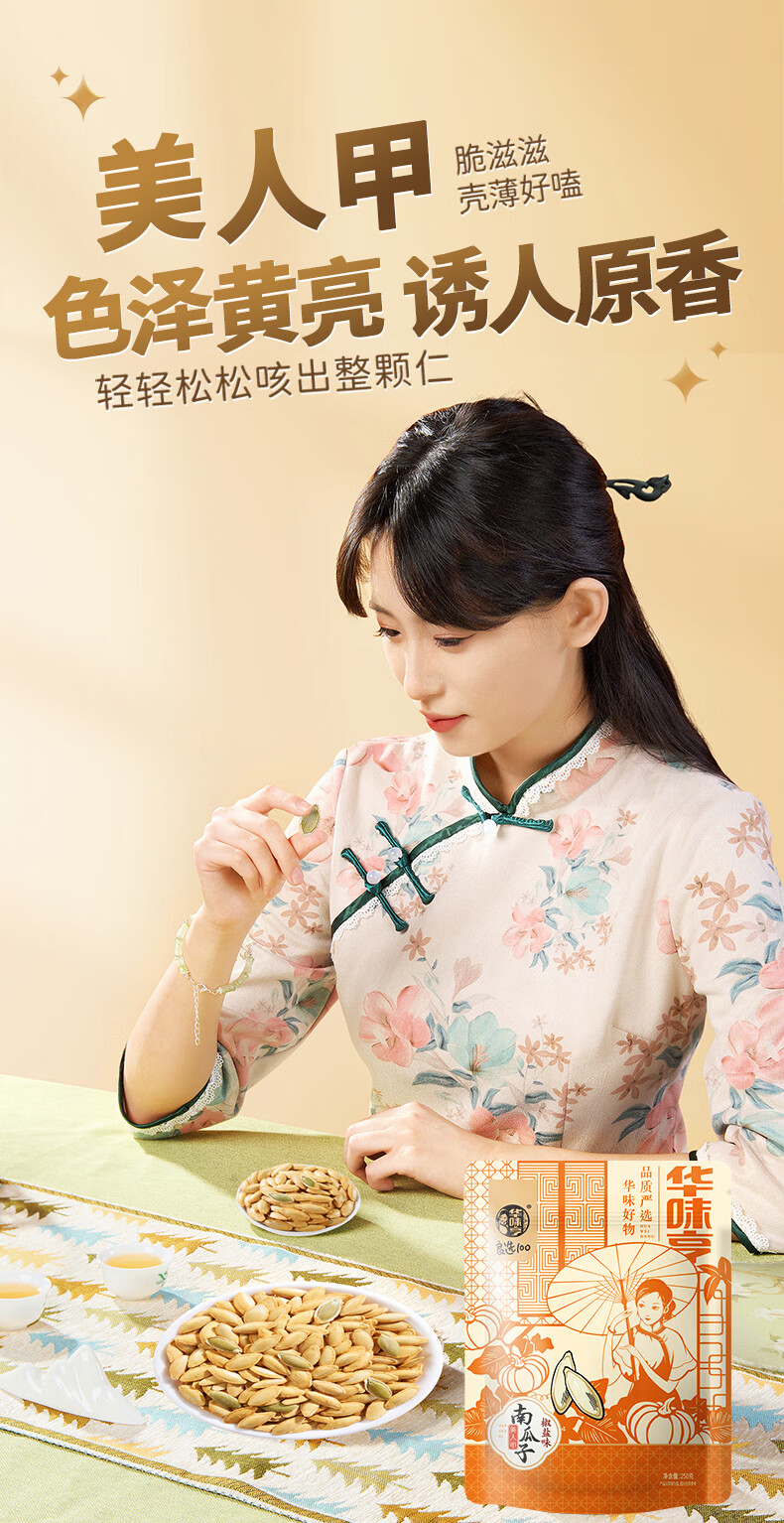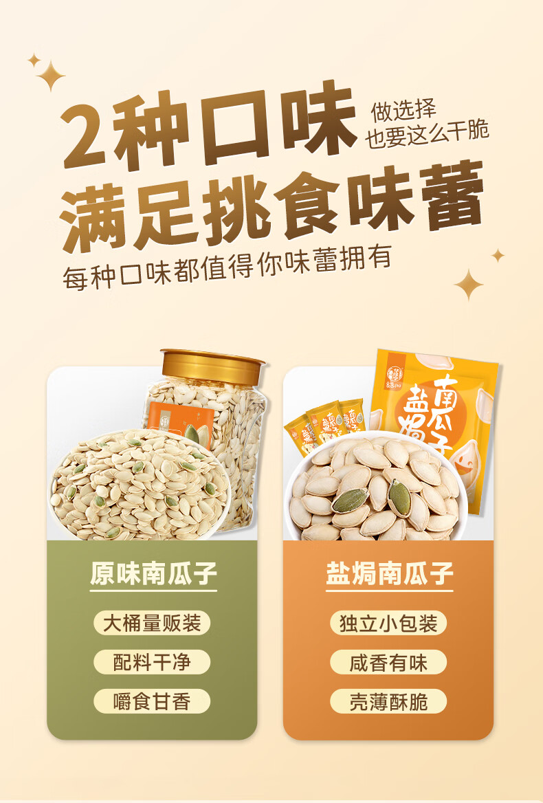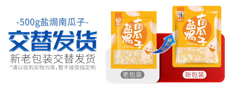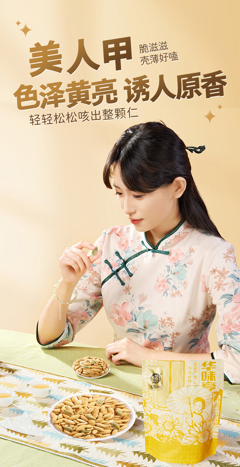 华味亨 500g盐焗南瓜子 美人甲瓜子仁农家炒熟传统零食独立小包装大颗粒 500g原味南瓜子仁*1罐