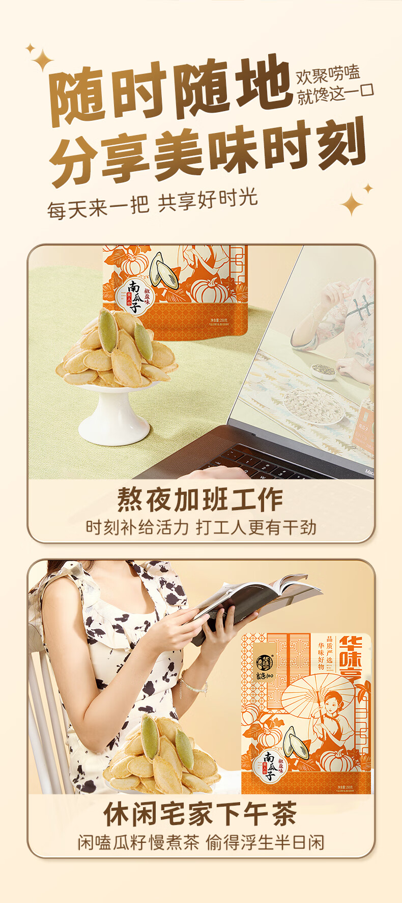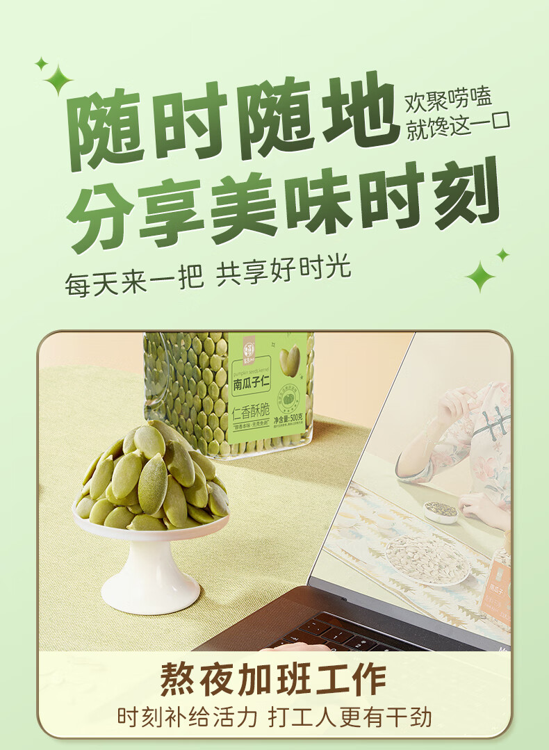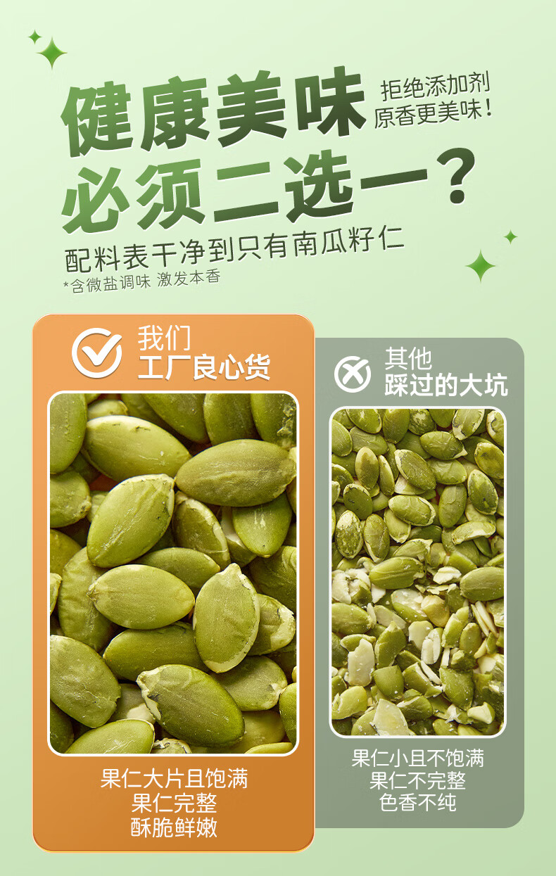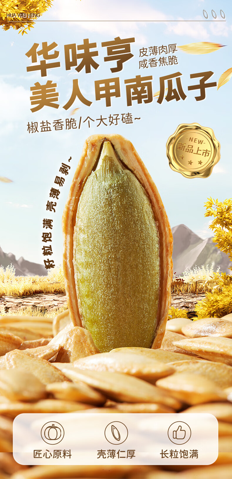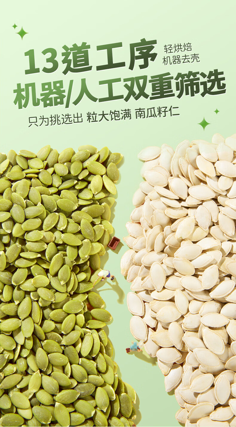 华味亨 500g盐焗南瓜子 美人甲瓜子仁农家炒熟传统零食独立小包装大颗粒 500g原味南瓜子仁*1罐