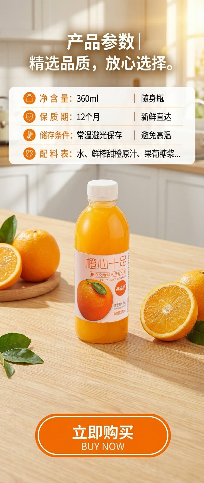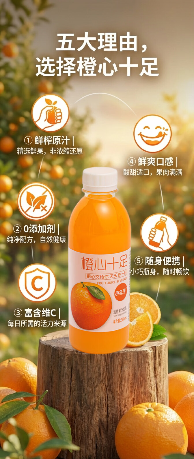 百乐洋 甜橙汁 果汁饮料 甜橙汁 360mL*2瓶