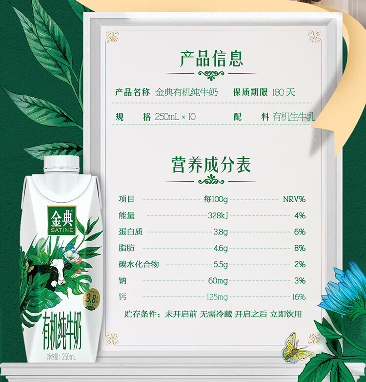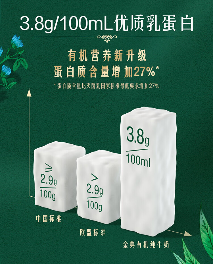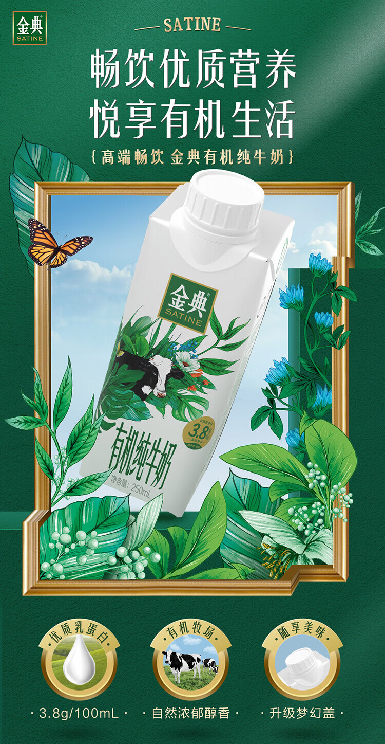 金典有机纯牛奶梦幻盖250ml*10盒(敕勒川限定牧场) 3.8g乳蛋白 1月产 金典有机纯牛奶梦幻盖