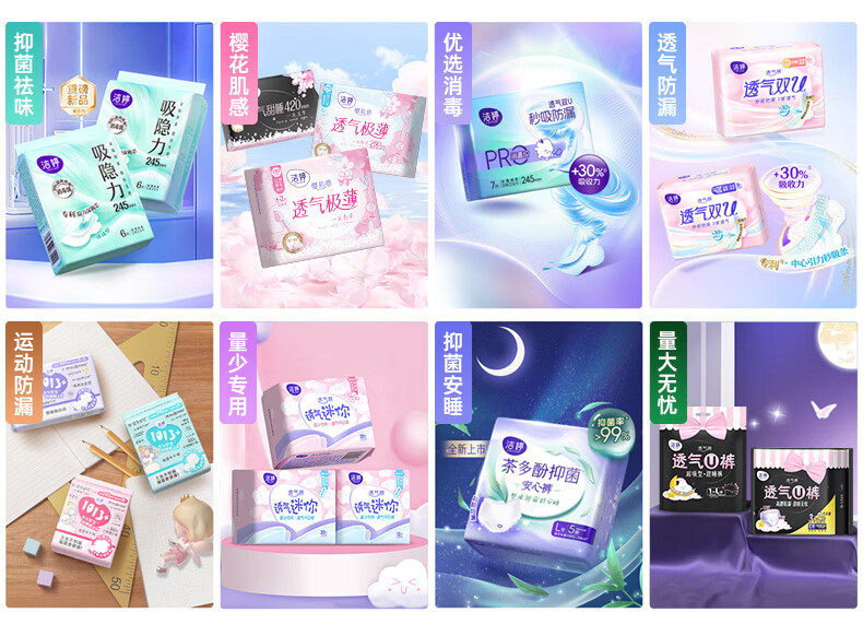 洁婷绵柔卫生巾透气双U日夜用姨妈巾组合套装 双U日夜组合25片
