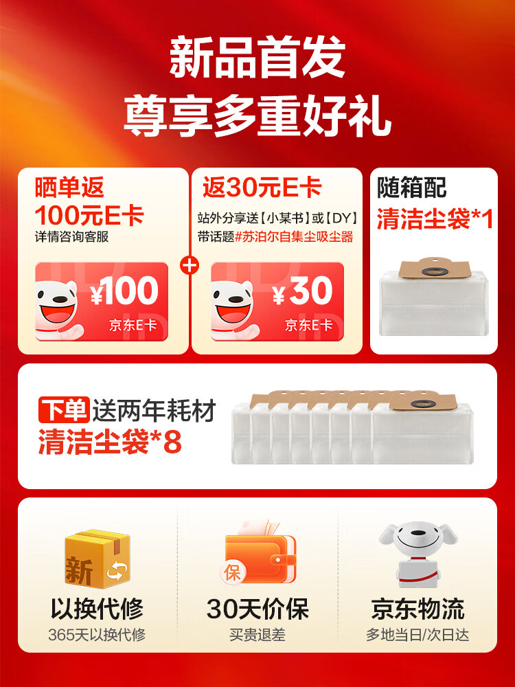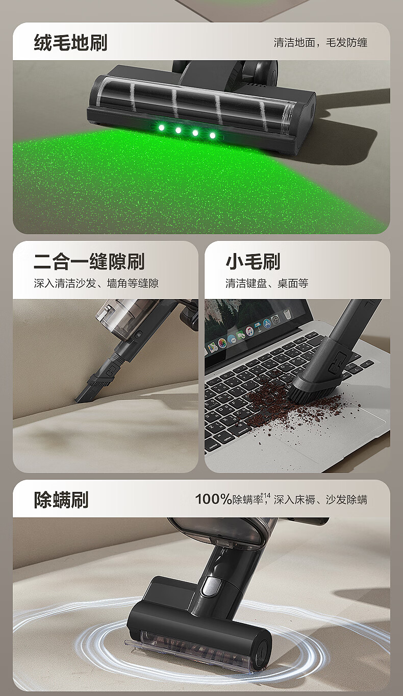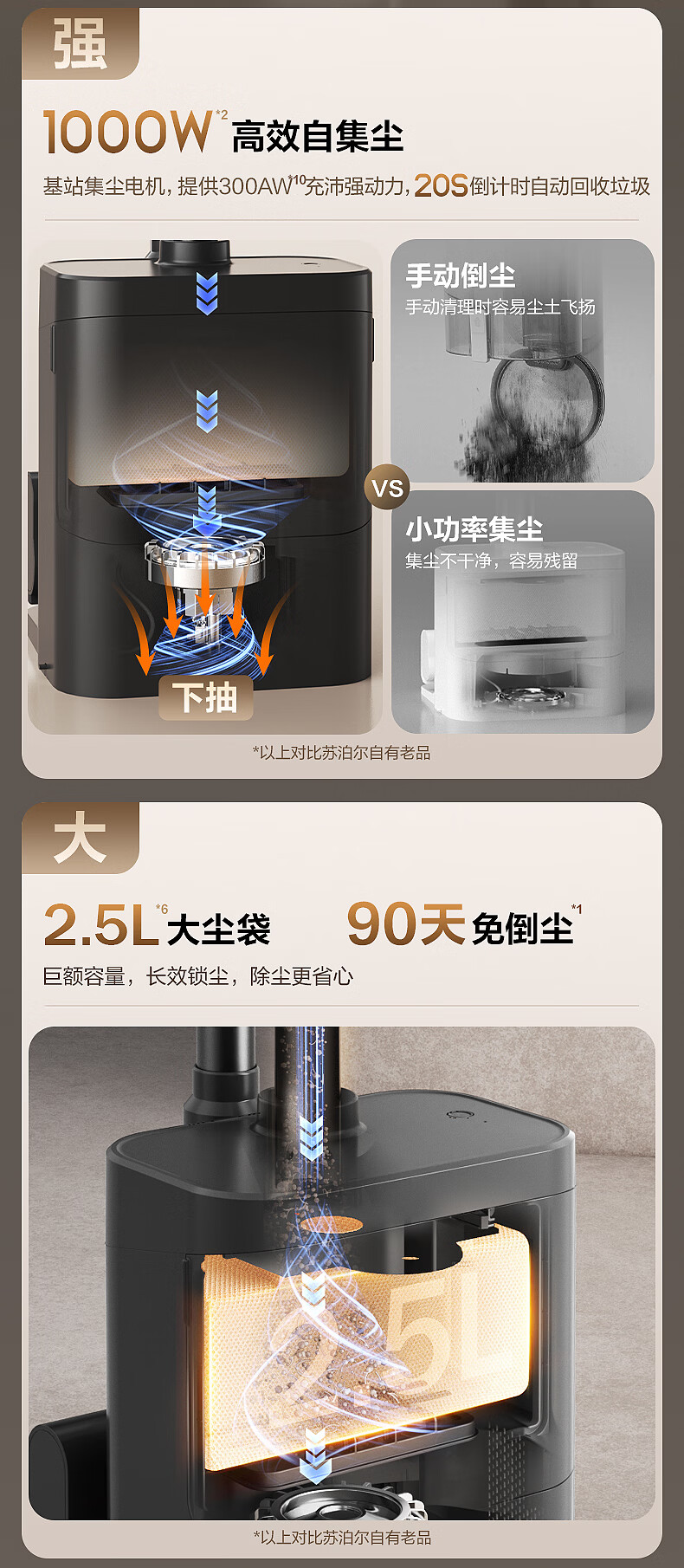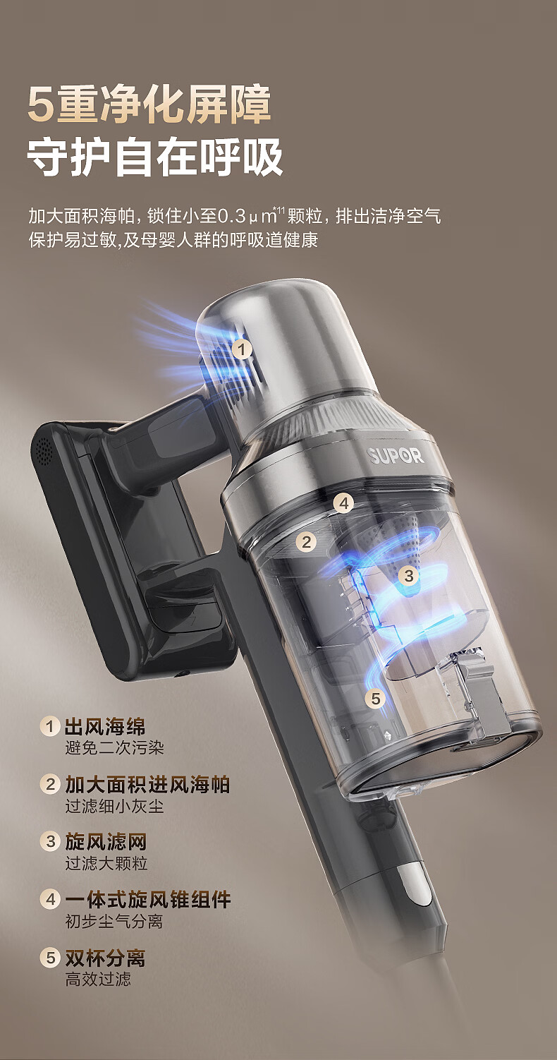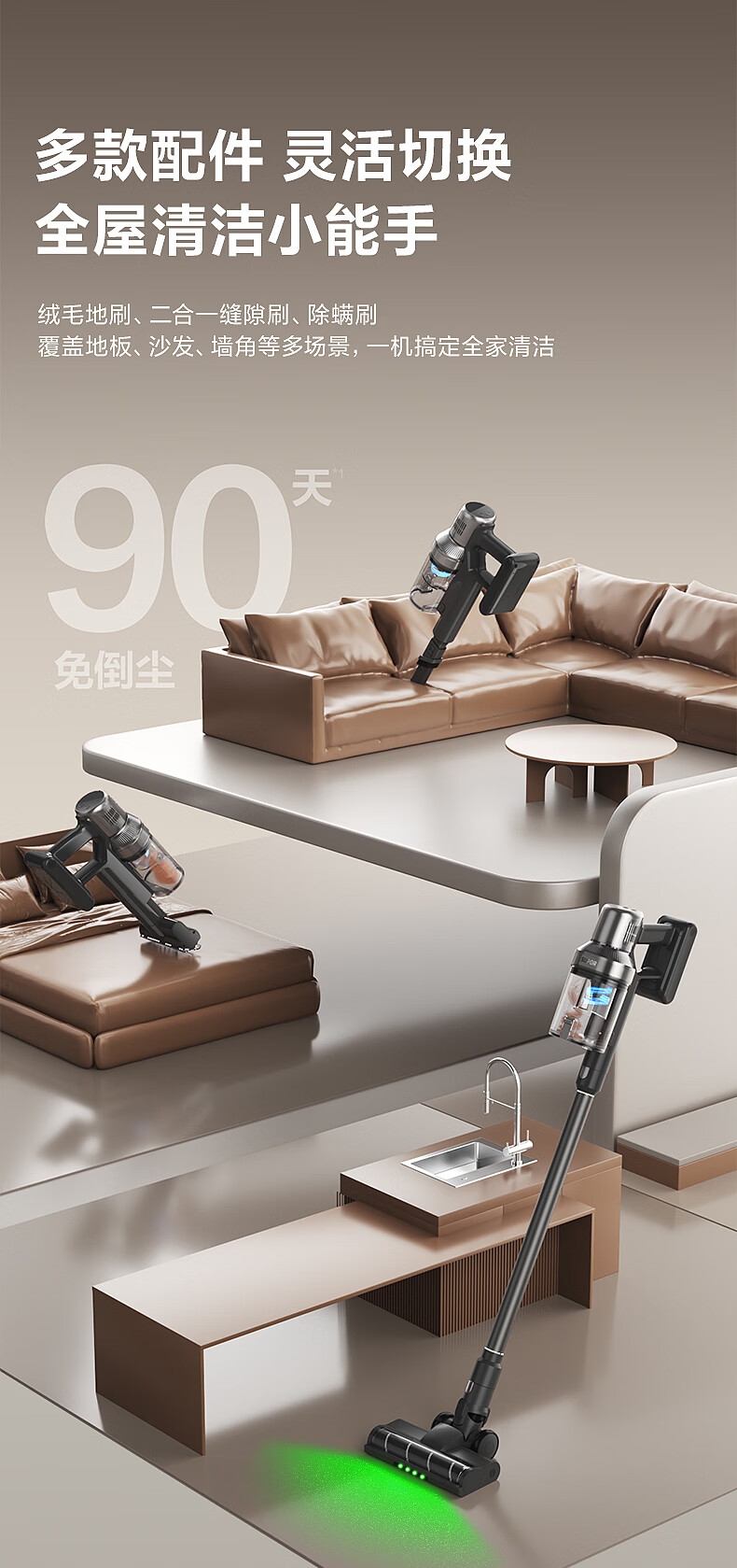 苏泊尔吸尘器自集尘基站【双杯防缠】家用手持无线大吸力集尘管家绿光除螨毛发防缠新年礼物EVS-C33-SL