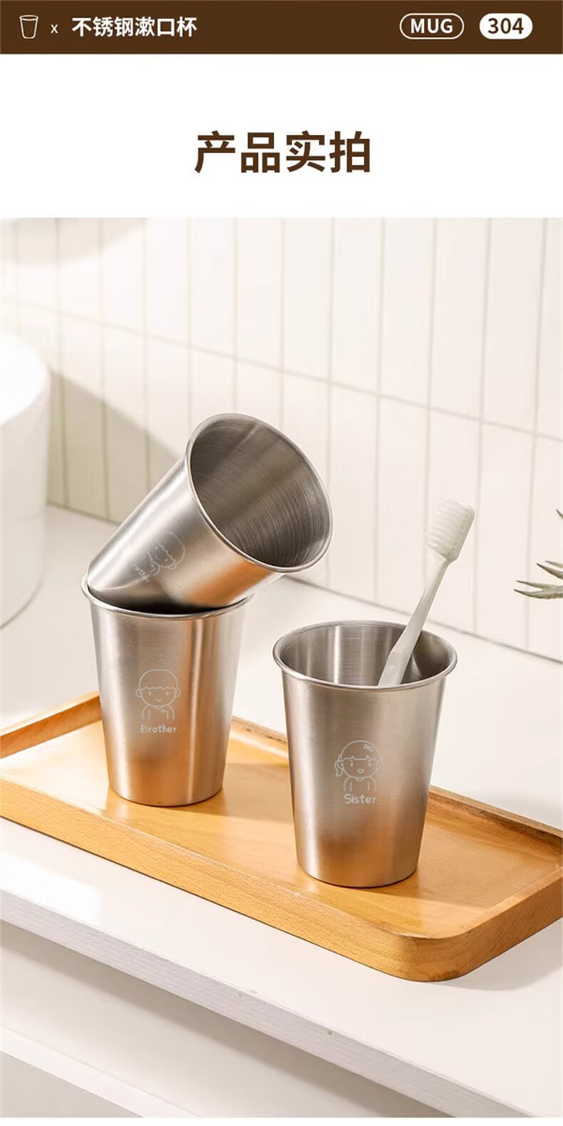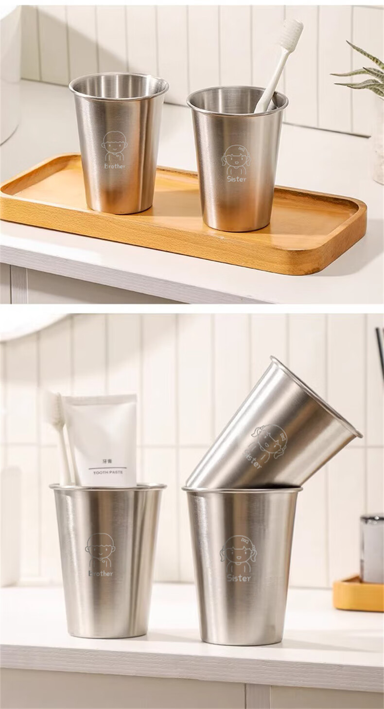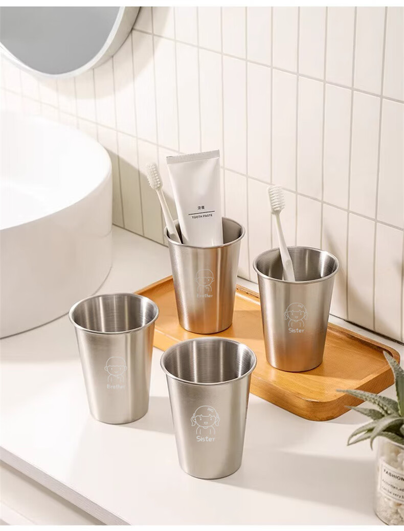 元气贝比(YUANQIBEIBI)儿童水杯304不锈钢杯子洗漱杯双层防烫幼儿园宝宝牛奶杯男孩款