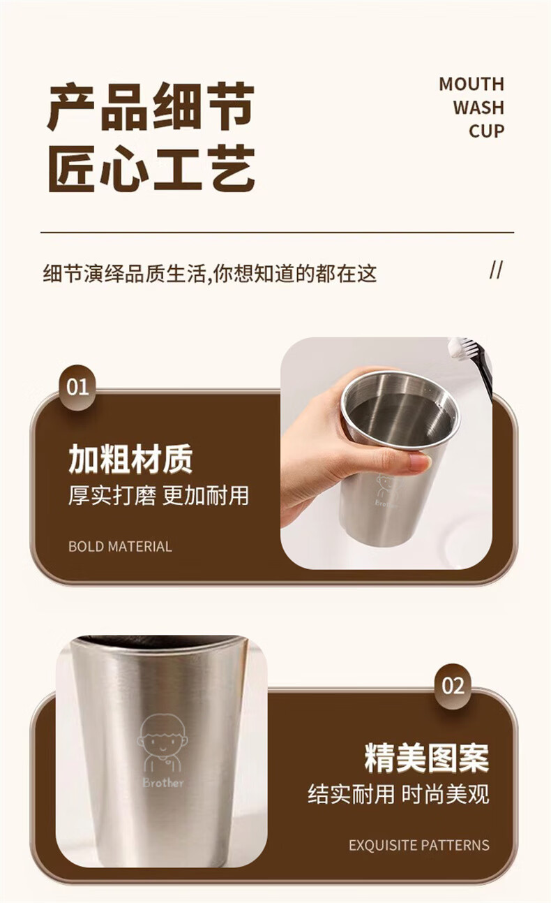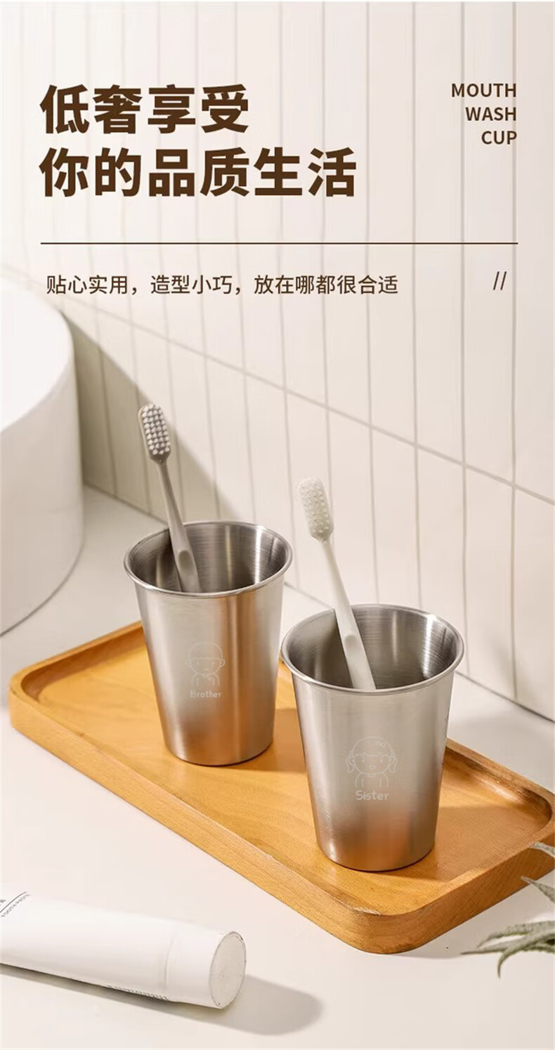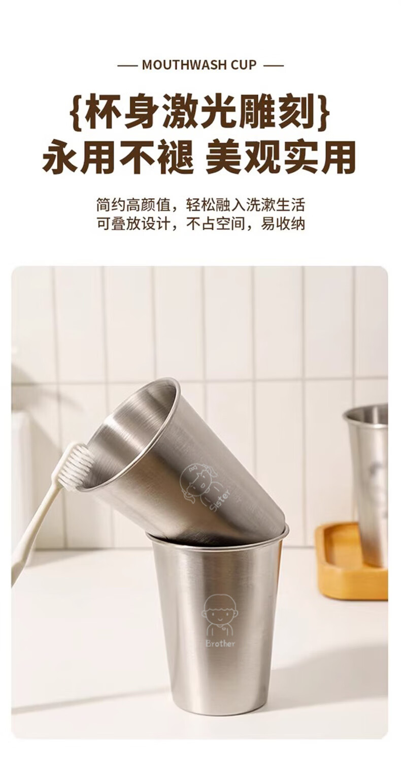 元气贝比(YUANQIBEIBI)儿童水杯304不锈钢杯子洗漱杯双层防烫幼儿园宝宝牛奶杯男孩款