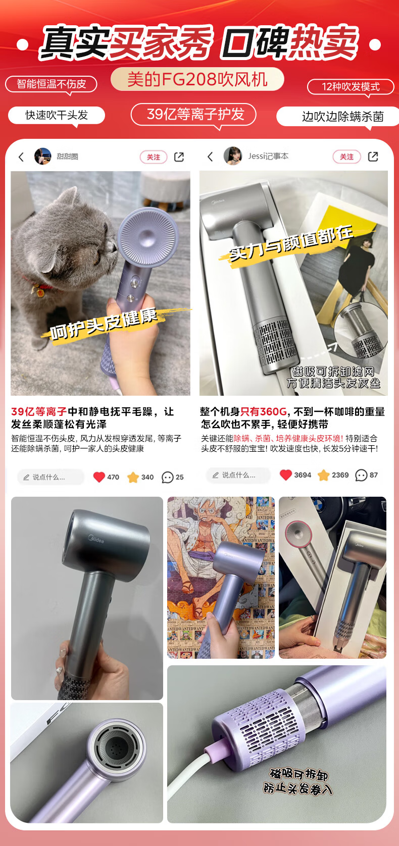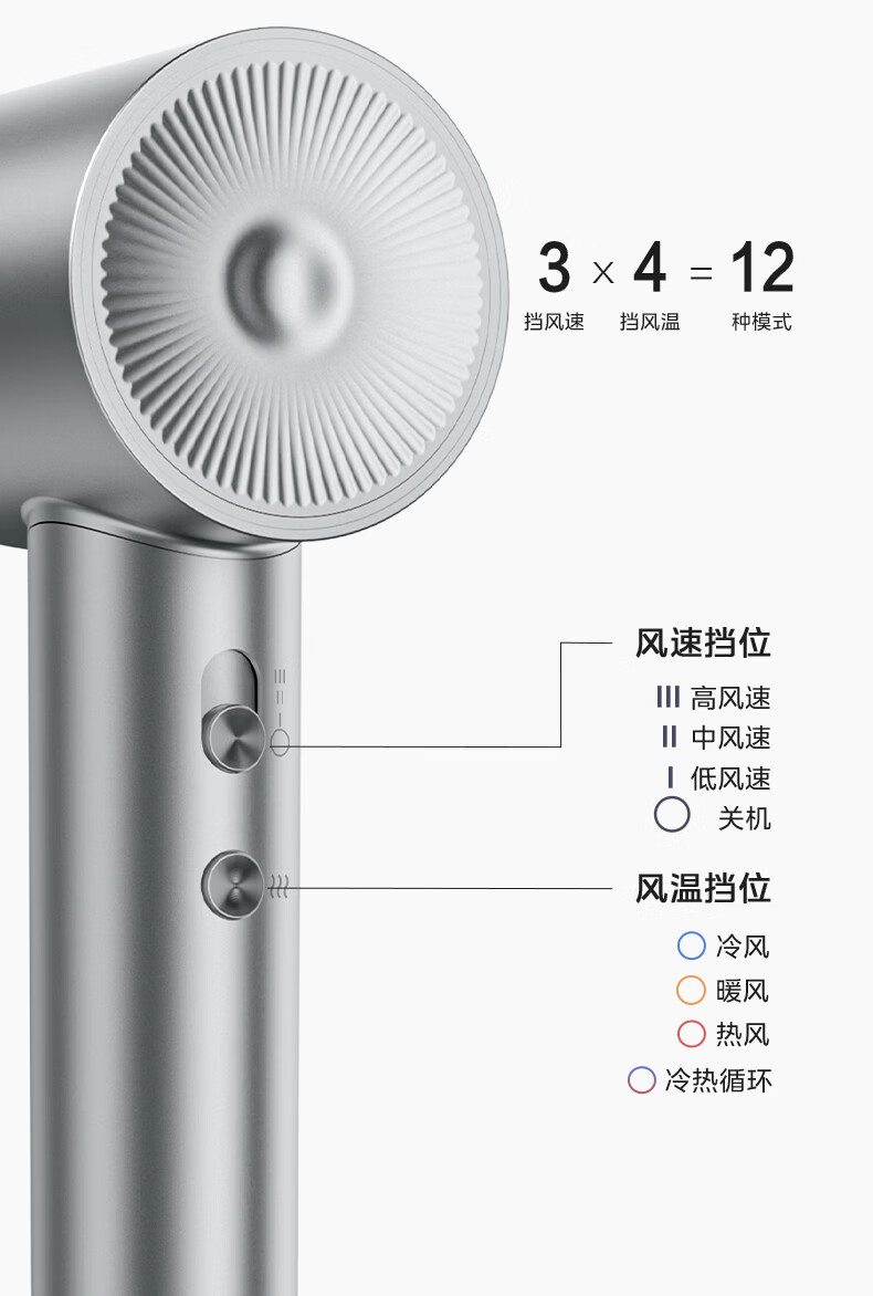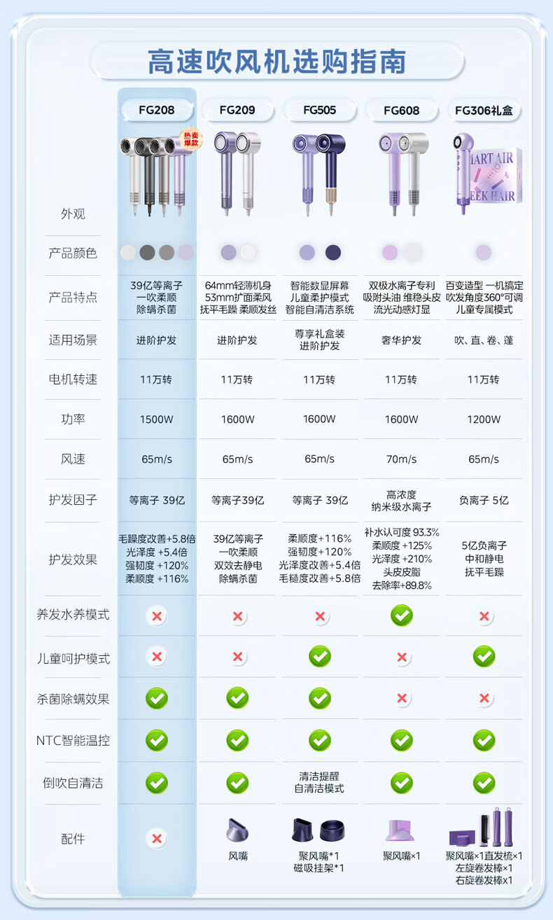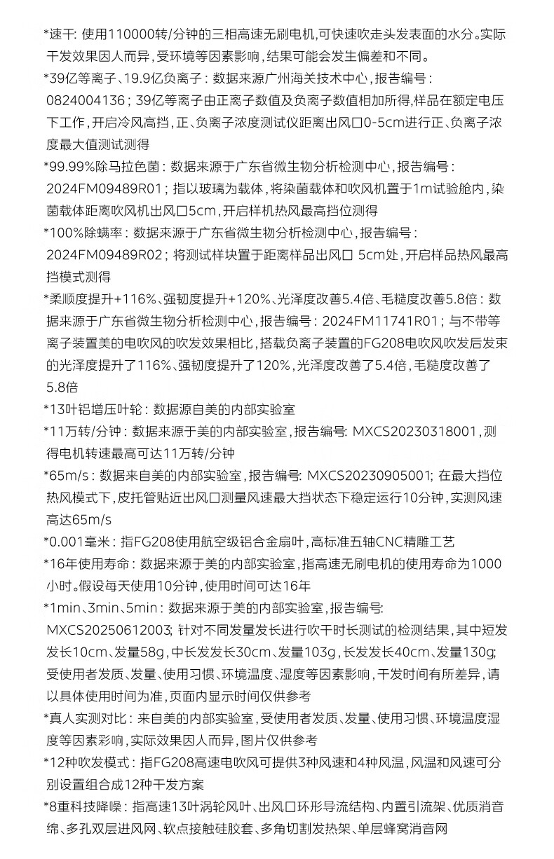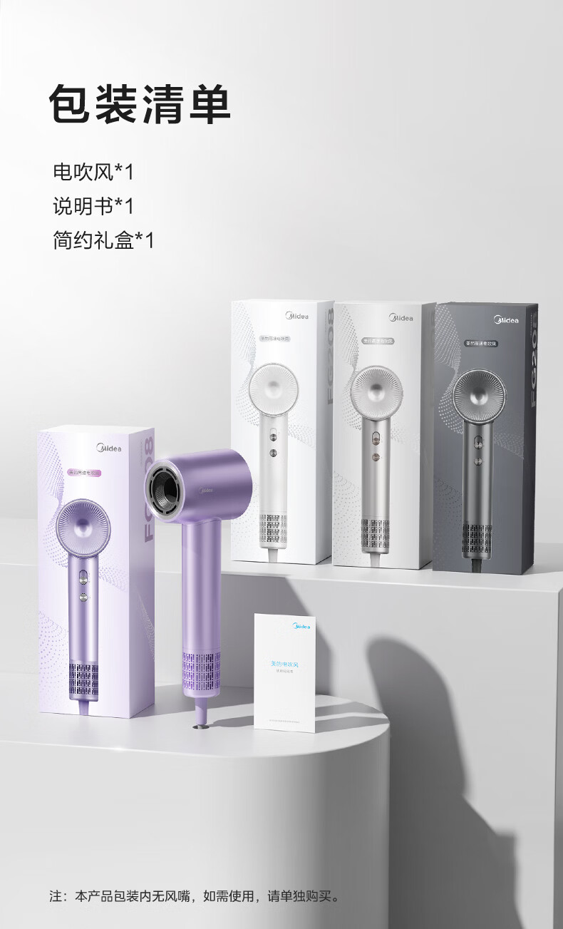 美的(Midea)高速吹风机 39亿等离子护发电吹风 大功率速干 家用负离子护发吹风筒 FG208灰 节日/生日礼物推荐