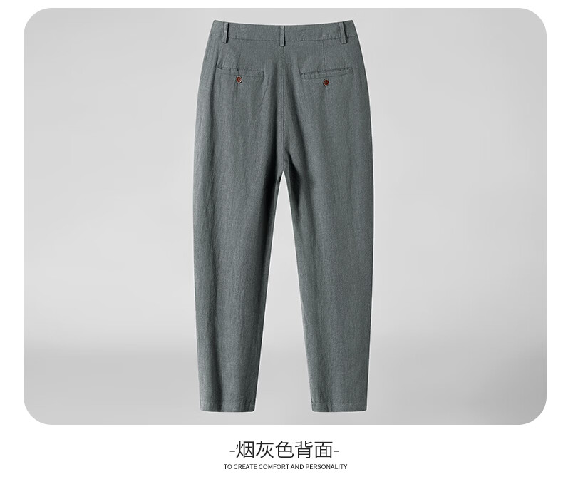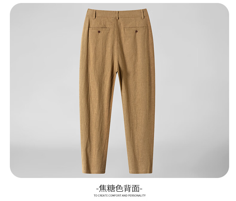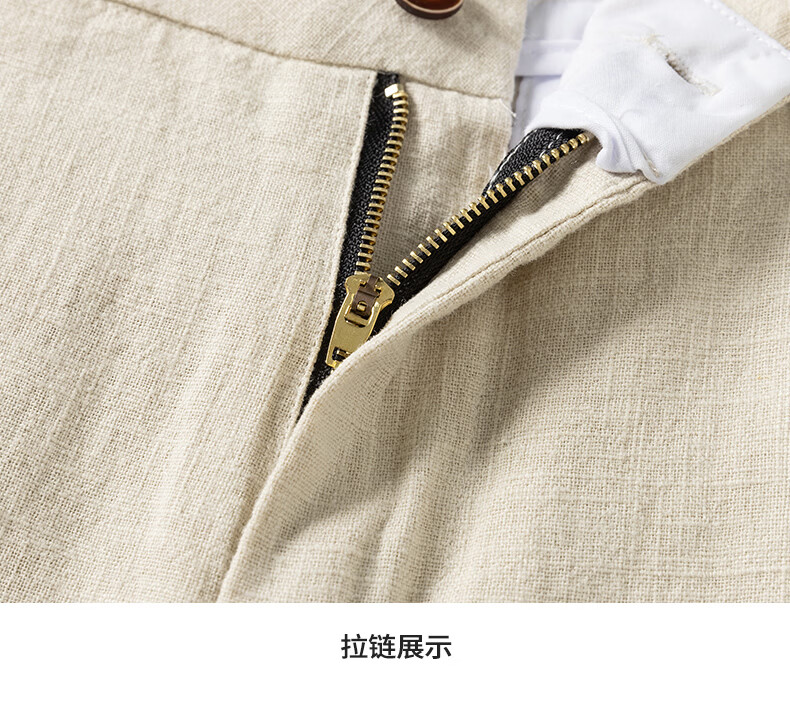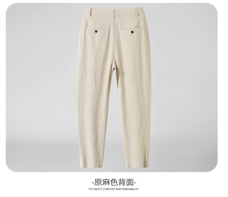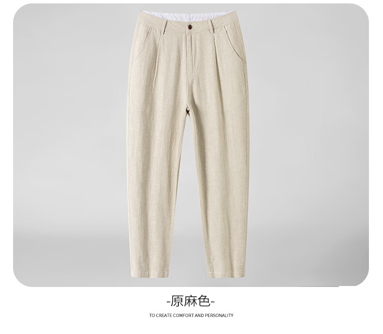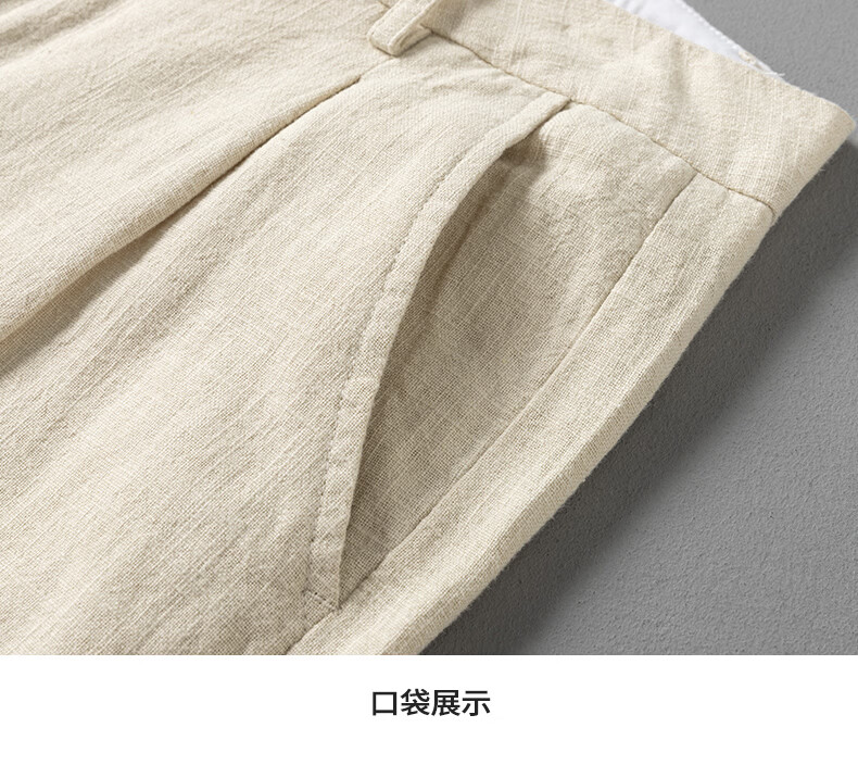 SHANSHAN杉杉【棉+苎麻】休闲裤男士夏季新款简约松紧腰通勤九分裤男裤 原麻色 L /175