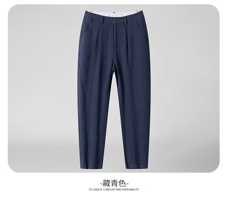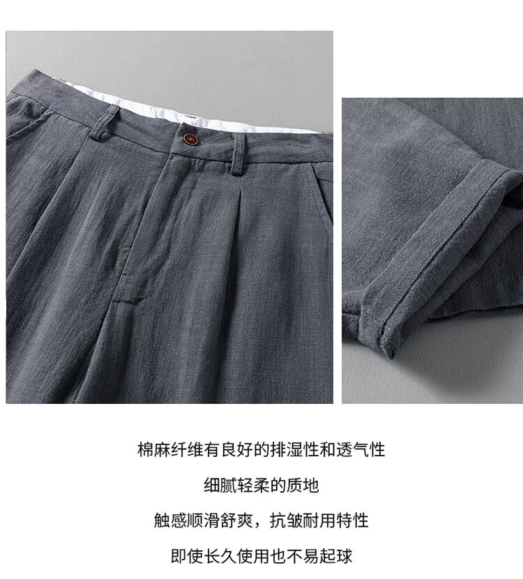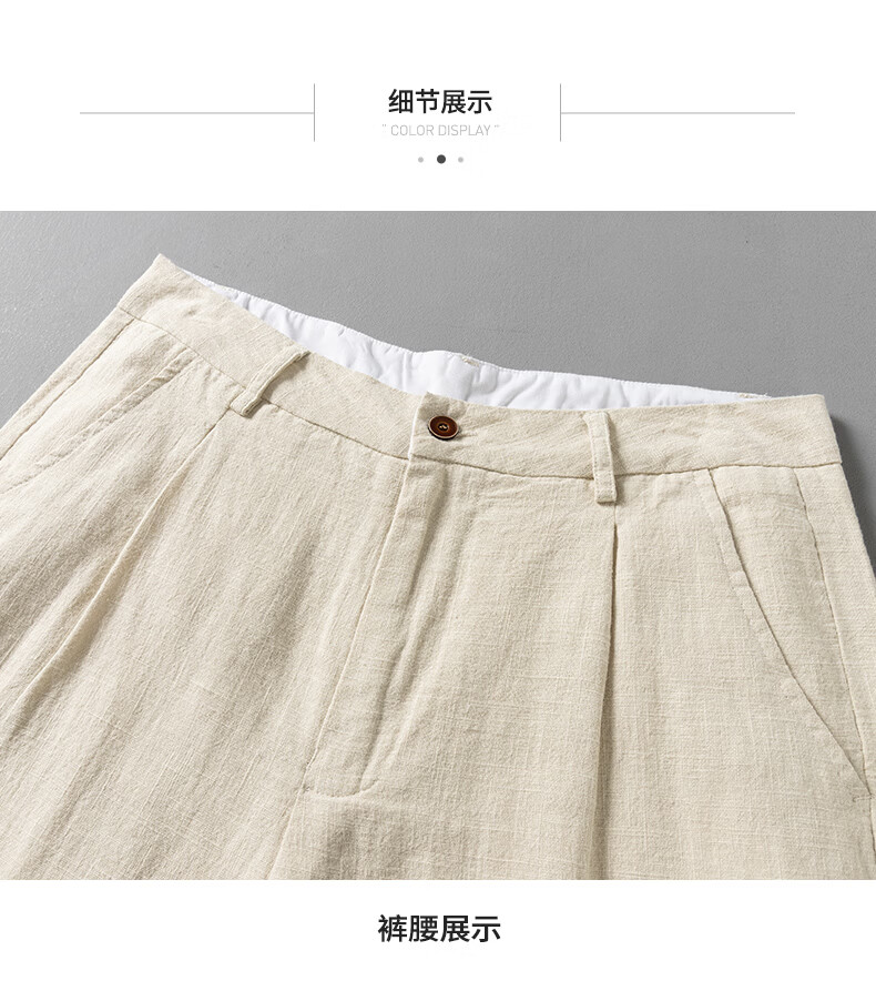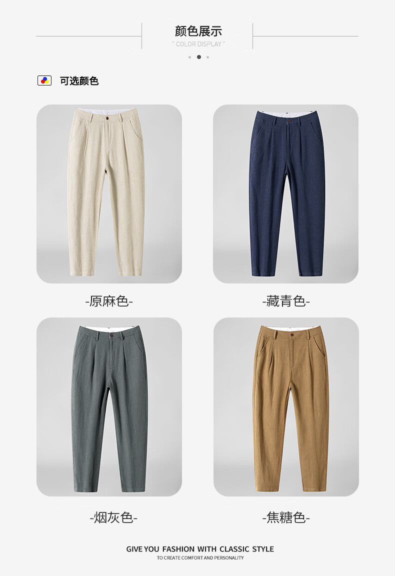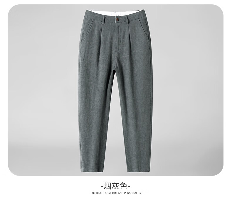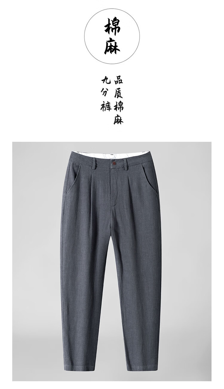SHANSHAN杉杉【棉+苎麻】休闲裤男士夏季新款简约松紧腰通勤九分裤男裤 原麻色 L /175