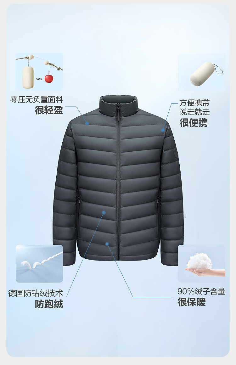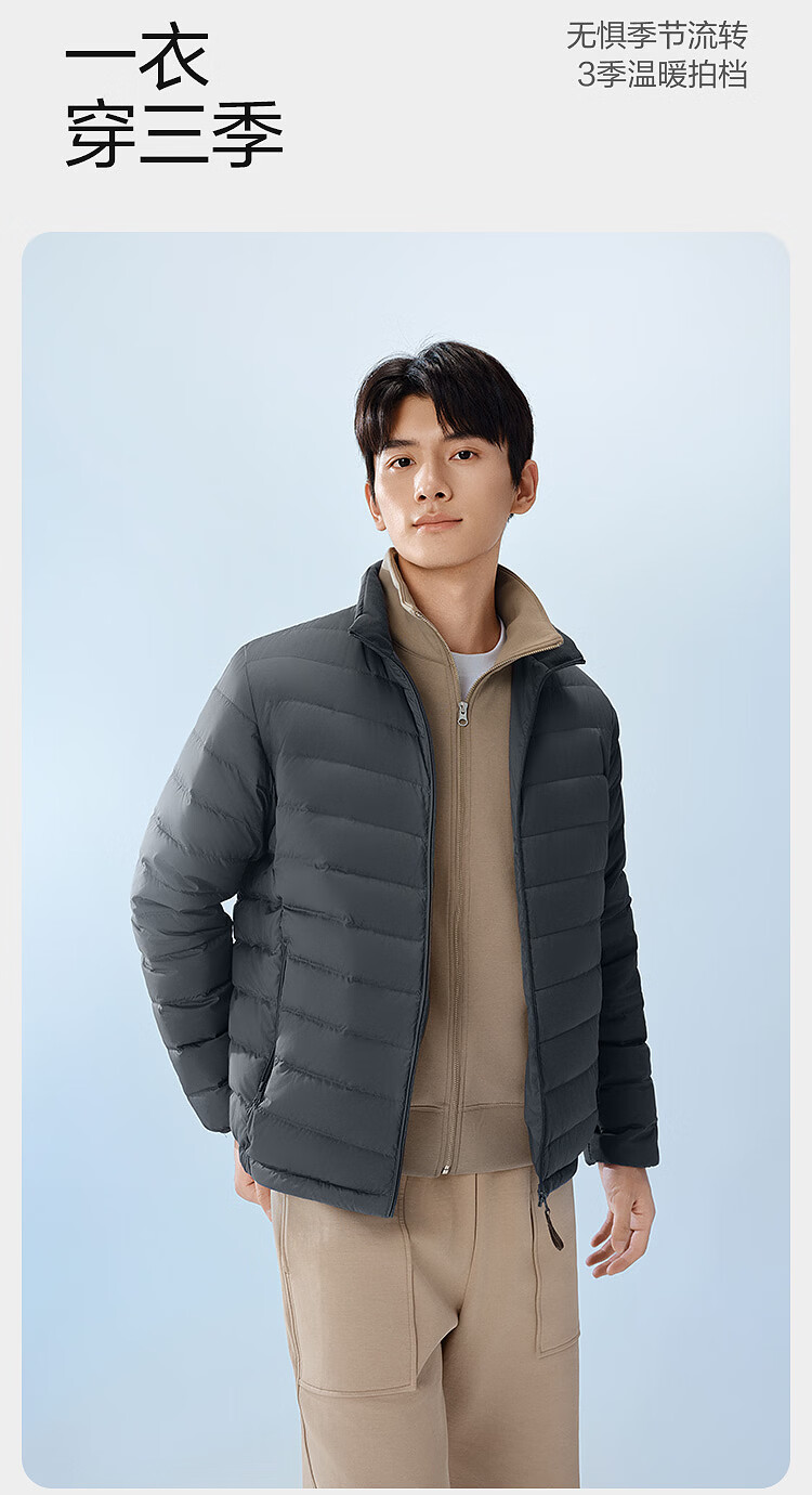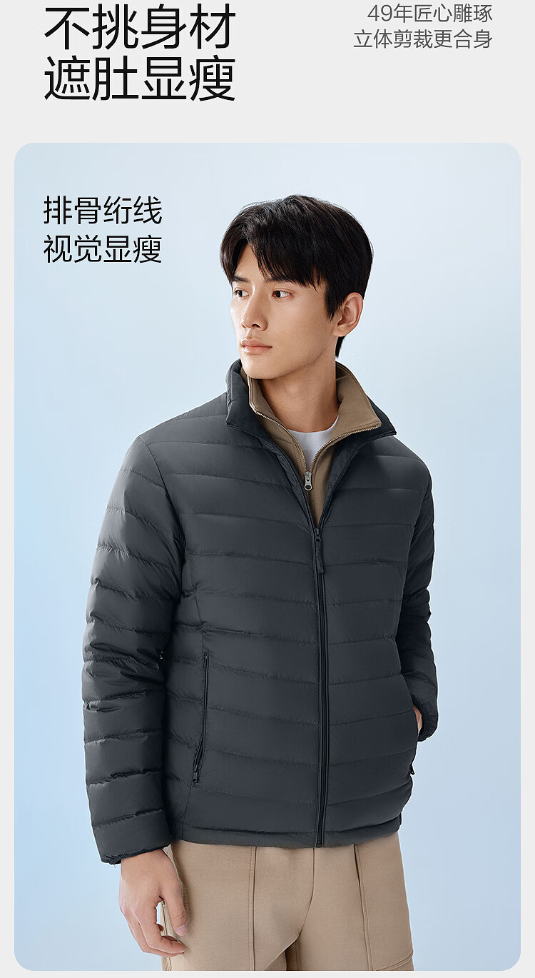 波司登26春季男士轻薄羽绒服短款立领排骨条保暖外套B260135005