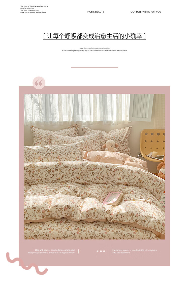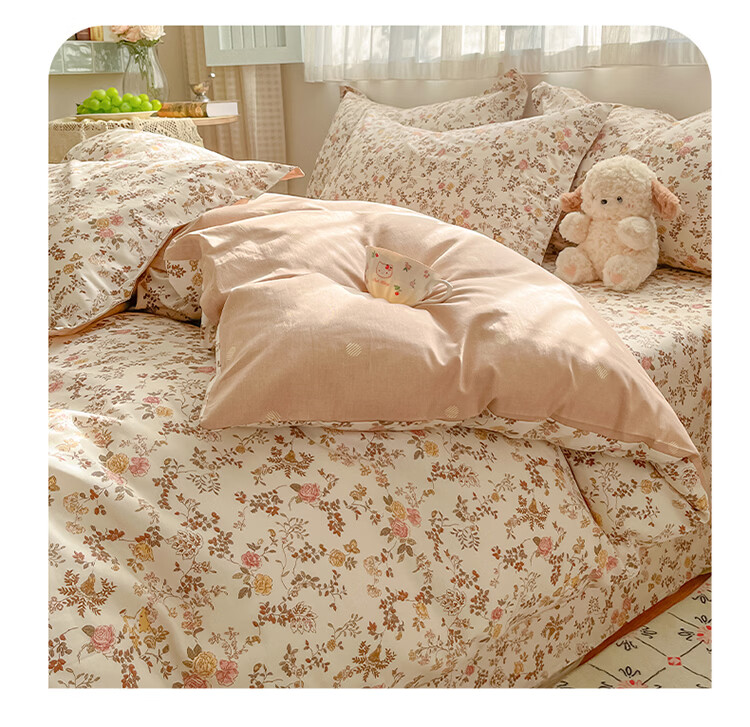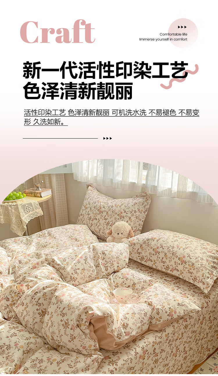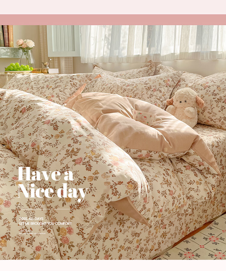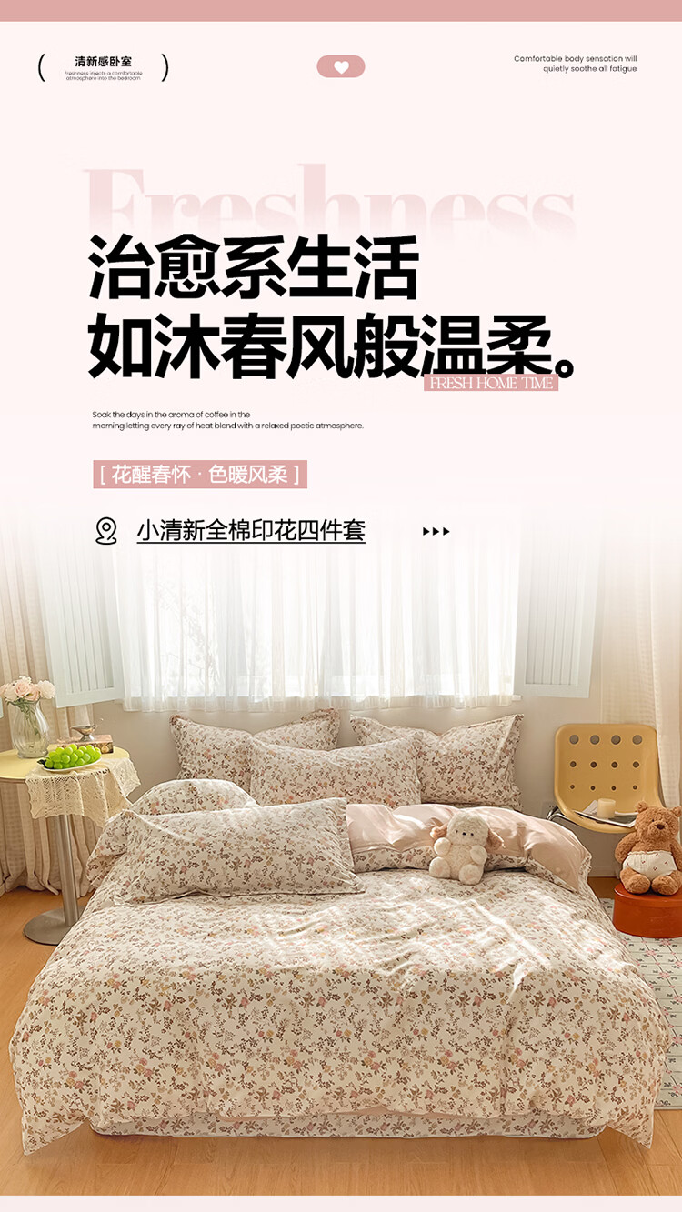 无印良品简约全棉床上四件套纯棉2026新款亲肤裸睡家用床单被套床品三件套 芜晴花紫【全棉面料 亲肤舒适】 1.8m 床单款 四件套-被套200x230cm