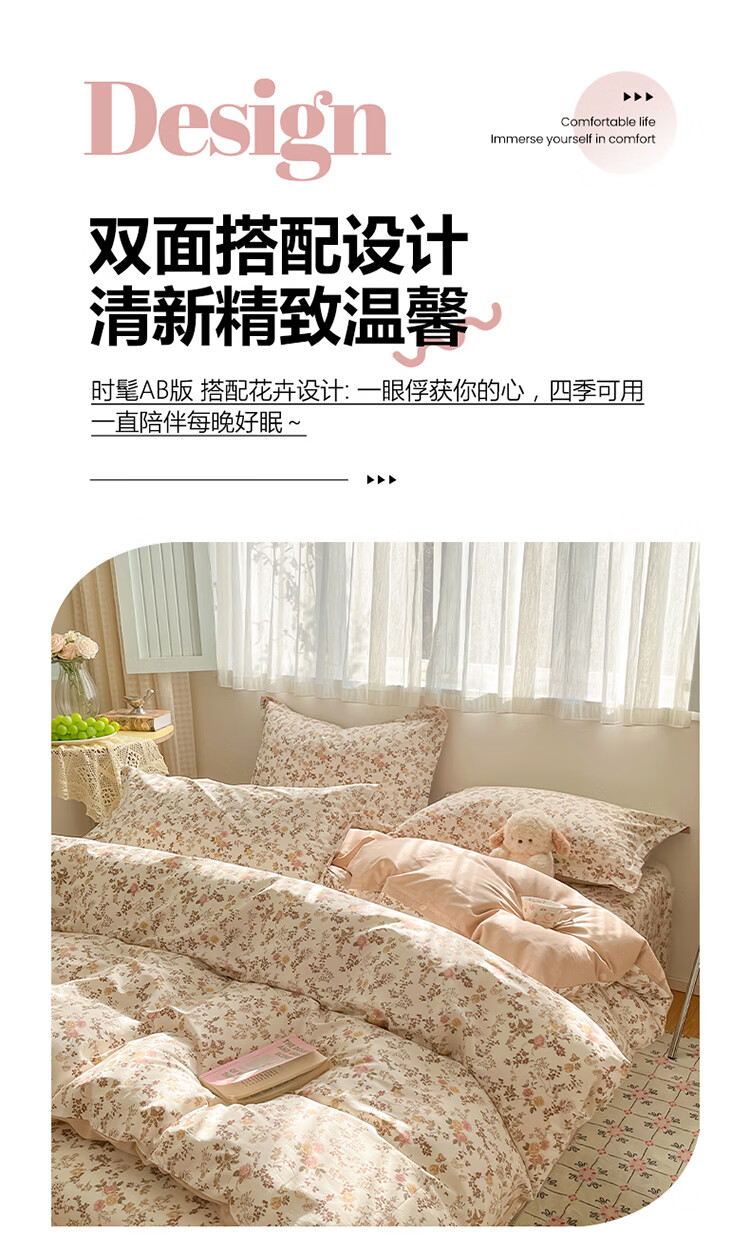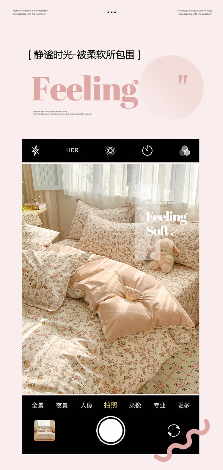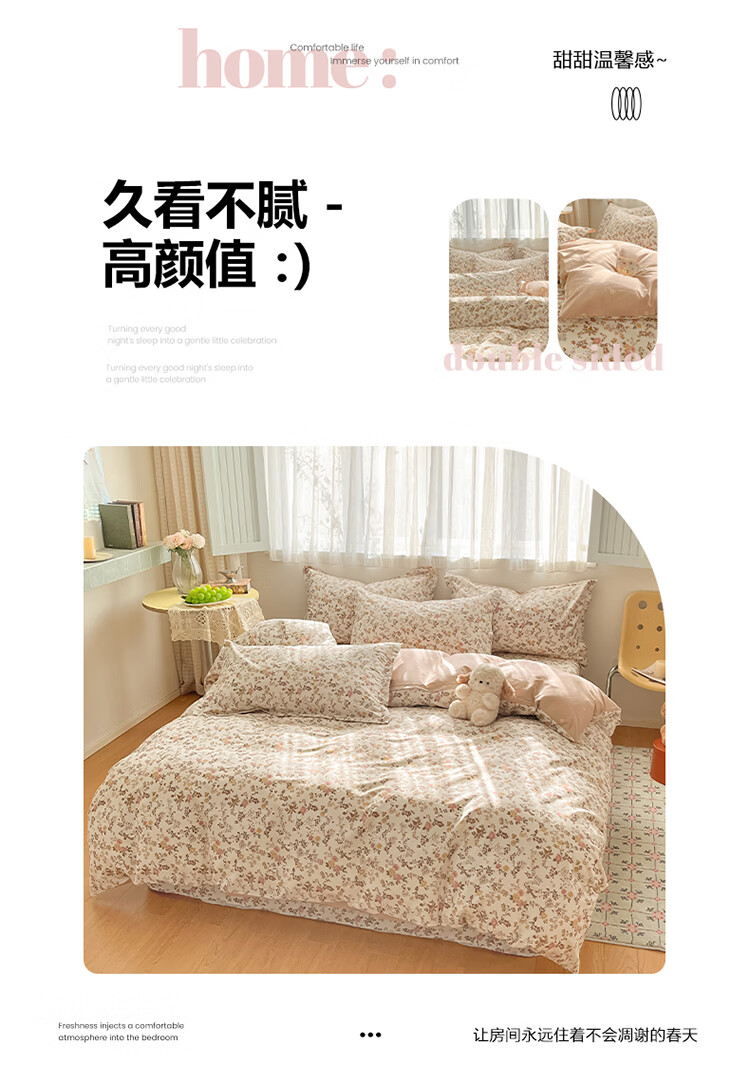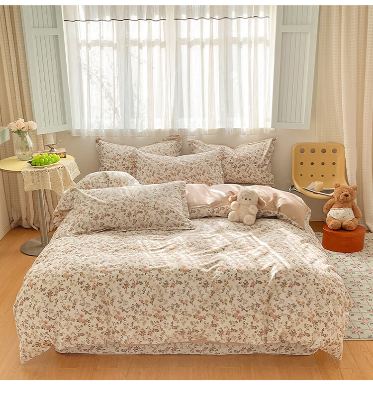 无印良品简约全棉床上四件套纯棉2026新款亲肤裸睡家用床单被套床品三件套 芜晴花紫【全棉面料 亲肤舒适】 1.8m 床单款 四件套-被套200x230cm