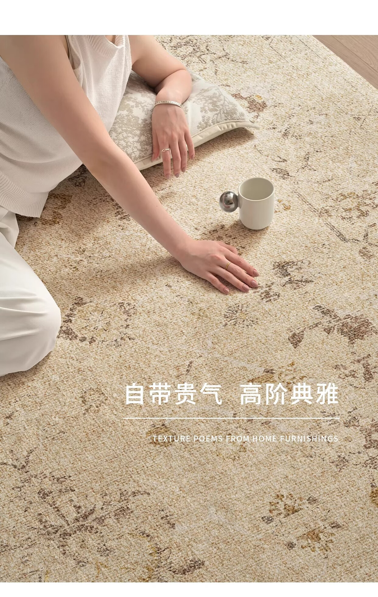 像素地毯客厅2026新款中古风沙发茶几地垫法式复古免洗可擦卧室床边毯 花吟-21558【80%客户的选择】 160cm*230cm【安全环保 家人放心】