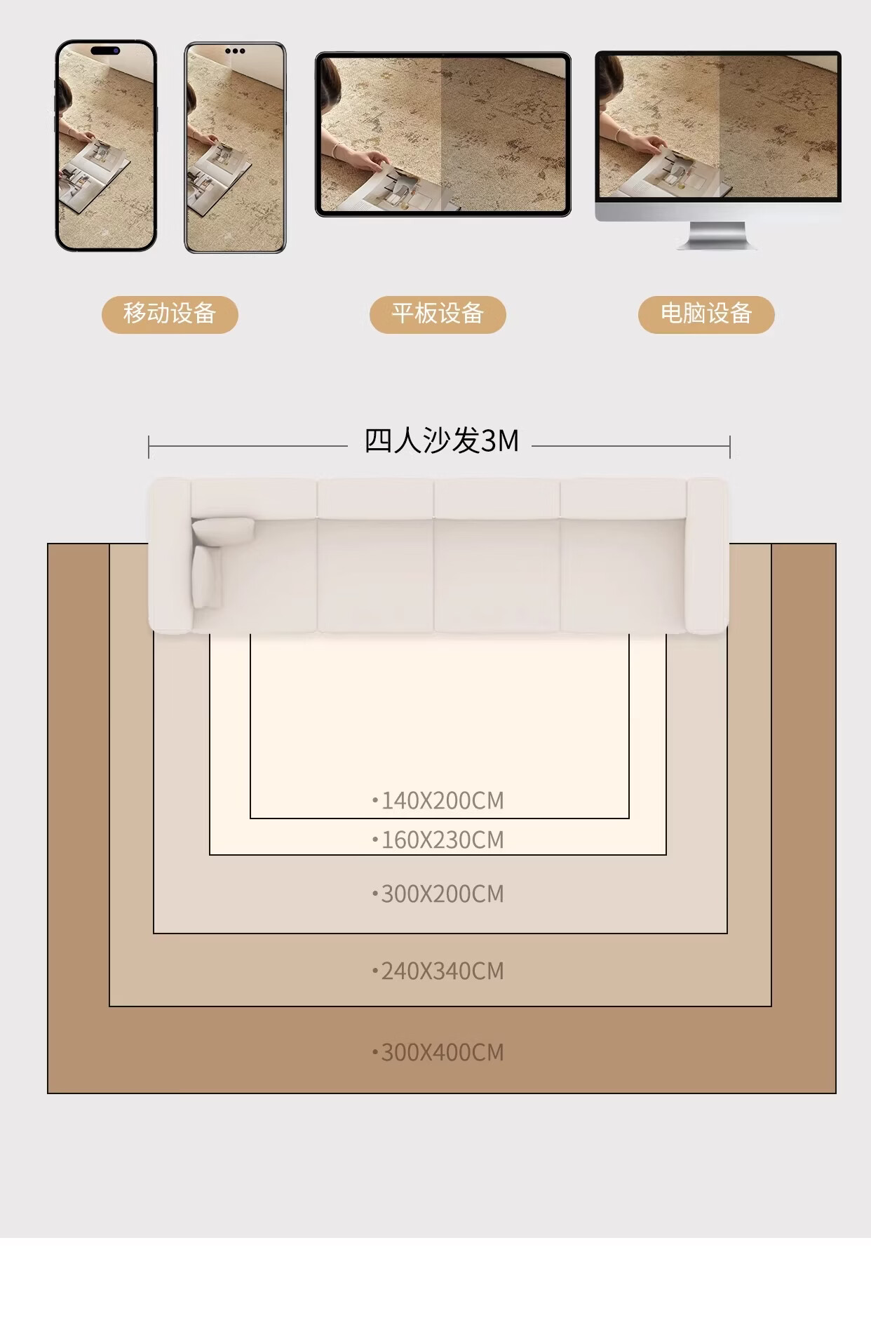 Y U-LIVE地毯客厅中古风2026新款异形法式复古免洗可擦沙发卧室免打理 S仿羊绒-云漫山间异形 200*300CM 【客厅优选尺寸】