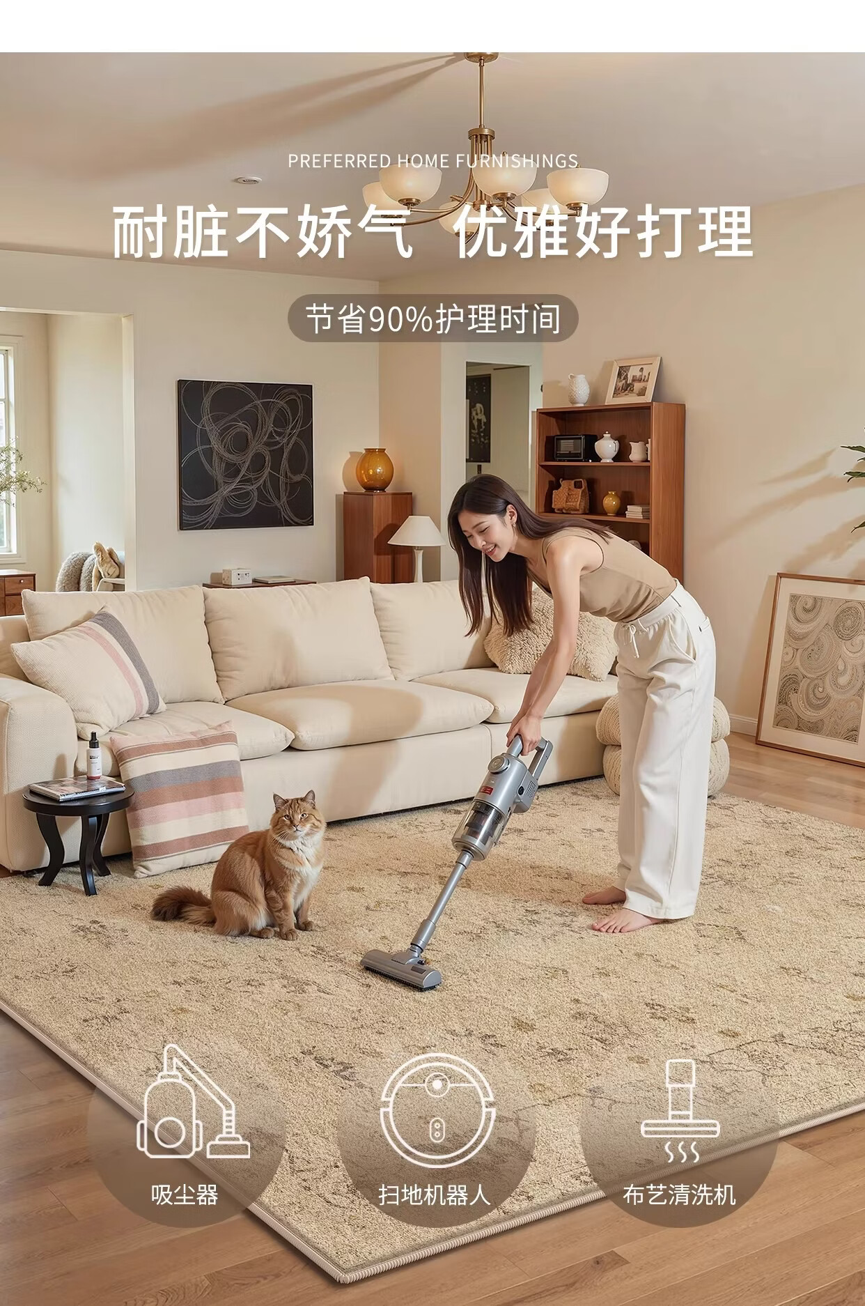 Y U-LIVE地毯客厅侘寂风2026新款轻奢高级全铺大面积免洗可擦沙发卧室 S仿羊绒-逐浪 200*300CM【客厅优选尺寸】