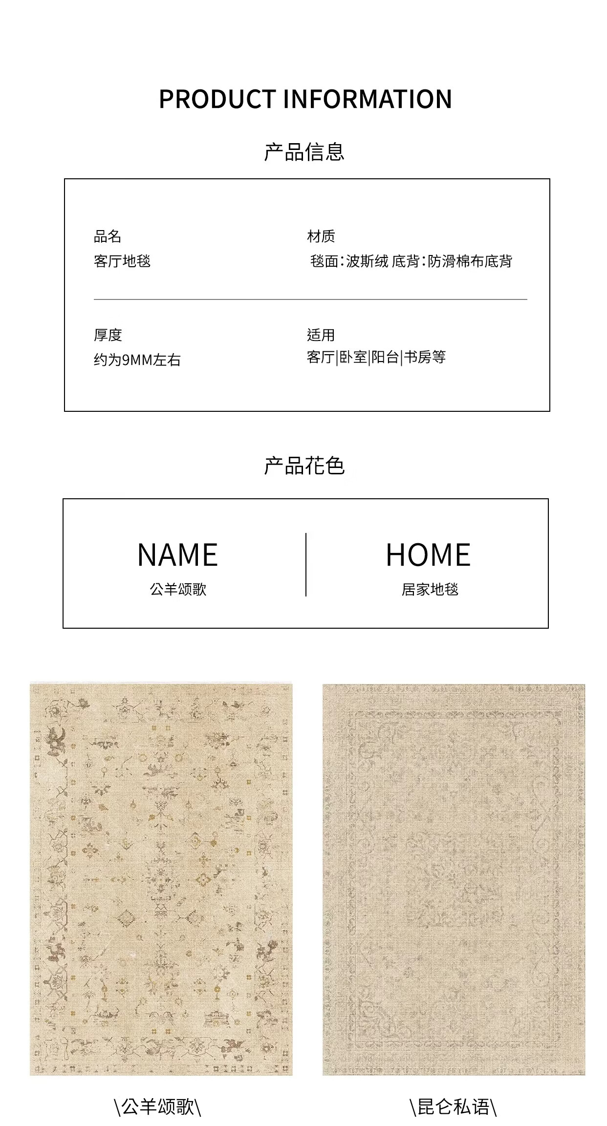 Y U-LIVE中古风地毯客厅2026新款美式波斯复古高级感沙发免洗可擦卧室 S仿羊绒-公羊颂歌 定制请联系客服【享优惠】