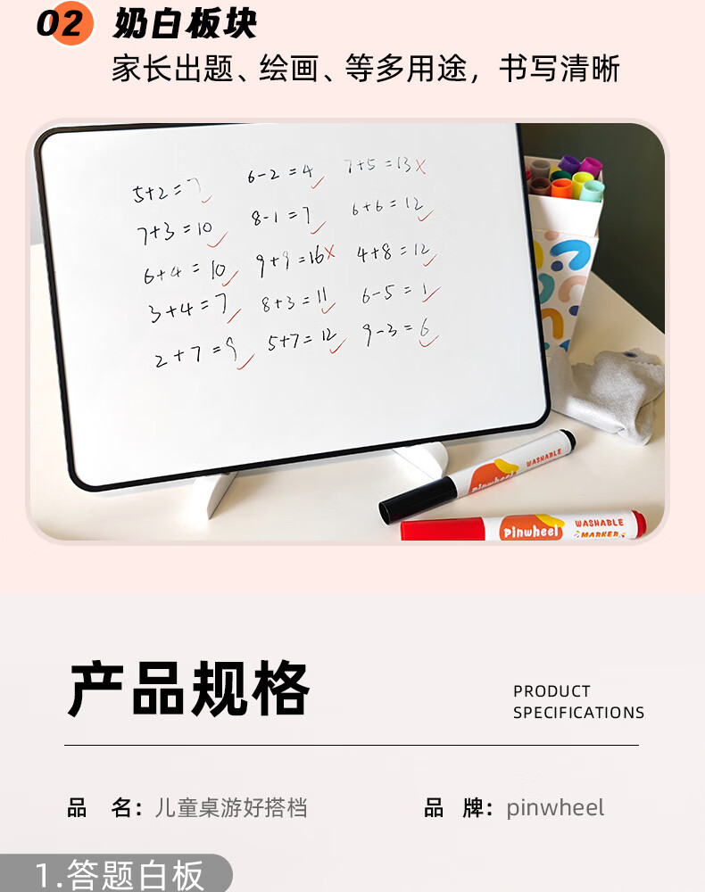 Pinwheel磁吸小白板绘画工具儿童家用迷你备忘录记事本 白板+支架畅玩套装