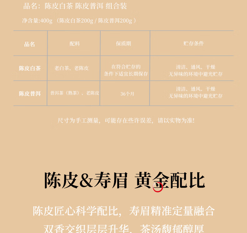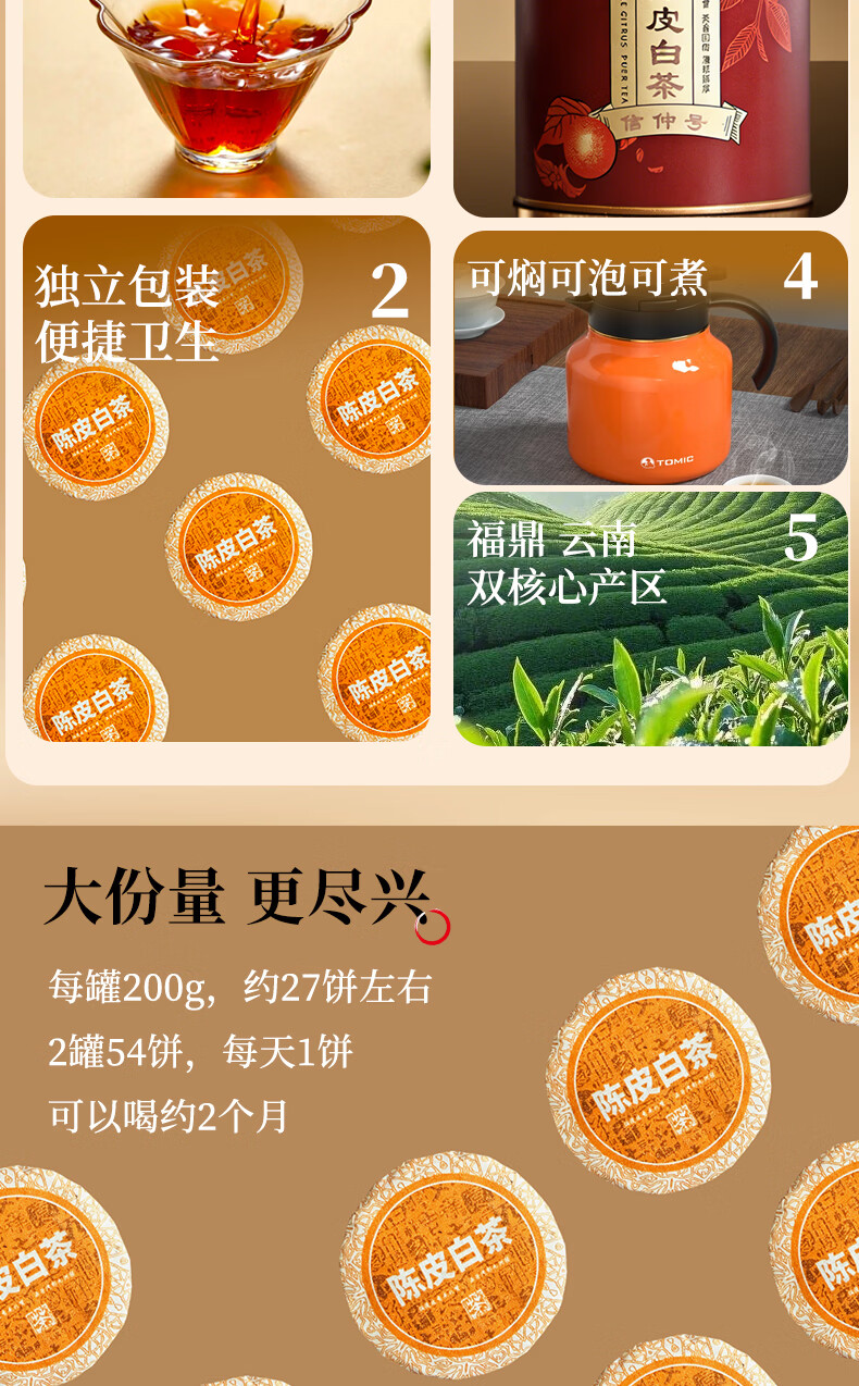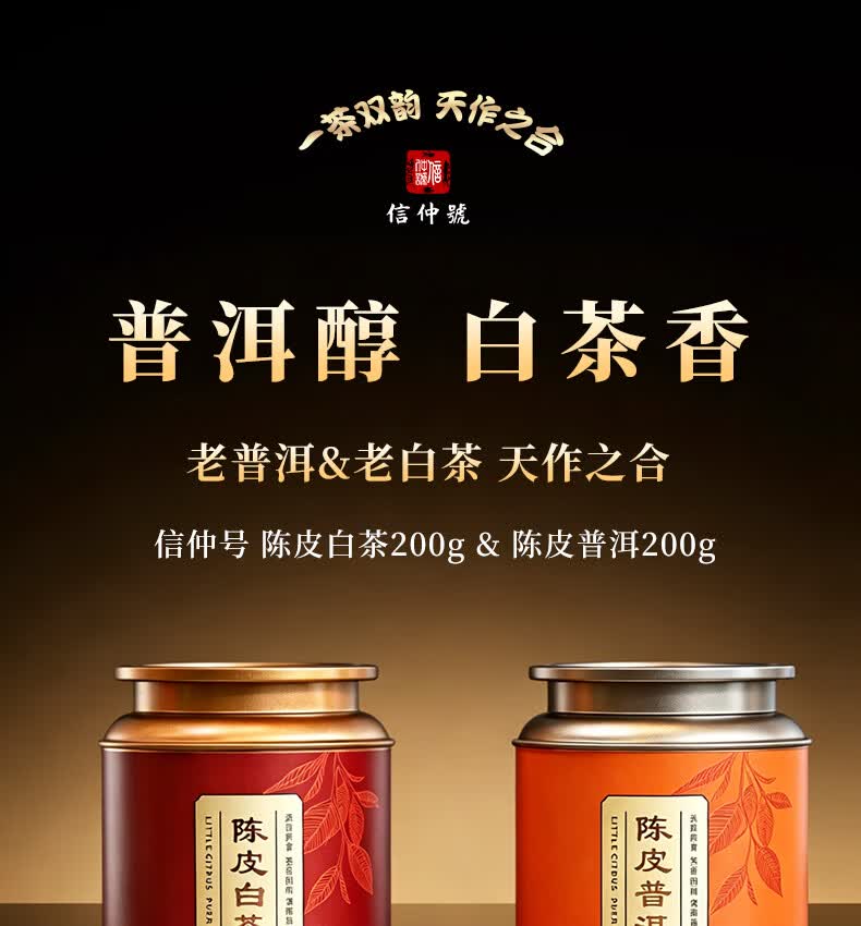 信仲号陈皮普洱 陈皮白茶 云南勐海普洱福鼎老寿眉小圆饼便携装茶叶礼盒 陈皮白茶200g+陈皮普洱200g