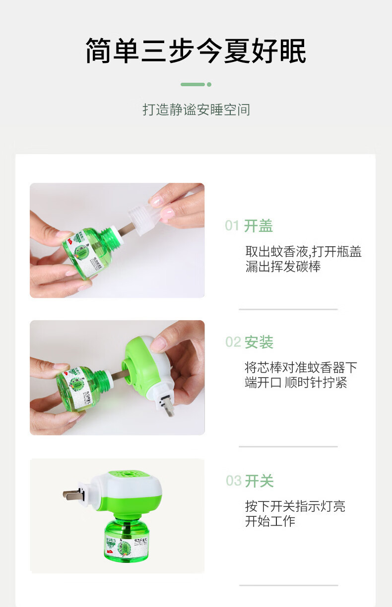 彩虹电热蚊香液驱蚊液(灭蚊液)无味电蚊香液家用加热器随机防蚊液 4瓶液+1器(180晚)