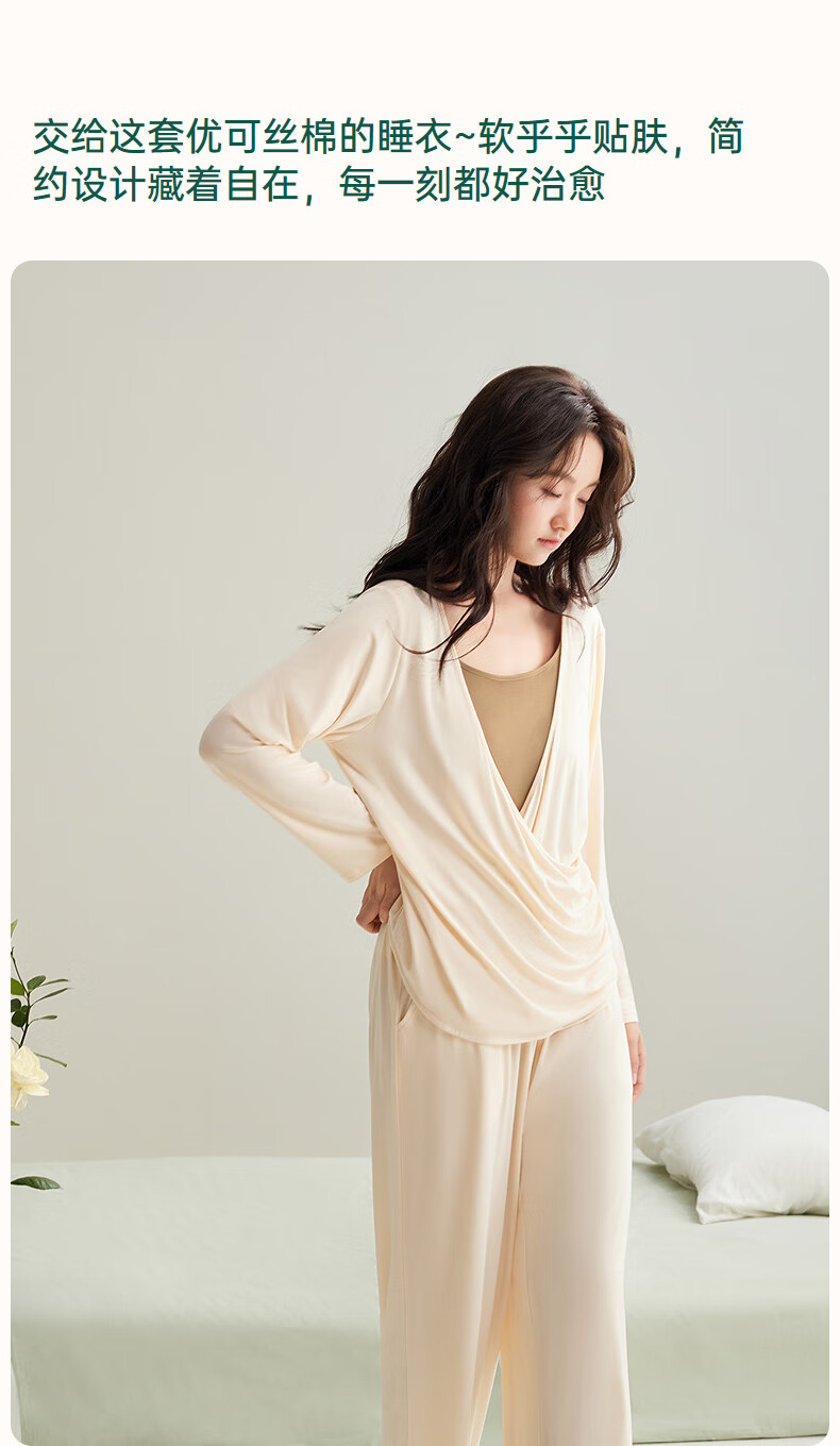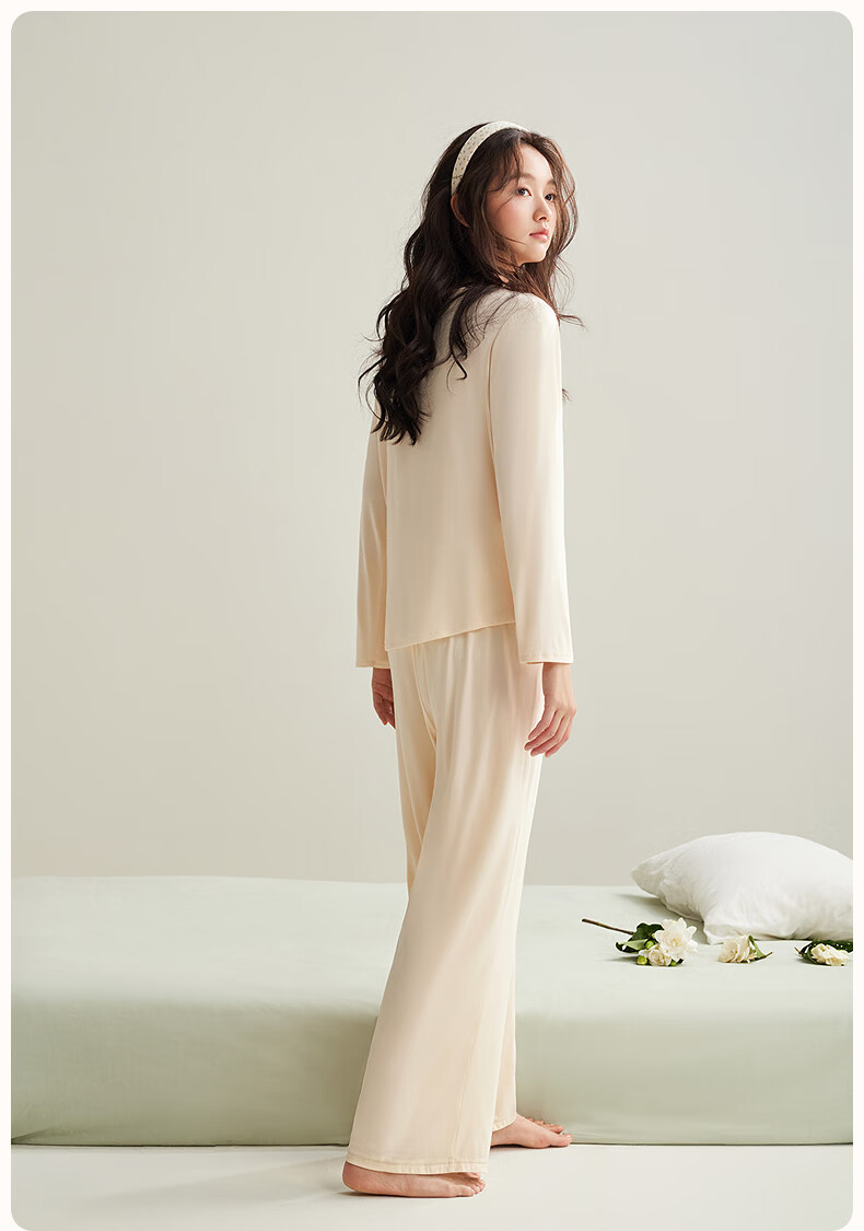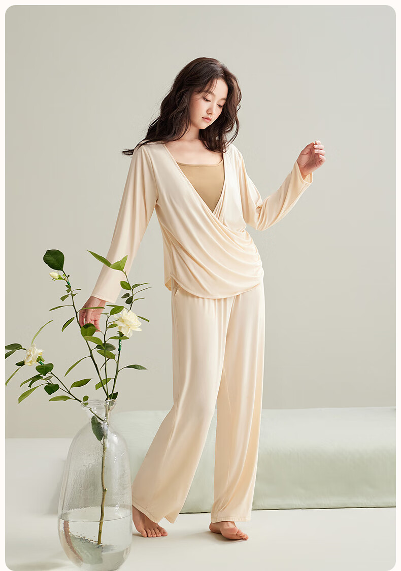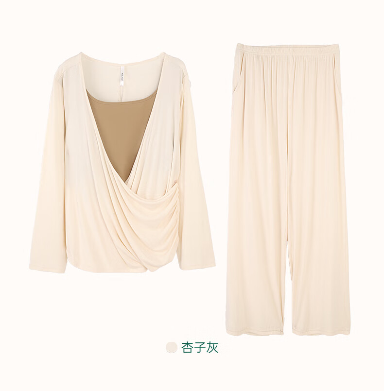安之伴【软绵绵】睡衣女款春秋季优可丝宽松大码带胸垫可外穿家居服套装 杏子灰【内置胸垫-柔软有弹性】 S