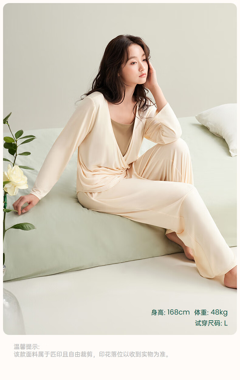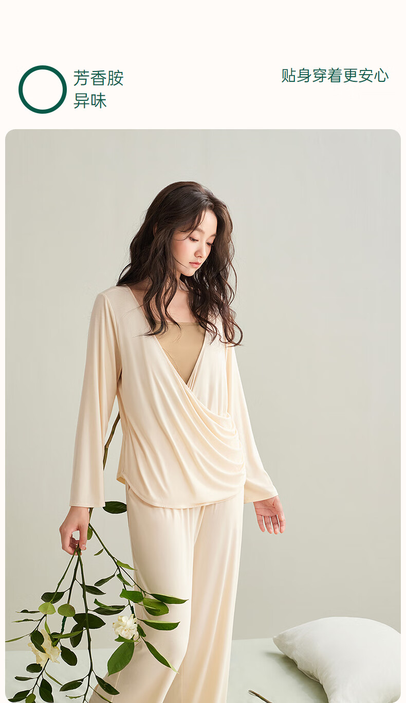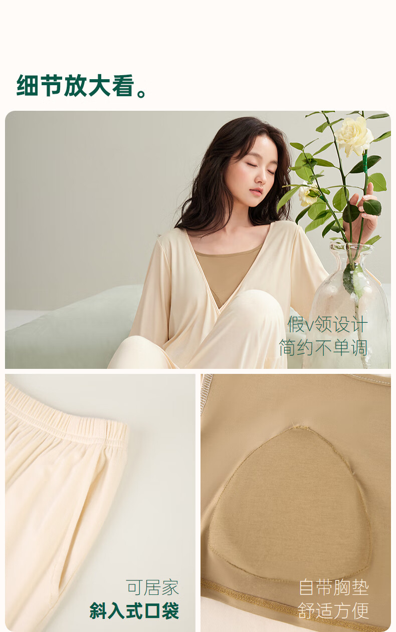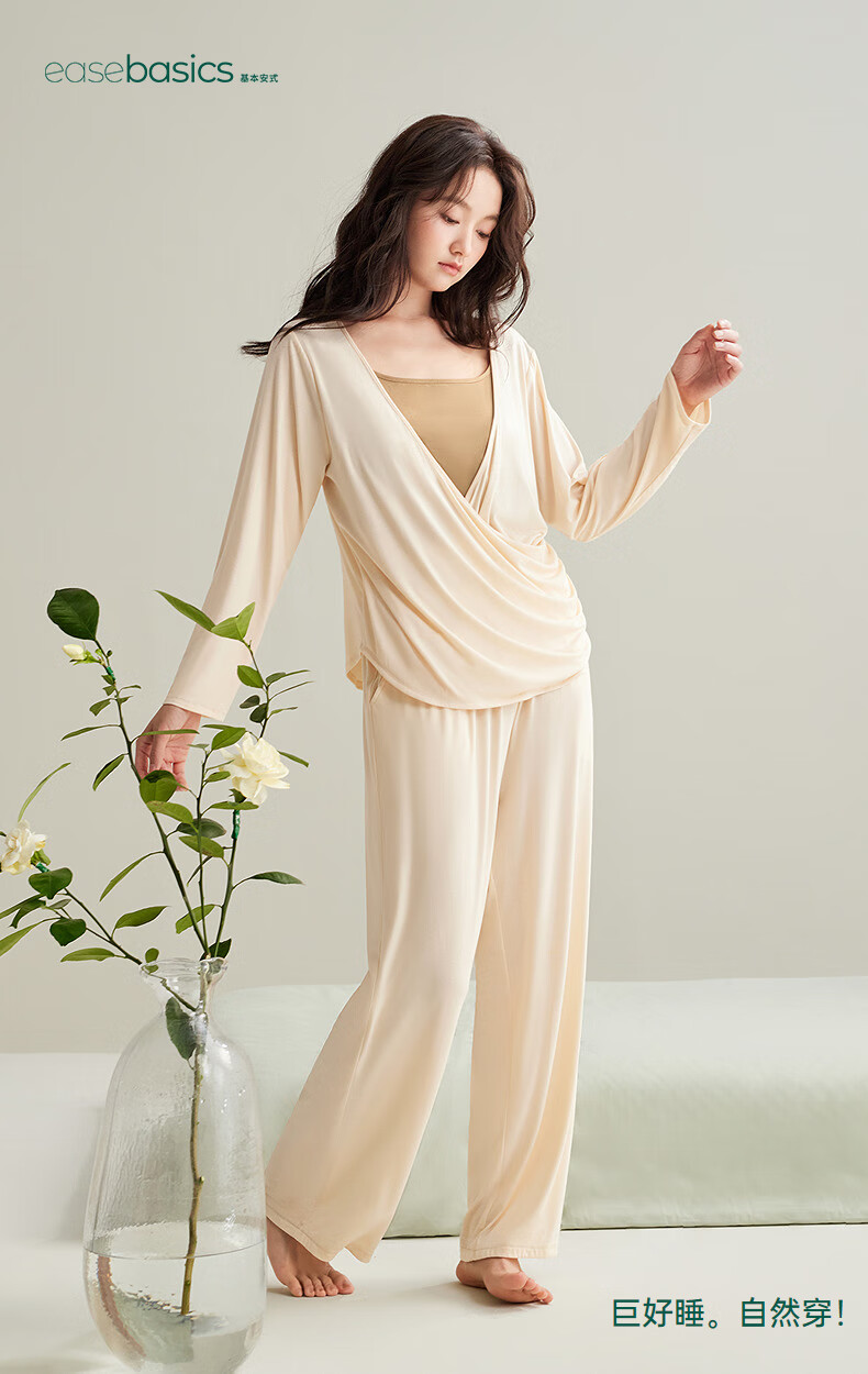 安之伴【软绵绵】睡衣女款春秋季优可丝宽松大码带胸垫可外穿家居服套装 杏子灰【内置胸垫-柔软有弹性】 S