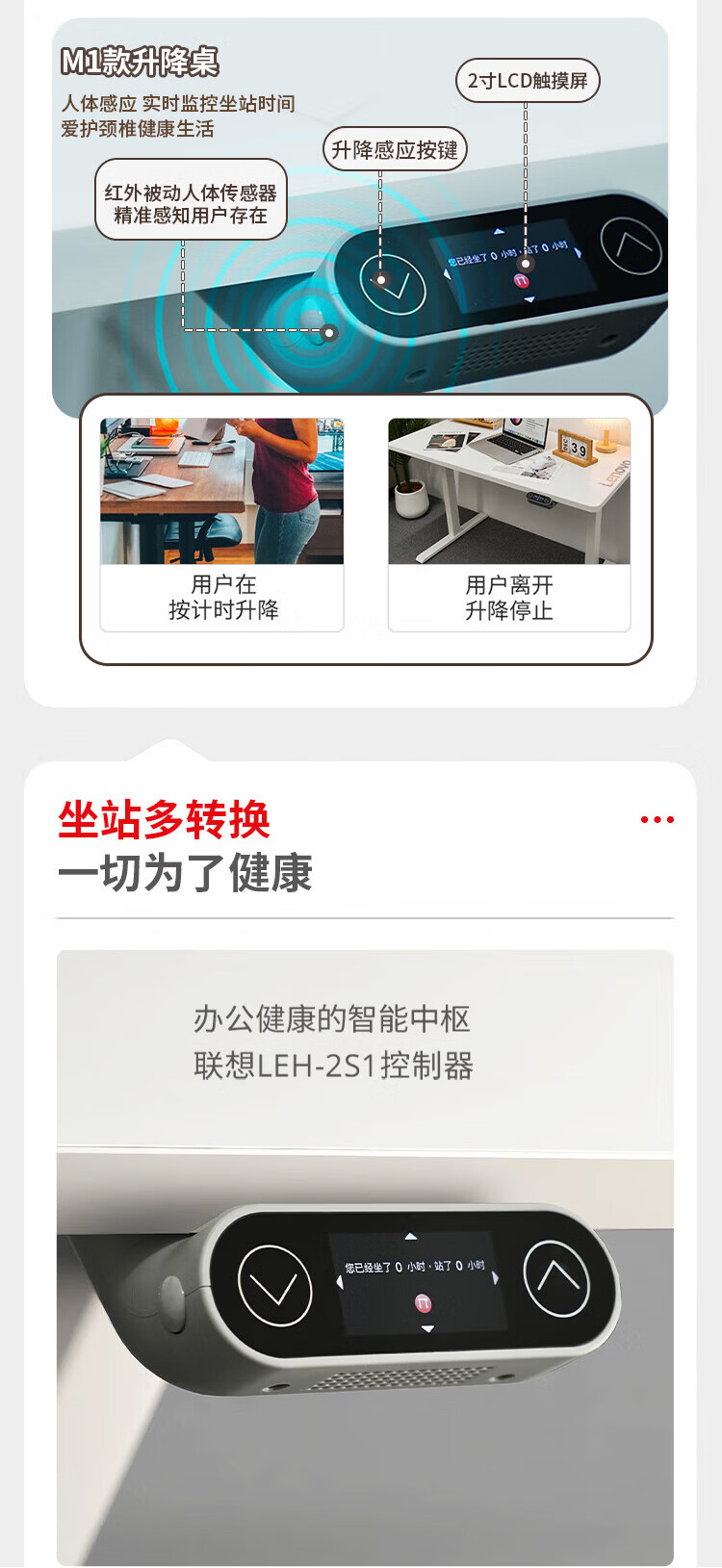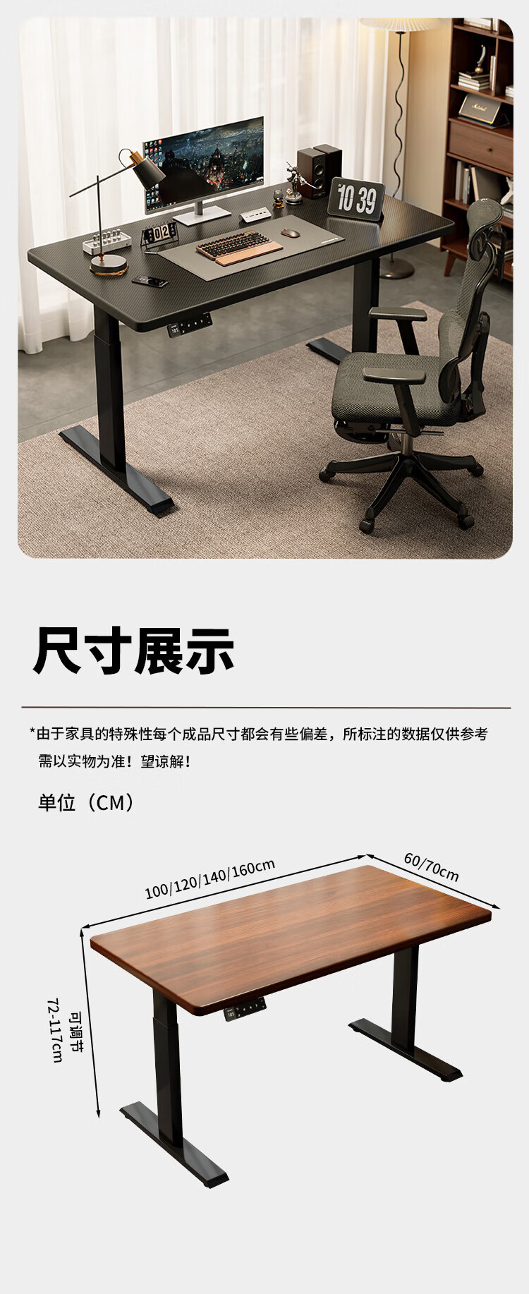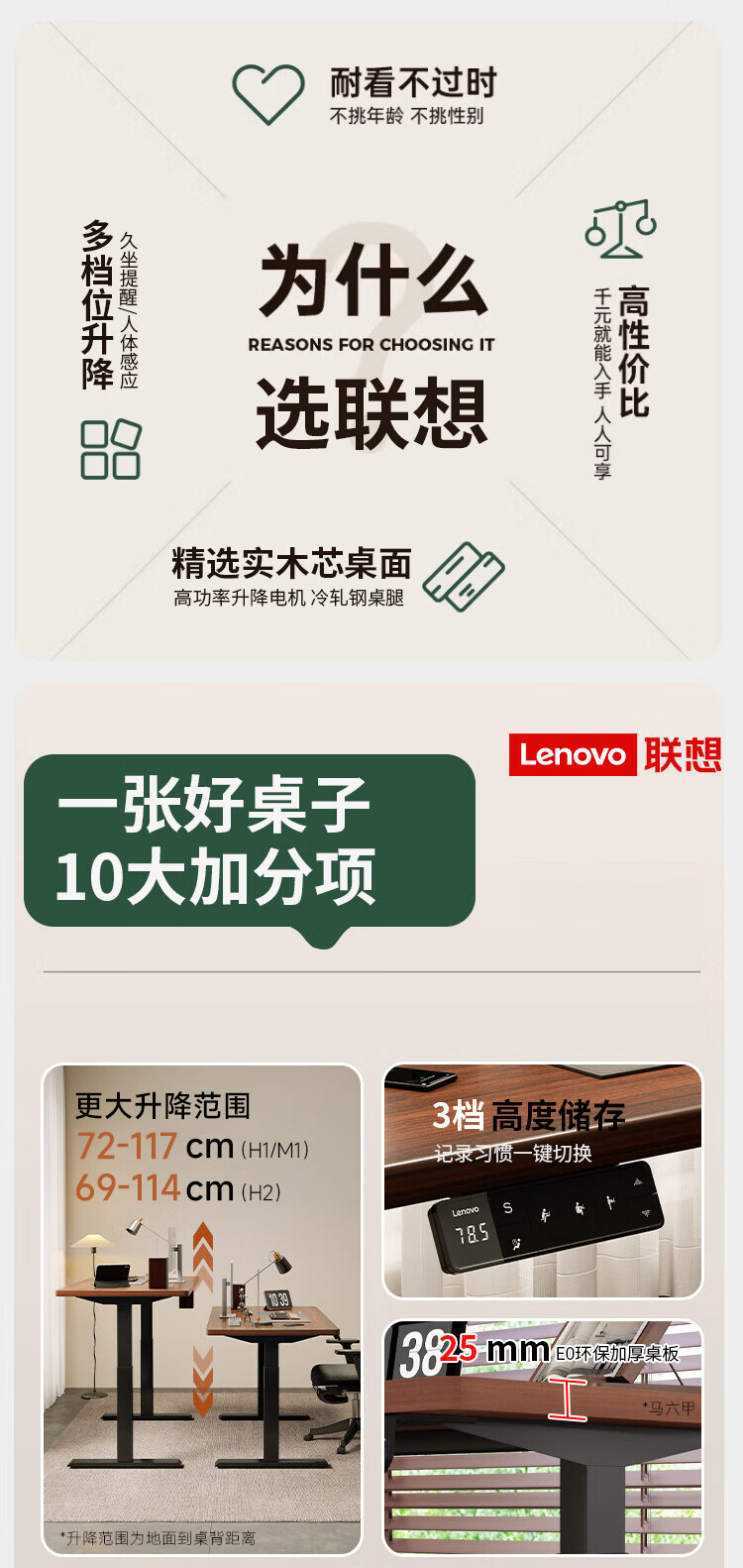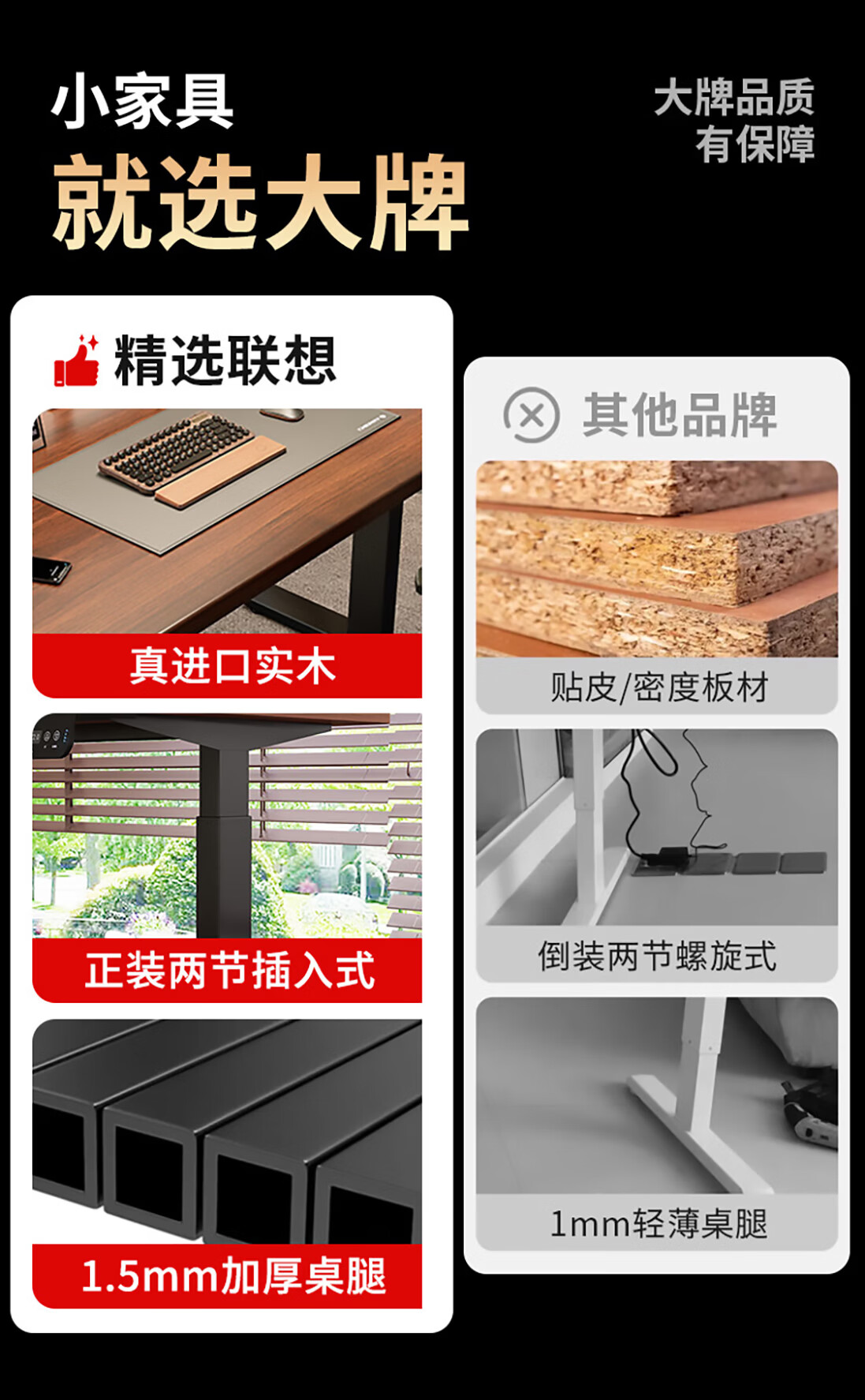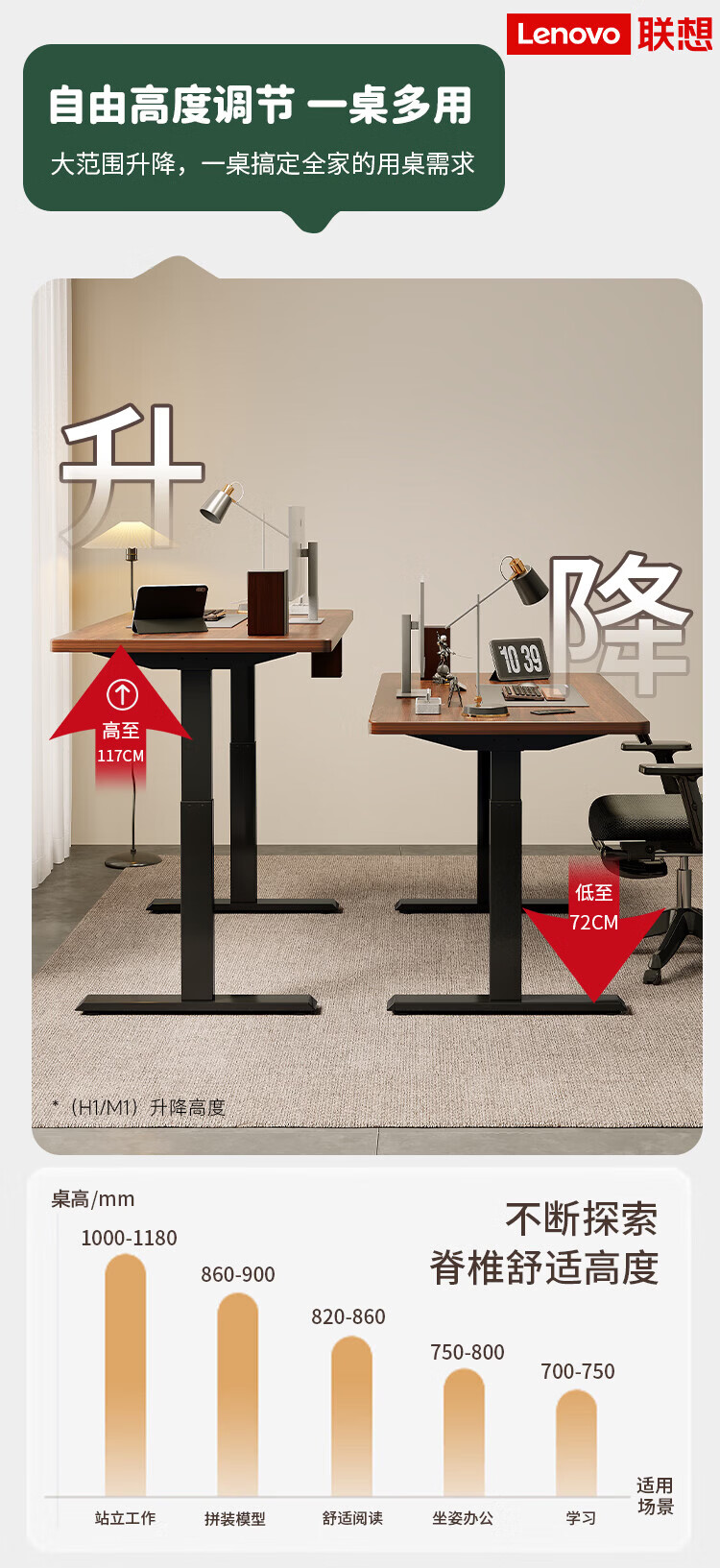 联想电动智能升降桌实木芯电脑桌站立办公家用学习书桌办公工作台桌子 【智能升降H2 承重120kg】双电机实木芯碳纤维黑-白架 160*70cm【25mm实木芯桌面 正装2节】