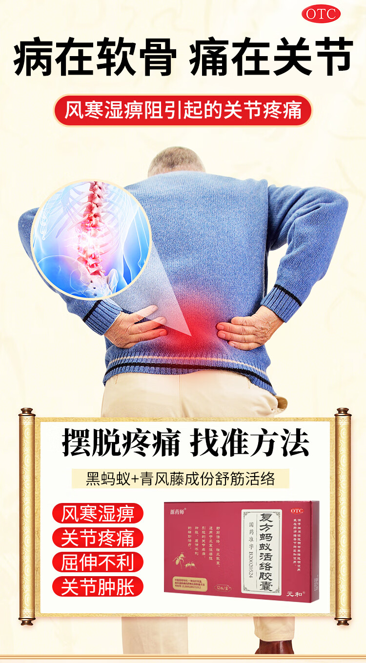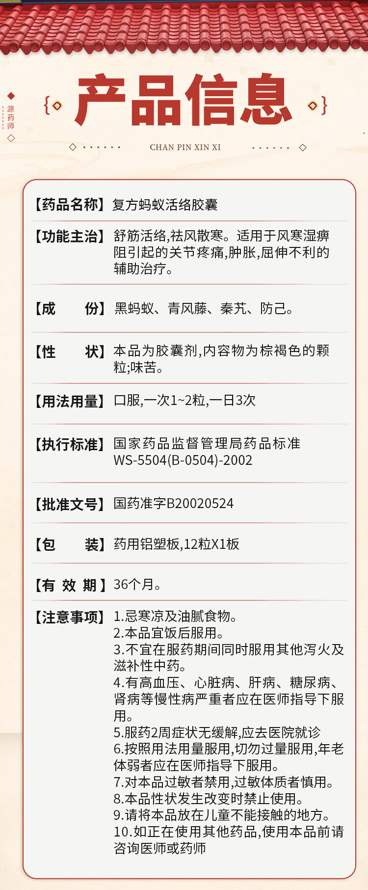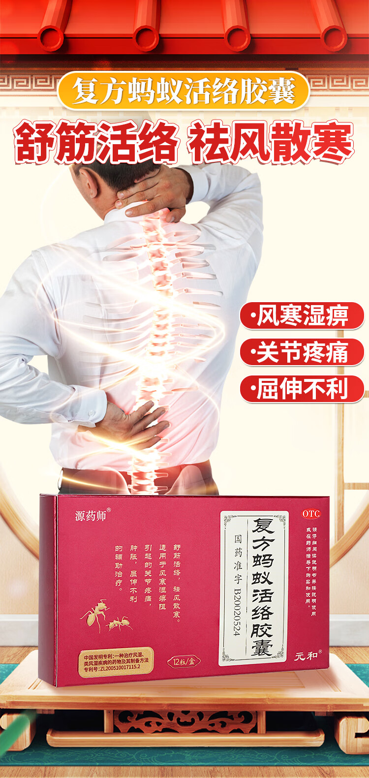 [源药师]复方蚂蚁活络胶囊 0.3g*12粒 3盒装 复方蚂蚁活络胶囊12粒舒筋活络风寒湿痹关节疼痛祛风散寒 风寒湿痹 风湿骨痛