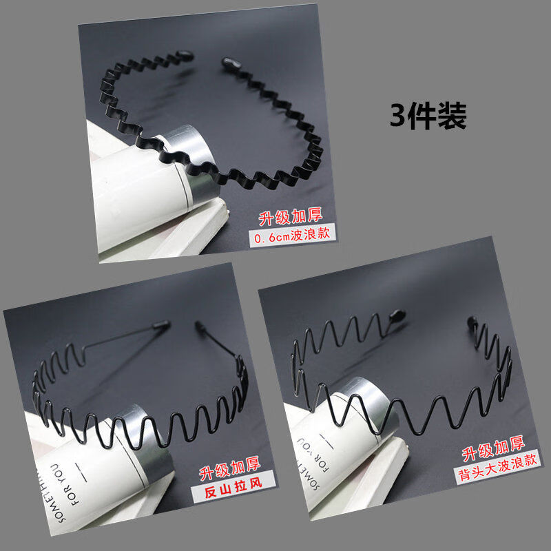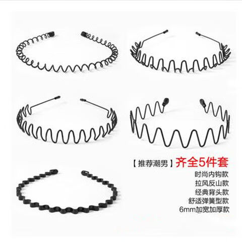 男士铁合金隐形发箍发饰潮男波浪款压发发卡女生大背头运动头箍 五件套主播推荐款