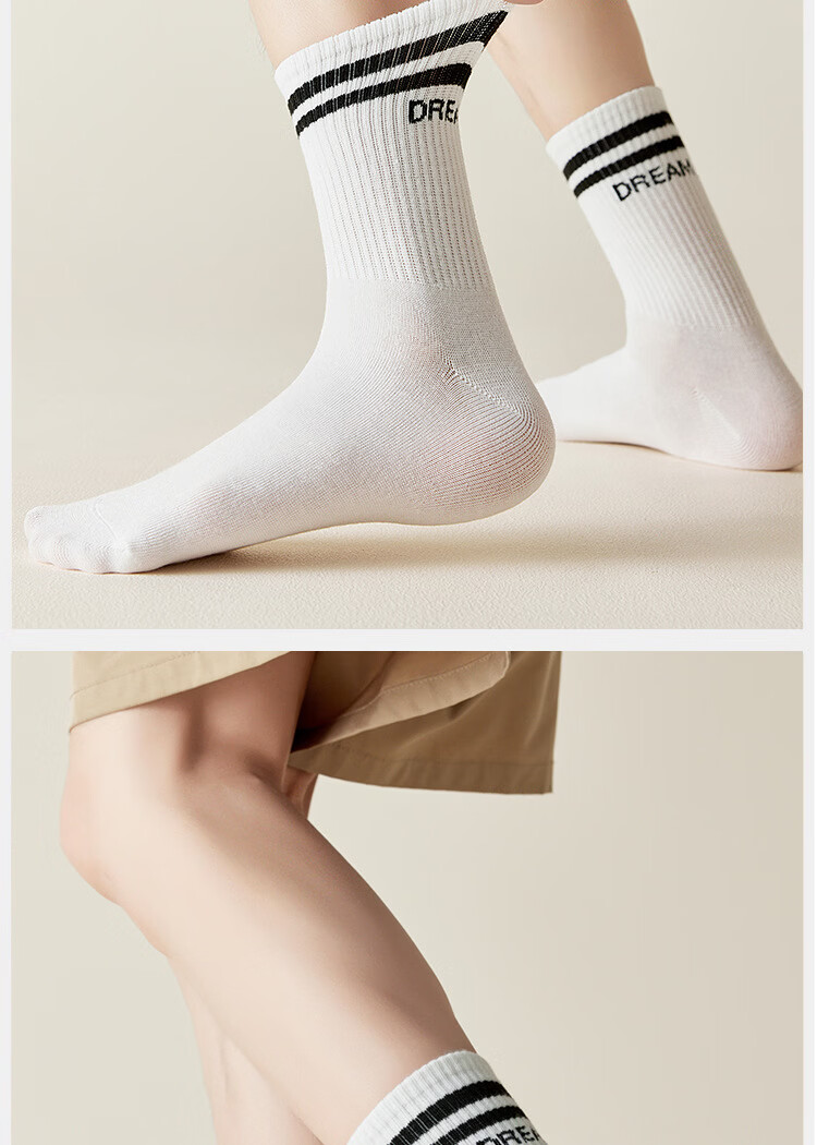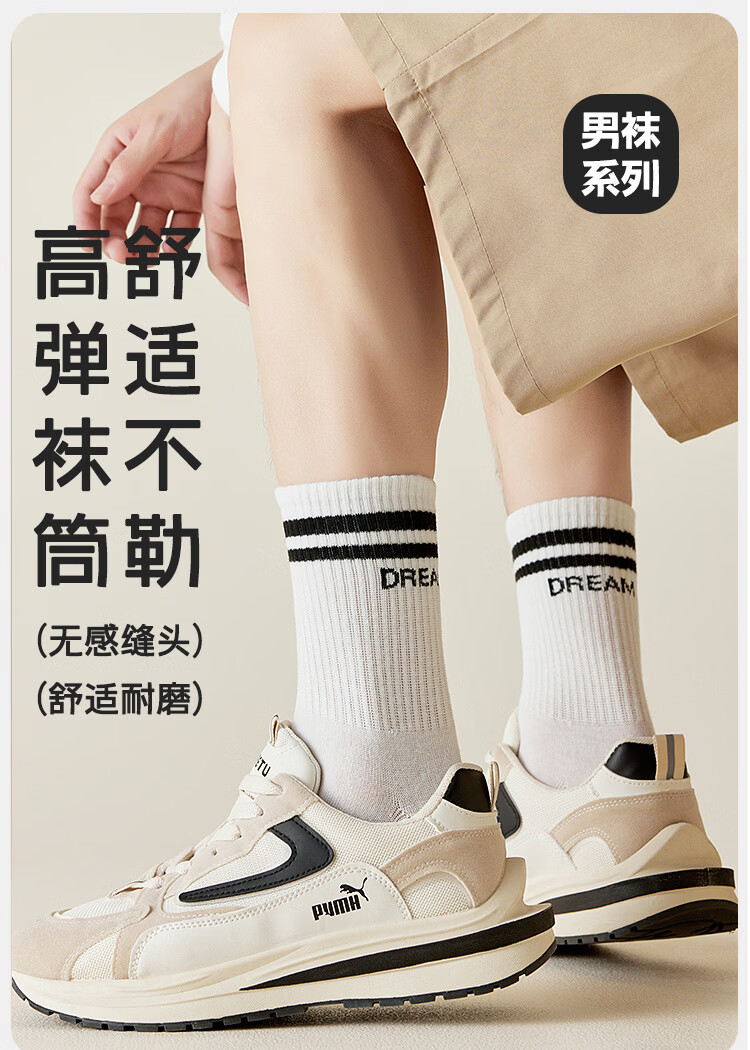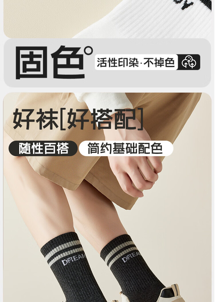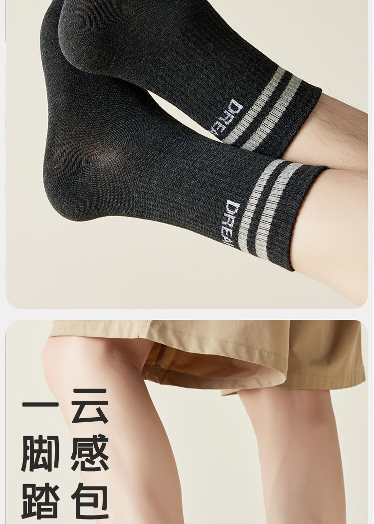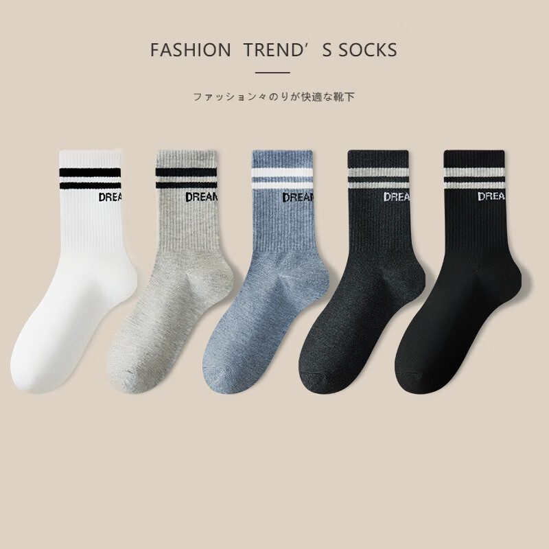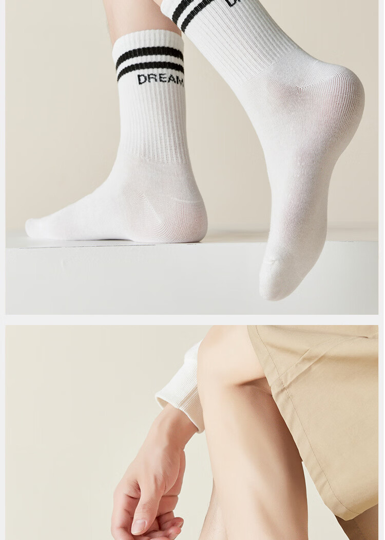 米大爷10双袜子男士春夏季中筒袜吸汗透气运动袜男款双杠潮流四季袜子 双杠潮流中筒男袜 10双 均码