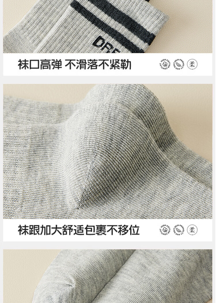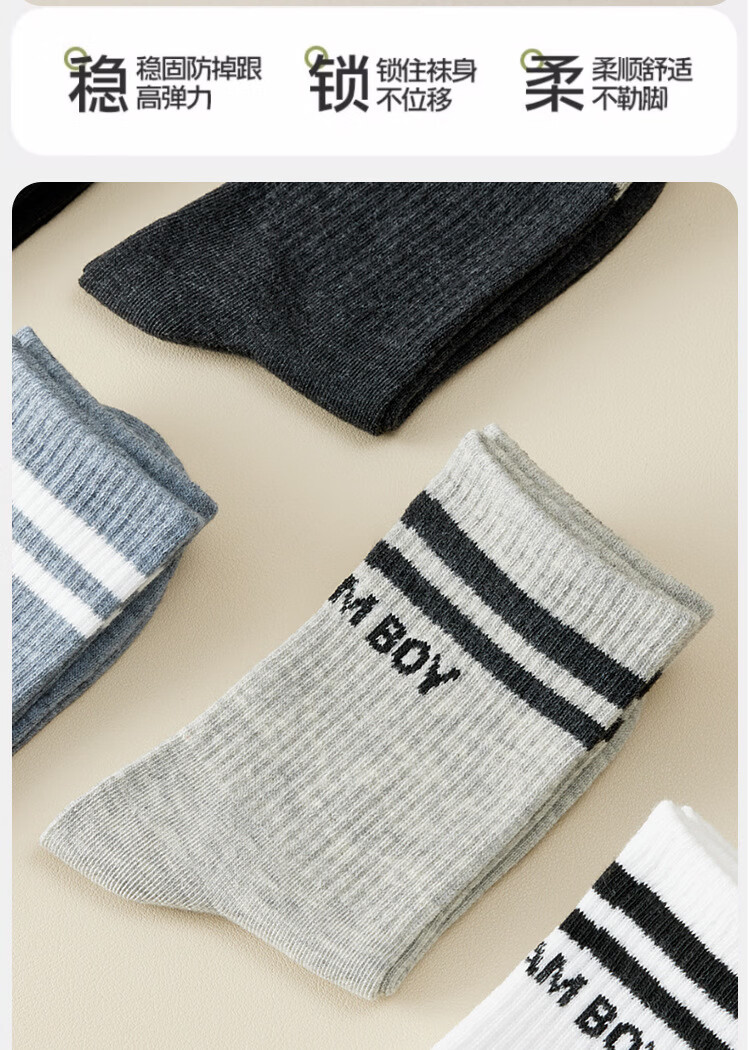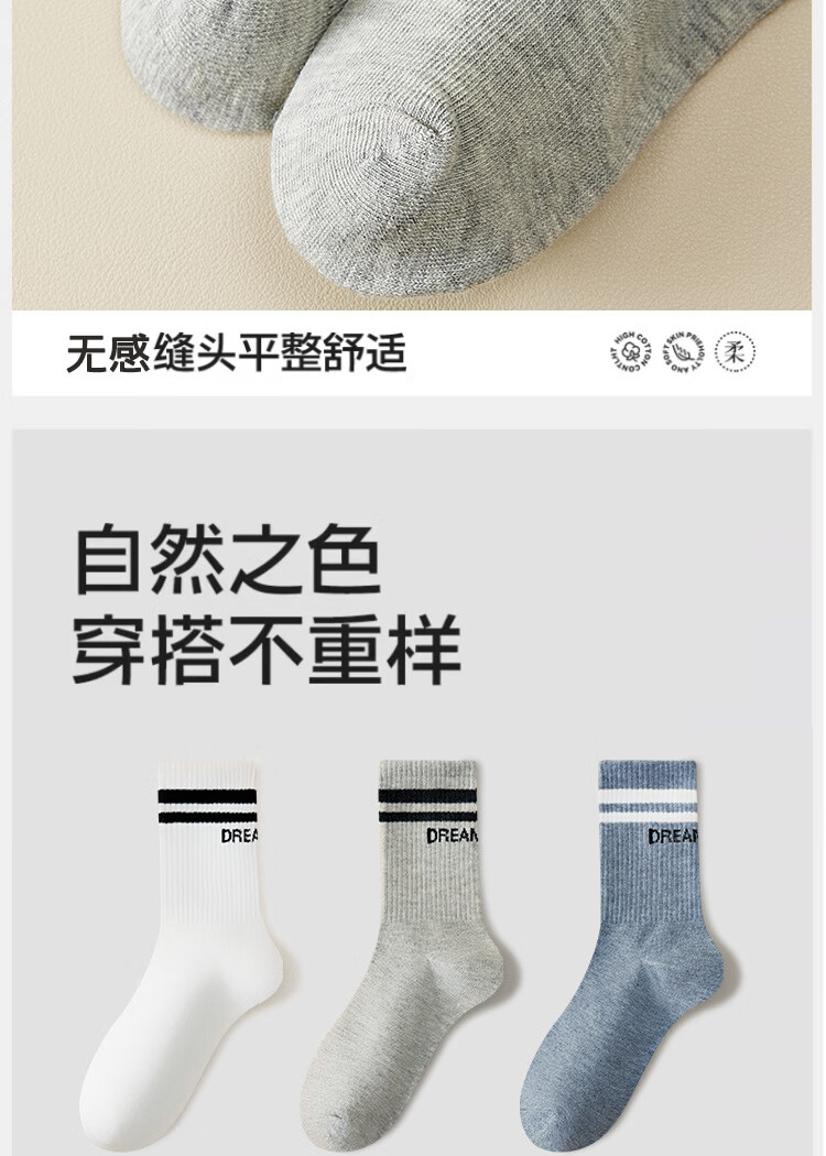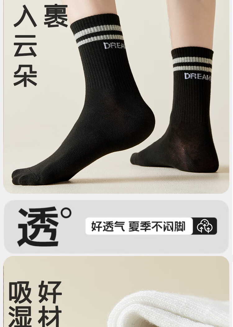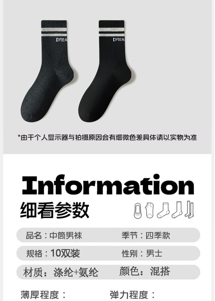 米大爷10双袜子男士春夏季中筒袜吸汗透气运动袜男款双杠潮流四季袜子 双杠潮流中筒男袜 10双 均码