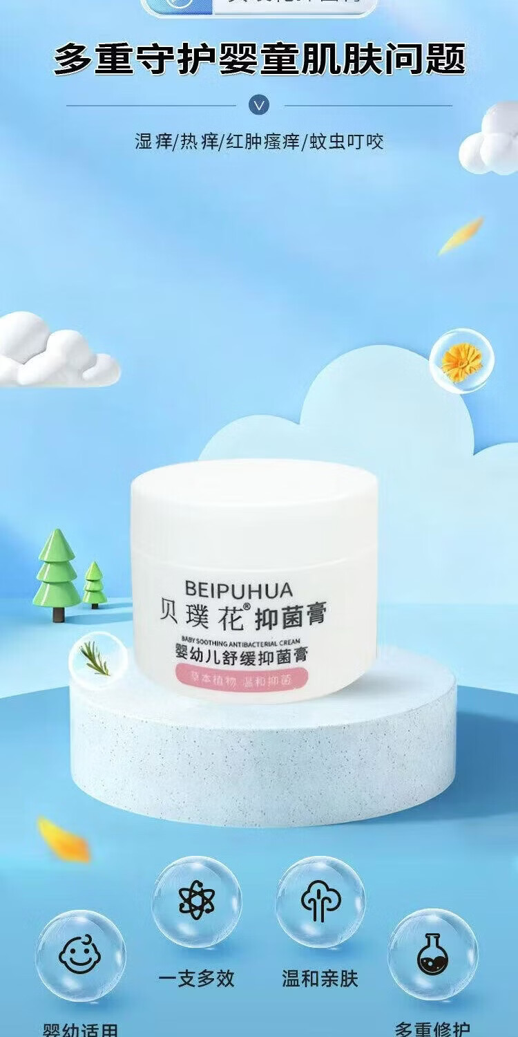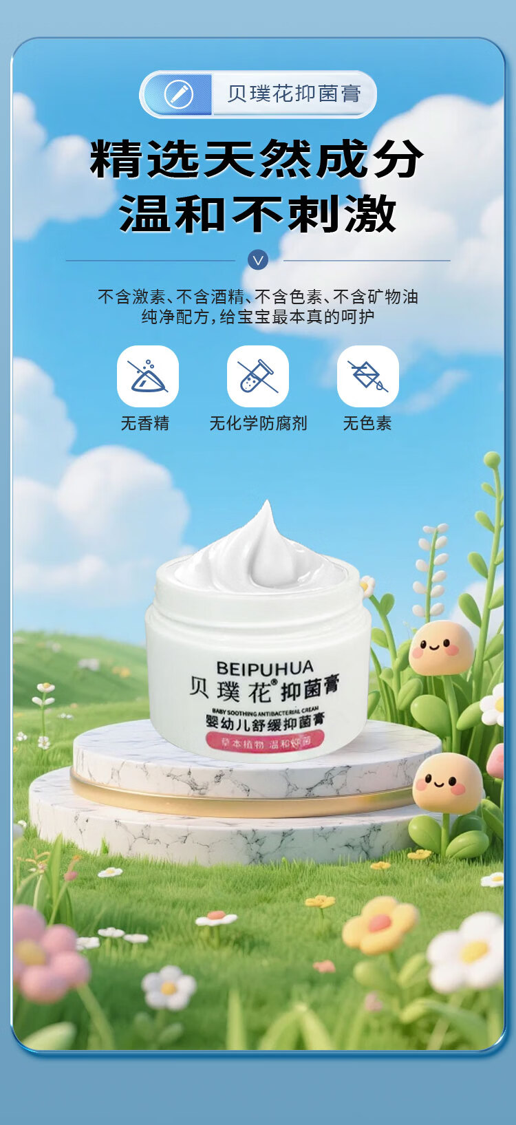 贝璞花抑菌膏婴亲霜老款抑菌霜草本婴儿湿痒专用奶藓红屁屁膏宝宝红痒霜 90g 3瓶 常规装 贝璞花抑菌膏