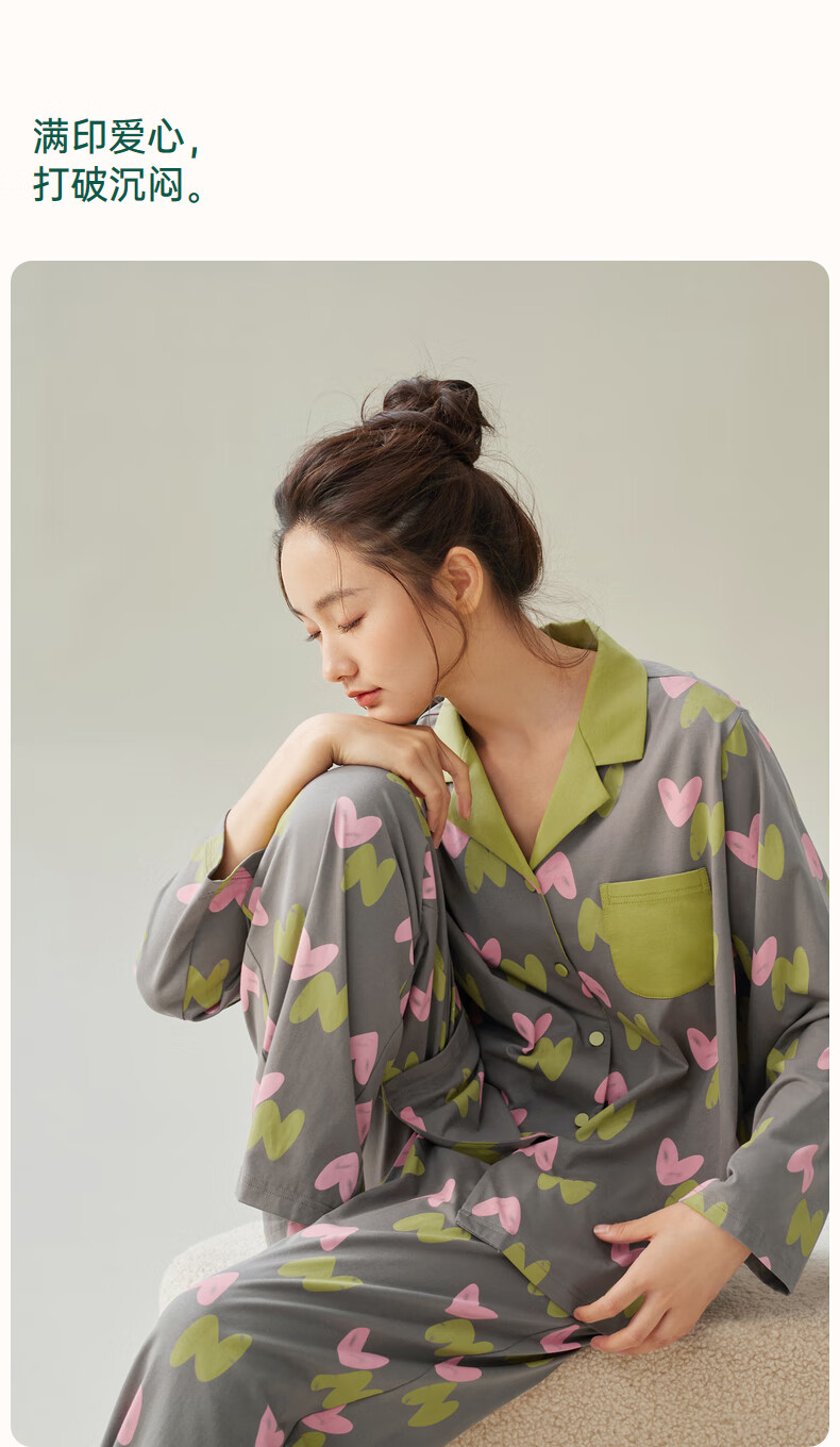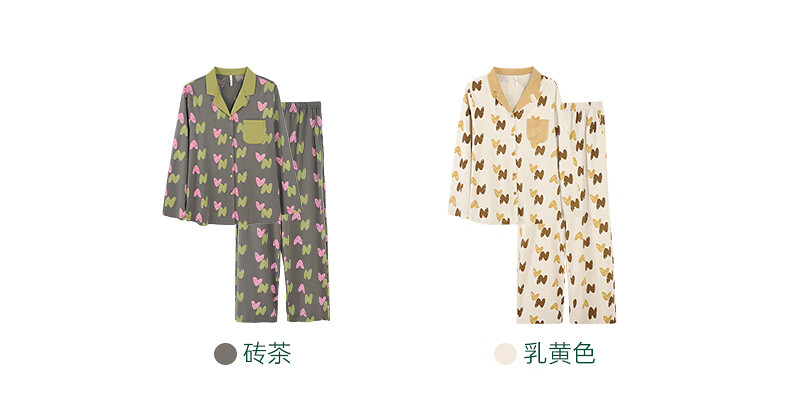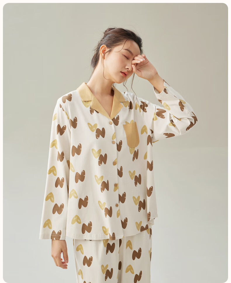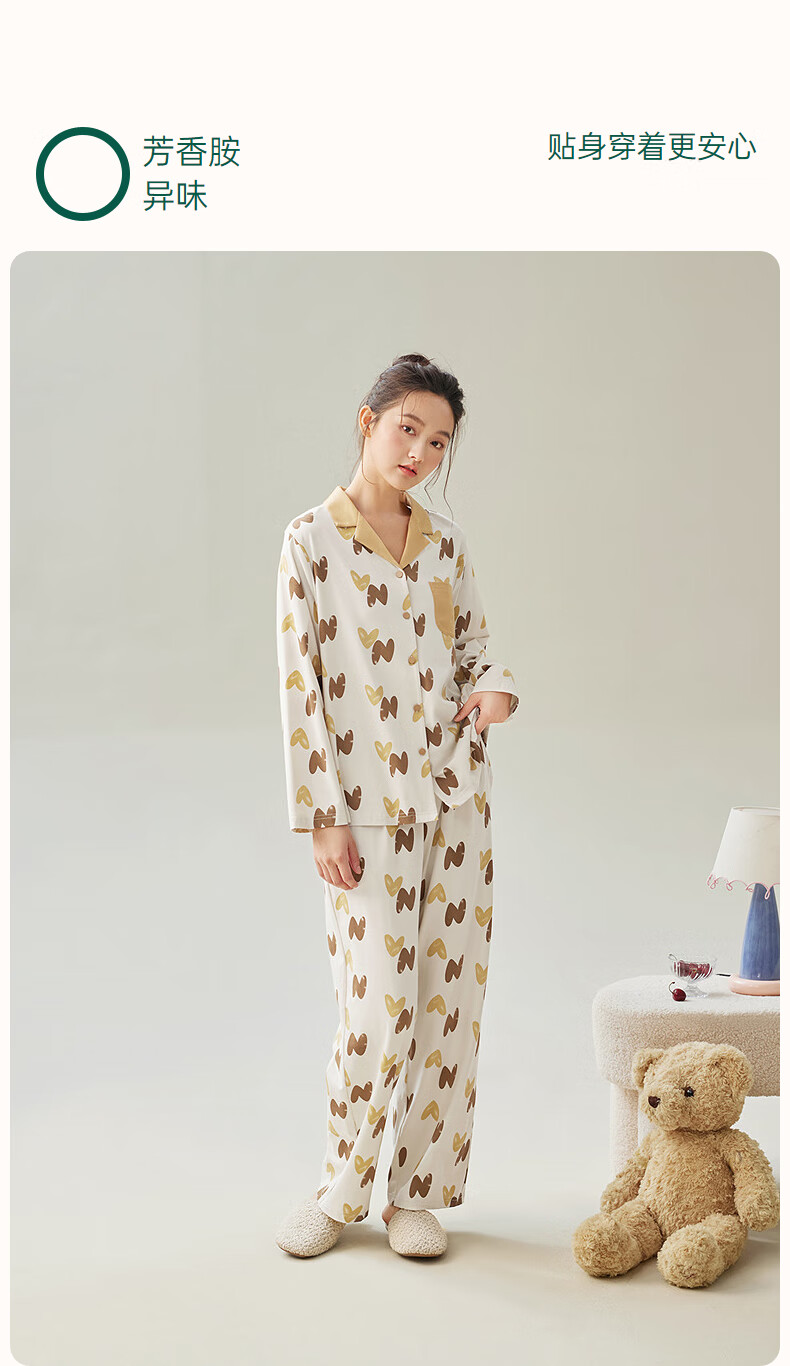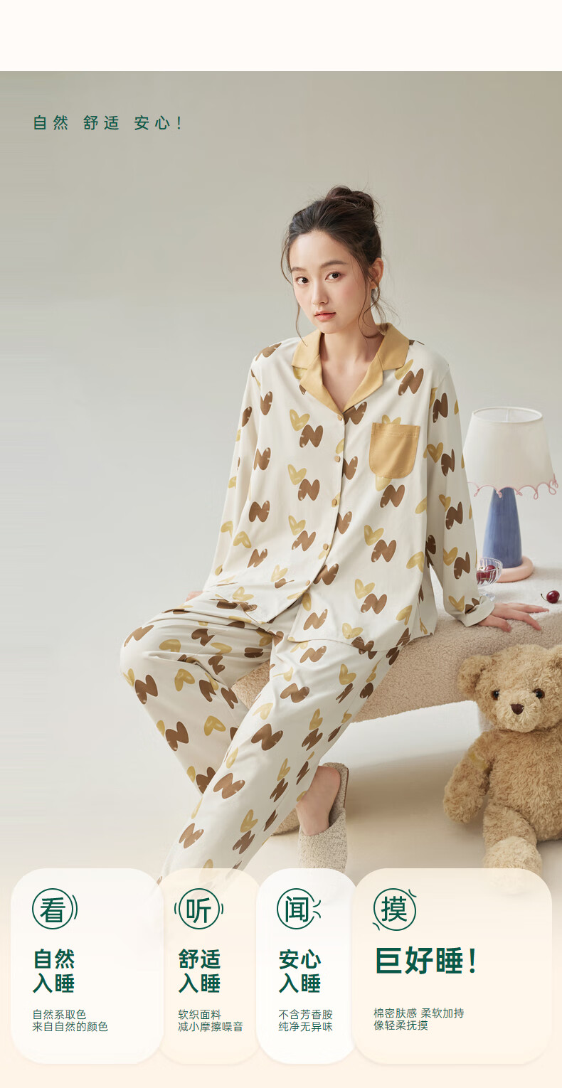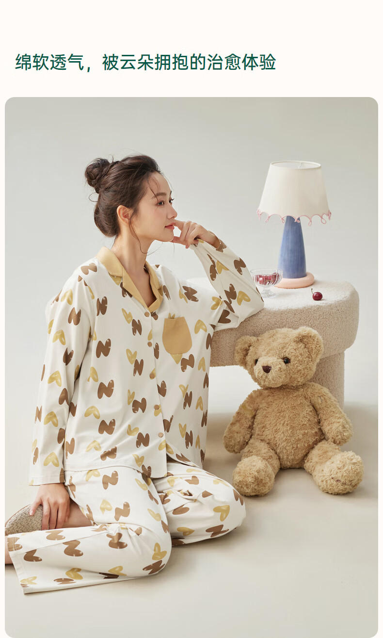 安之伴【软棉棉】26年新品睡衣女春秋纽扣长袖套装纯棉女士可外穿家居服 【100%纯棉-柔软亲肤】砖茶 XL