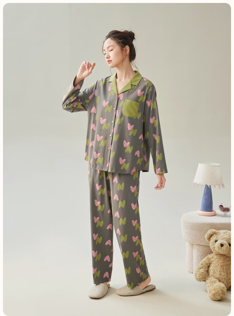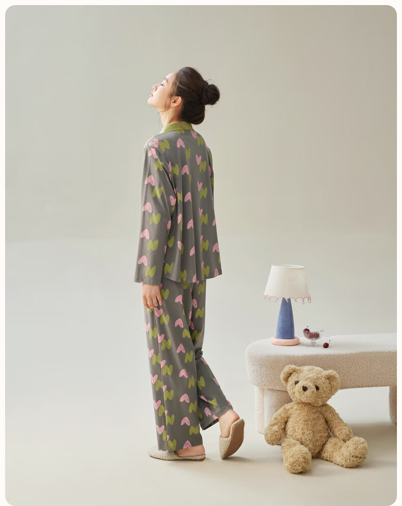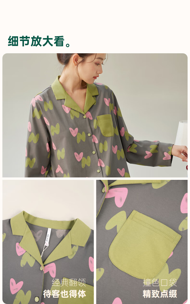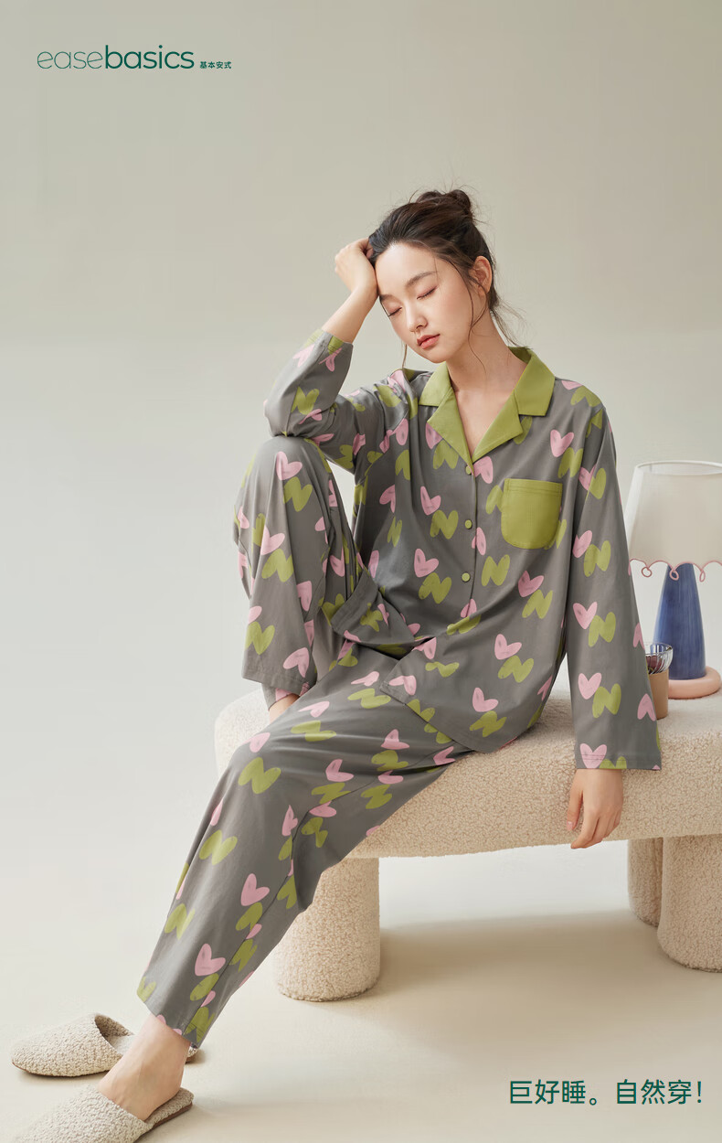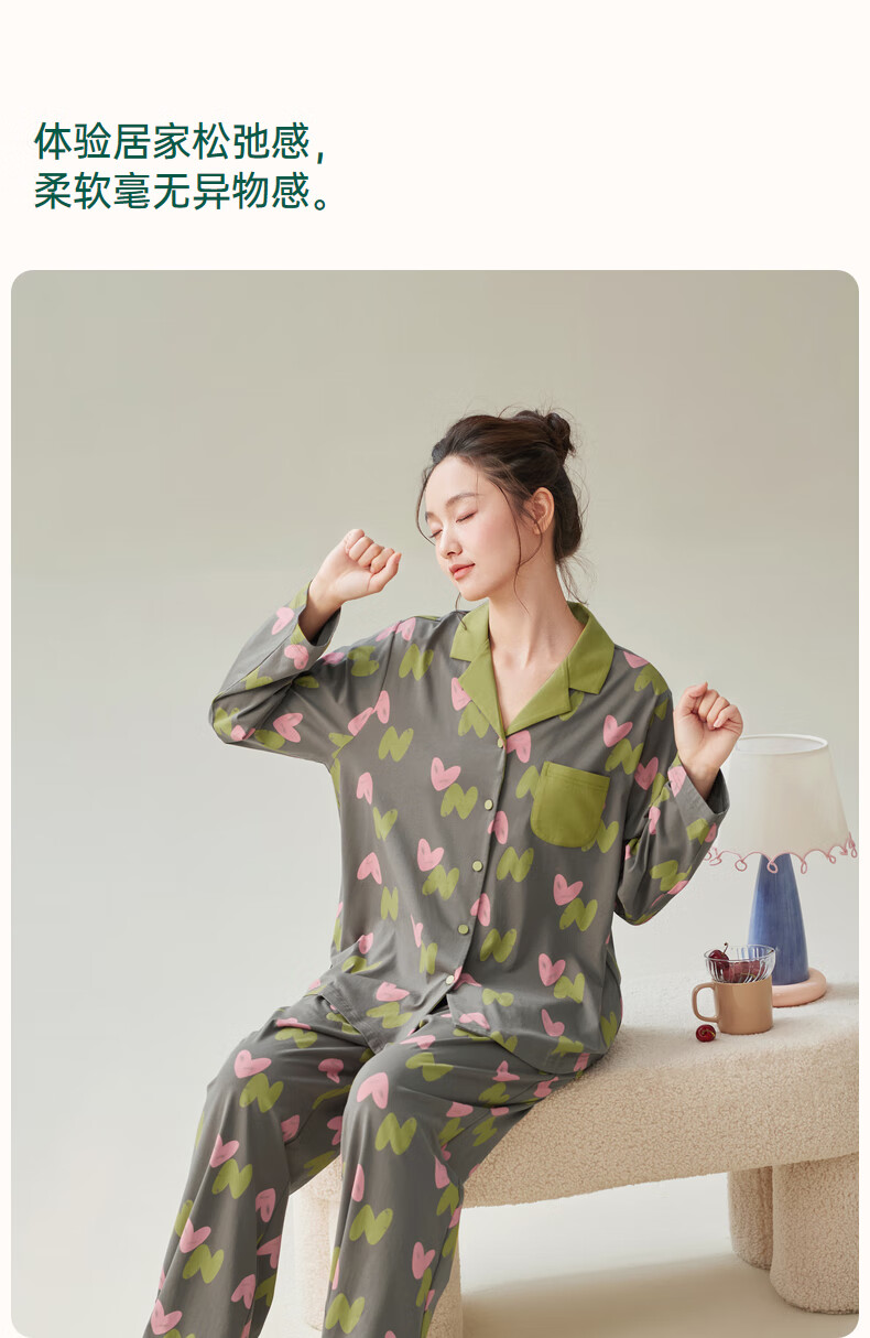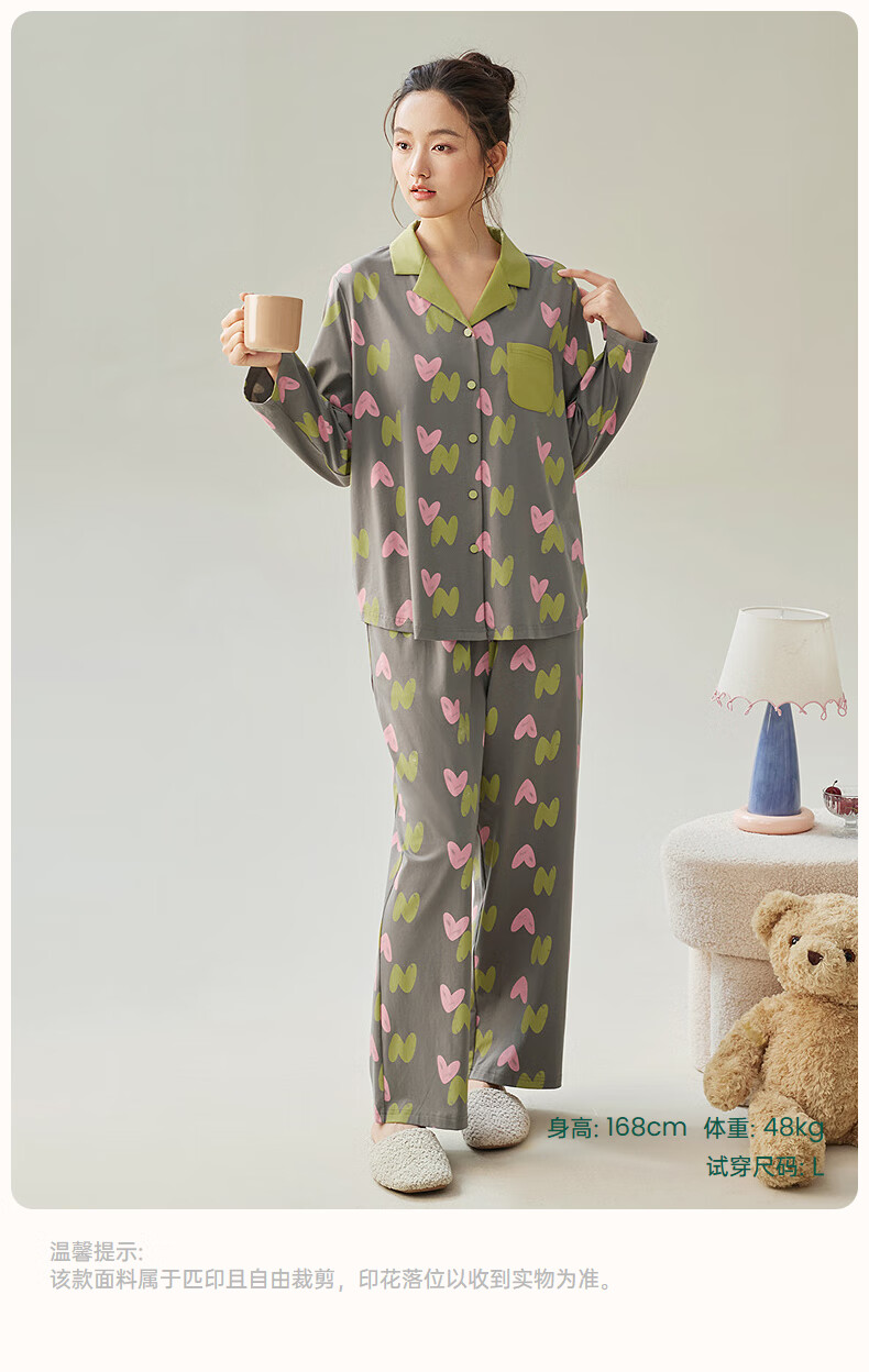 安之伴【软棉棉】26年新品睡衣女春秋纽扣长袖套装纯棉女士可外穿家居服 【100%纯棉-柔软亲肤】砖茶 XL