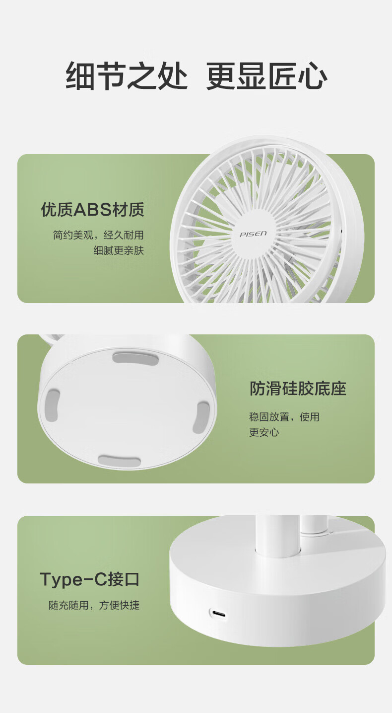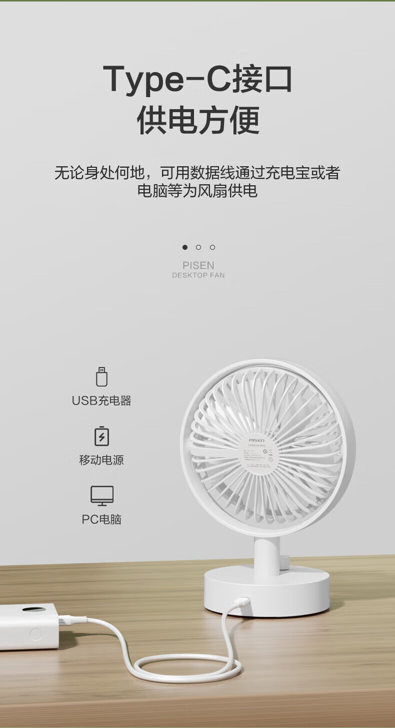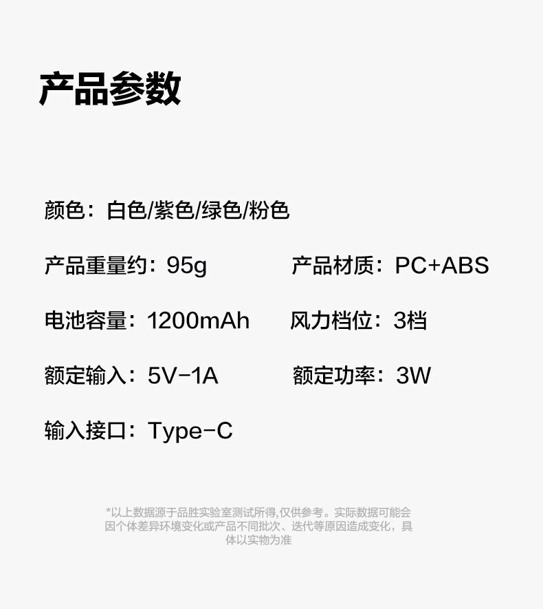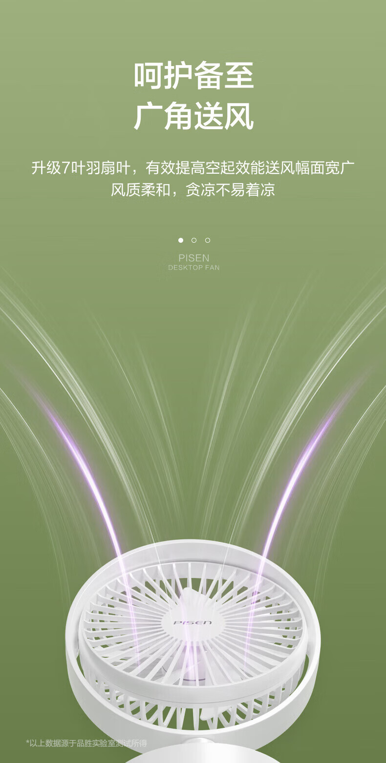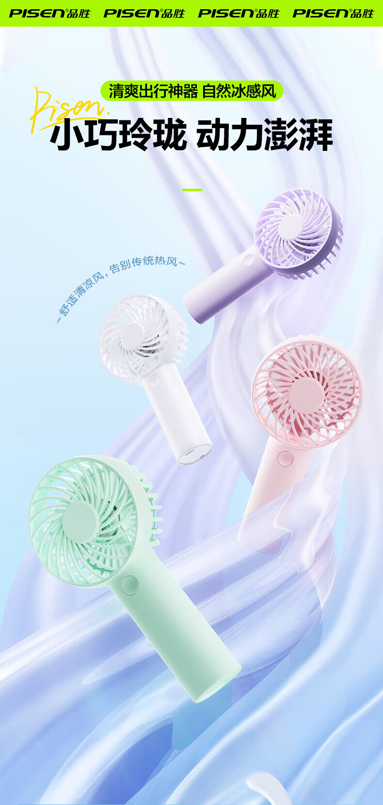 品胜(PISEN)小风扇充电便携小型迷你风扇办公室户外露营小型电扇学生宿舍桌面电风扇大容量长续航 【紫色】手持风扇|三档变速 1200mAh