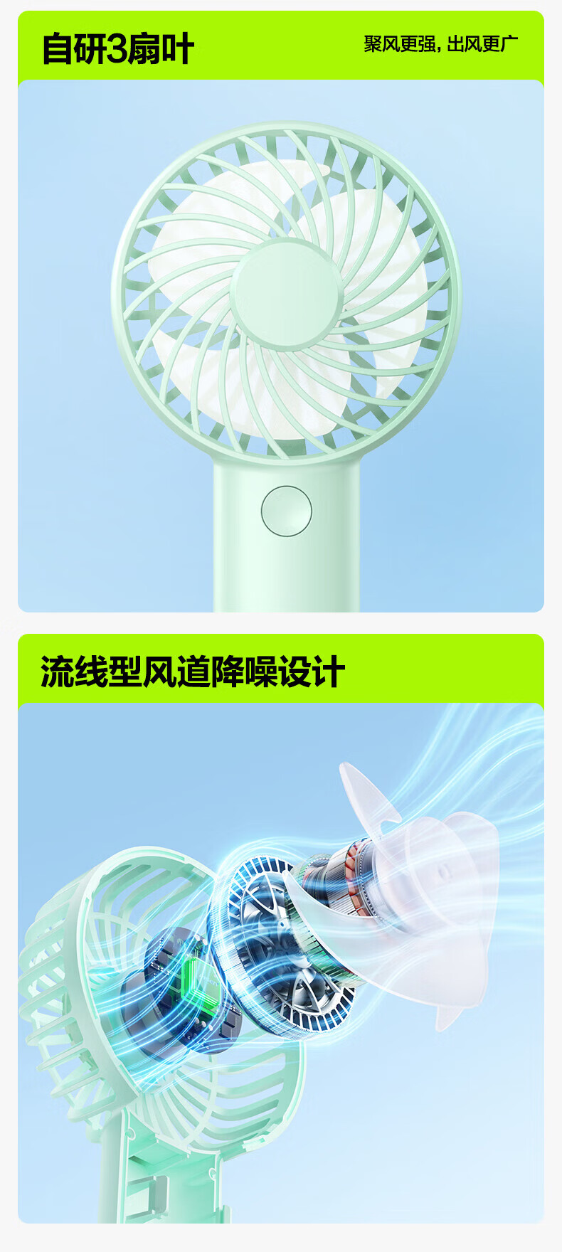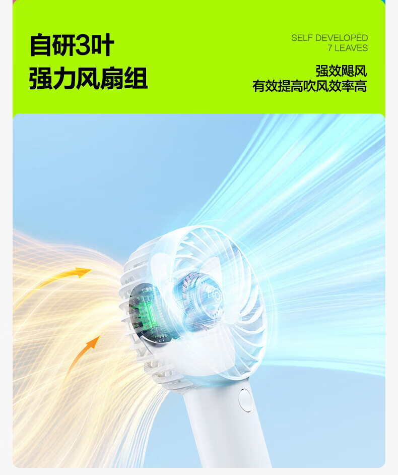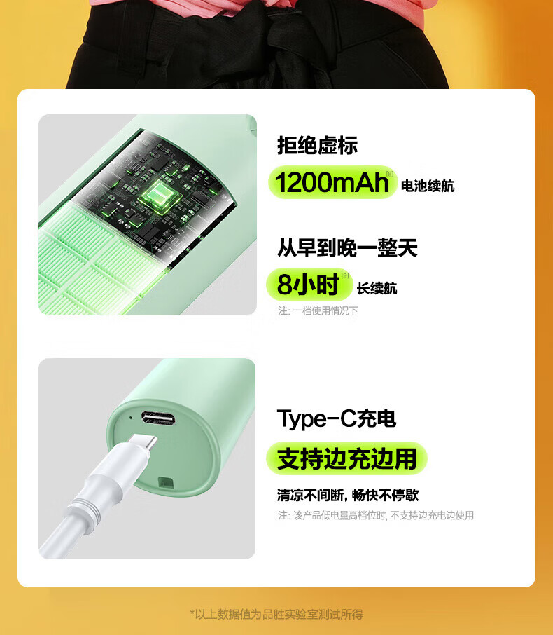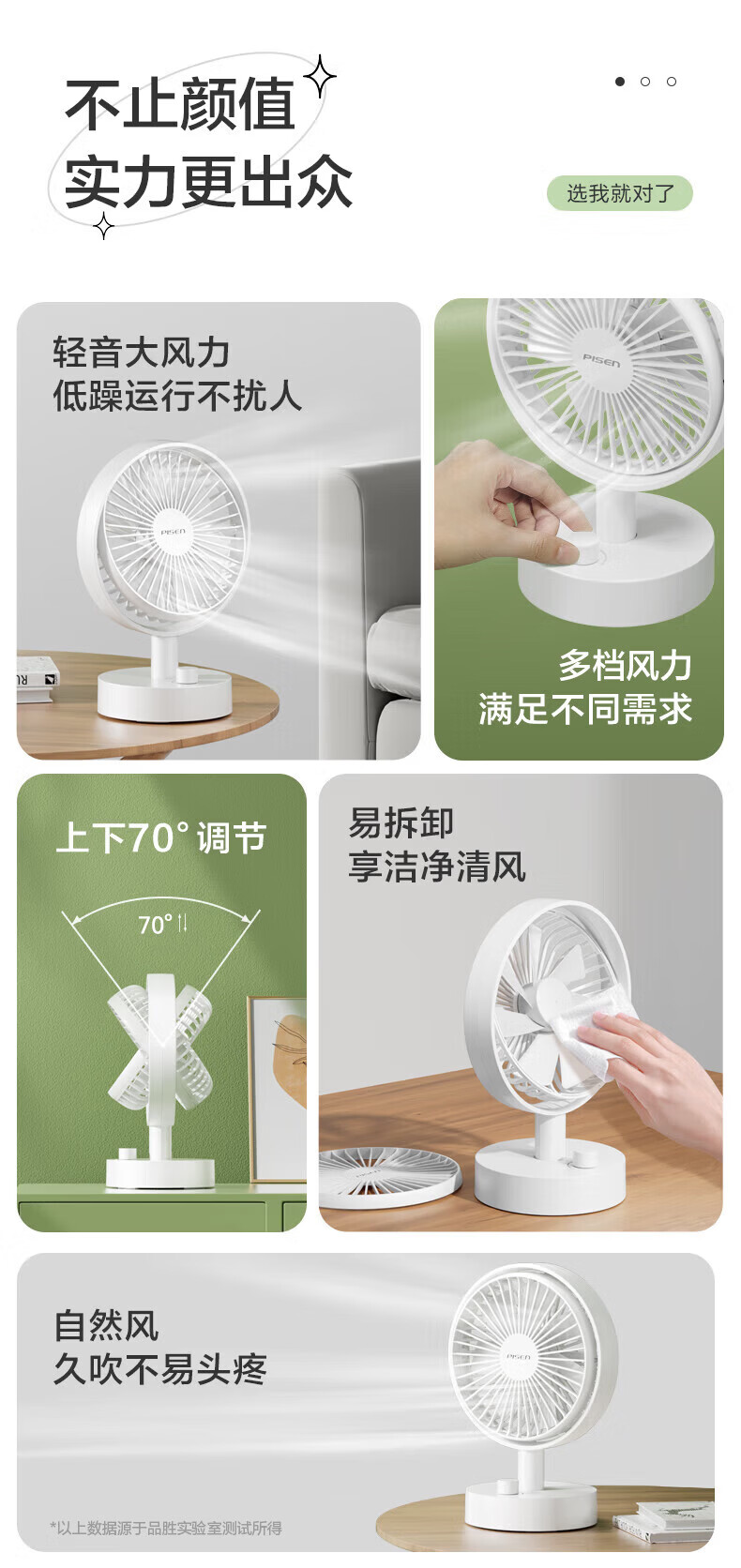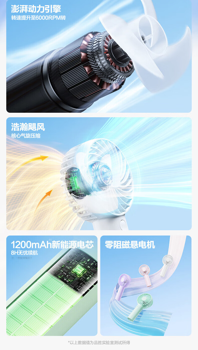 品胜(PISEN)小风扇充电便携小型迷你风扇办公室户外露营小型电扇学生宿舍桌面电风扇大容量长续航 【紫色】手持风扇|三档变速 1200mAh